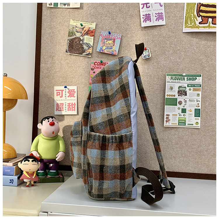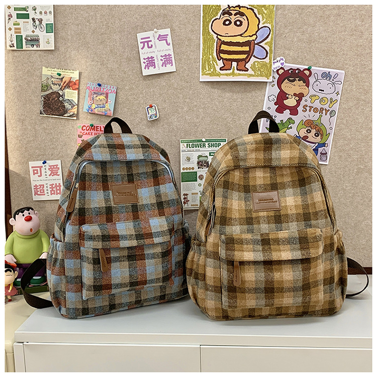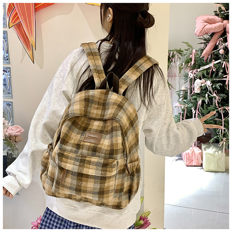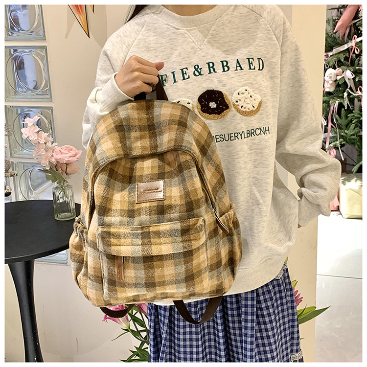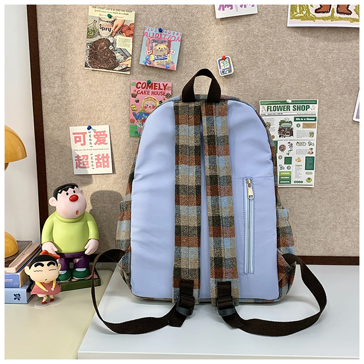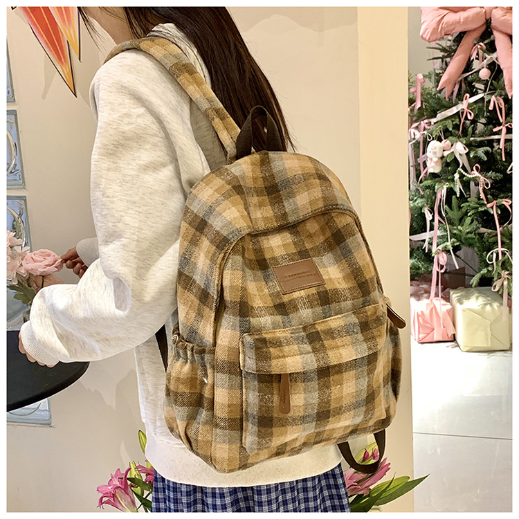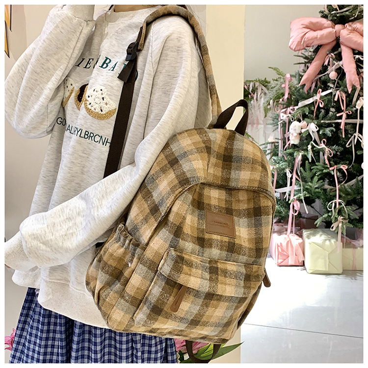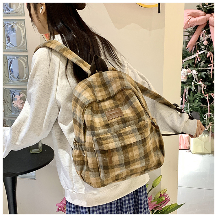 Mochila versión coreana de la versión coreana de la cuadrícula cuadrada de gran capacidad, mochilas escolares para estudiantes de secundaria y secundaria son simples y completas con paquetes de viaje de corta distancia.