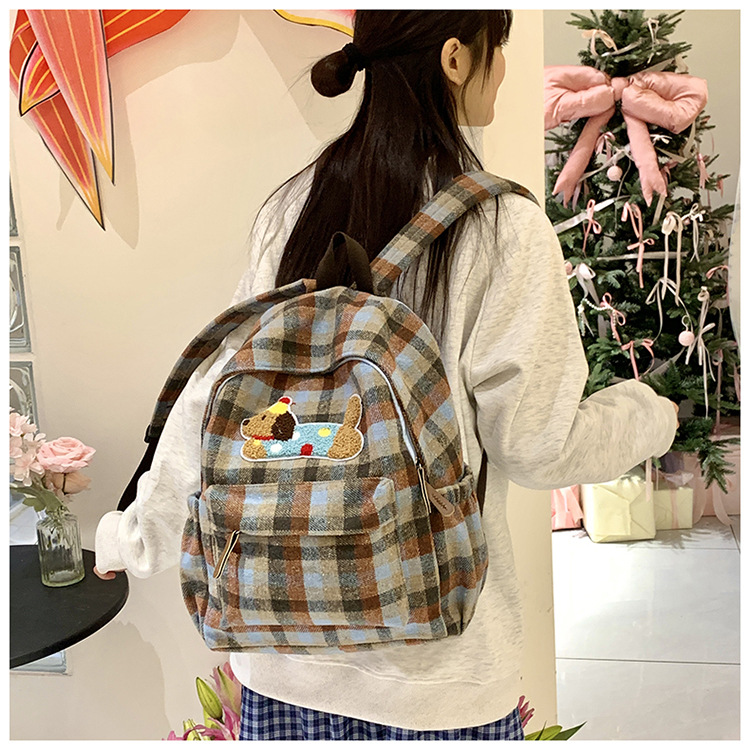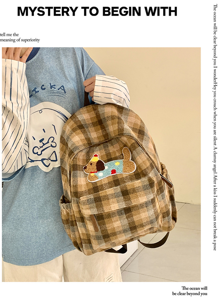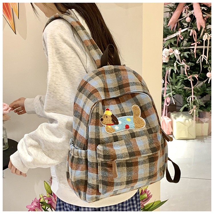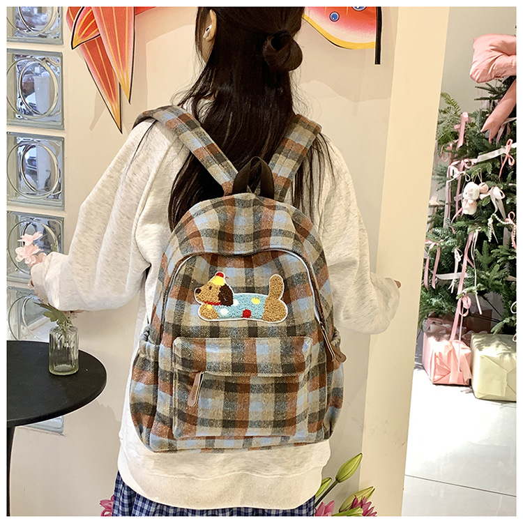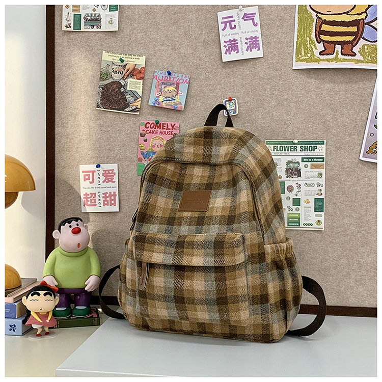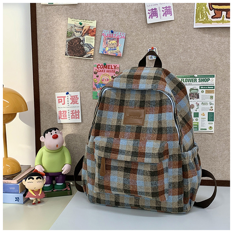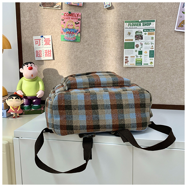 Mochila versión coreana de la versión coreana de la cuadrícula cuadrada de gran capacidad, mochilas escolares para estudiantes de secundaria y secundaria son simples y completas con paquetes de viaje de corta distancia.