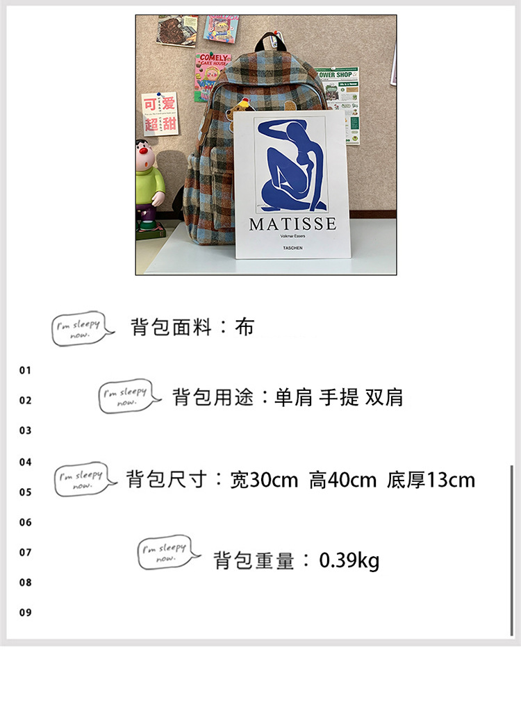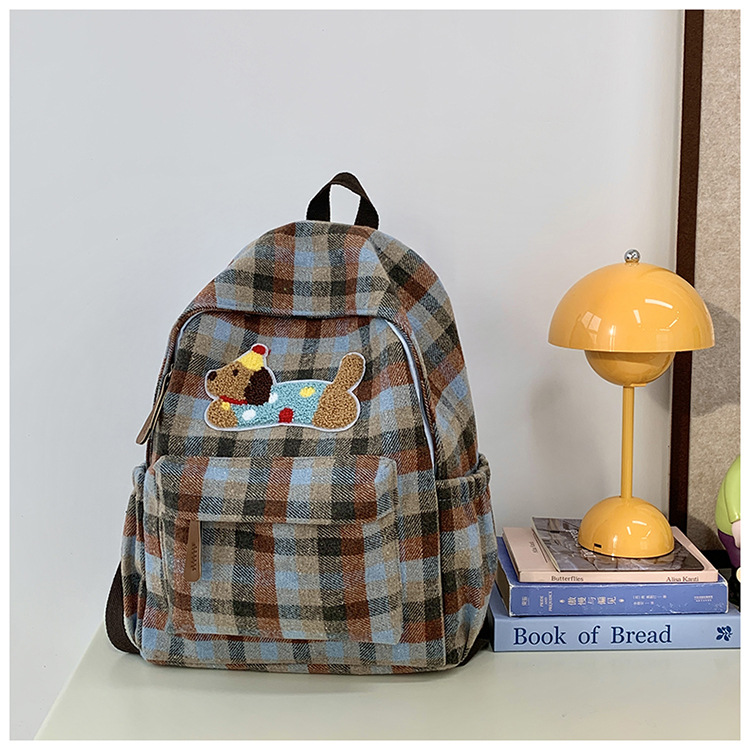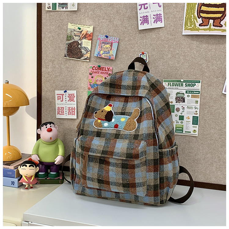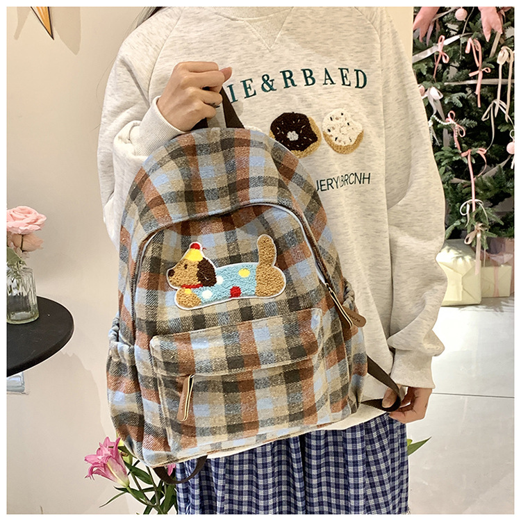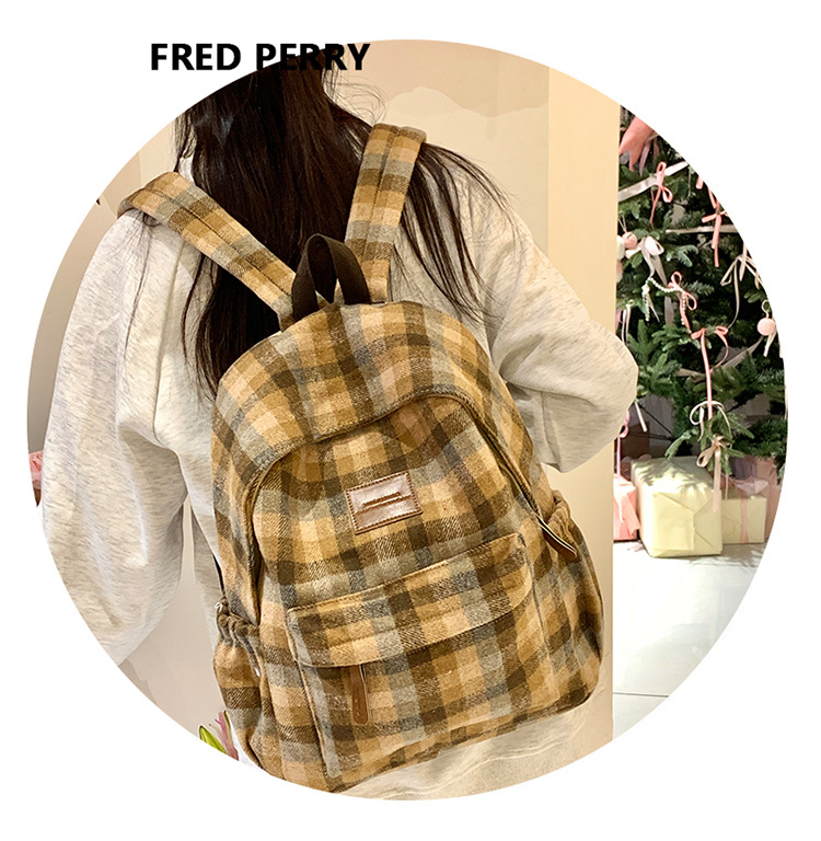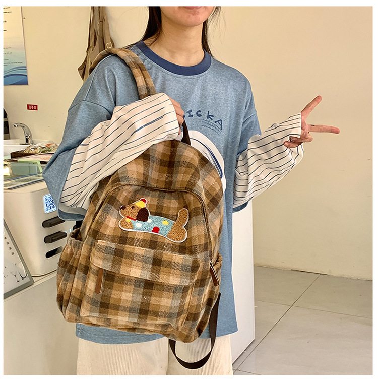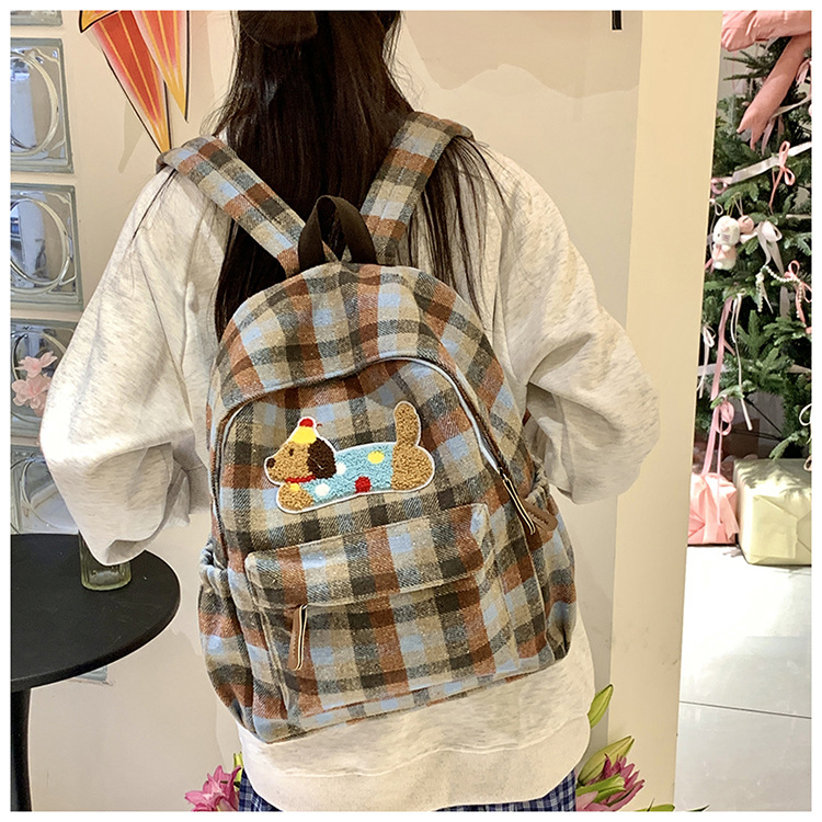 Mochila versión coreana de la versión coreana de la cuadrícula cuadrada de gran capacidad, mochilas escolares para estudiantes de secundaria y secundaria son simples y completas con paquetes de viaje de corta distancia.