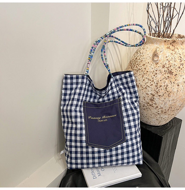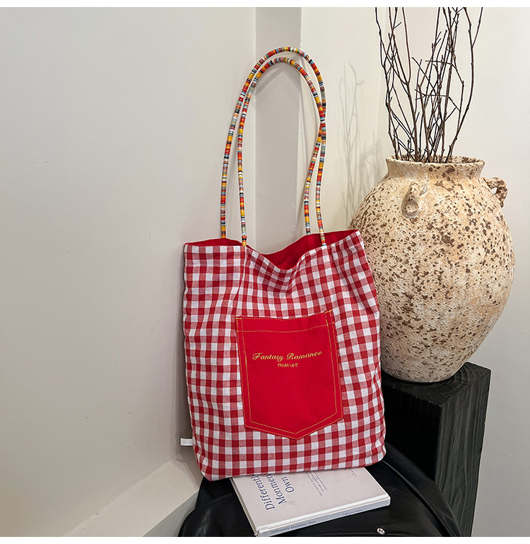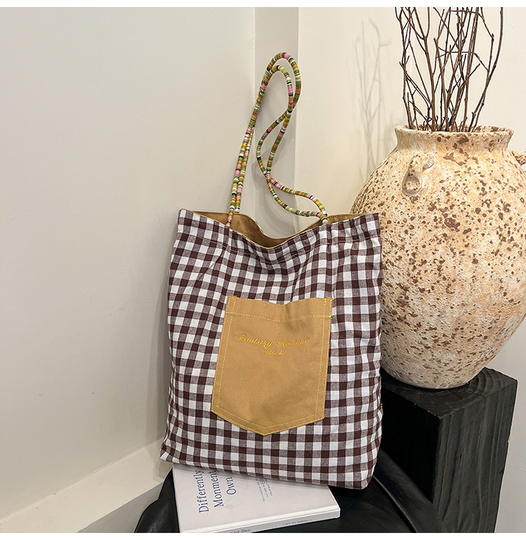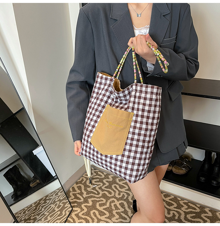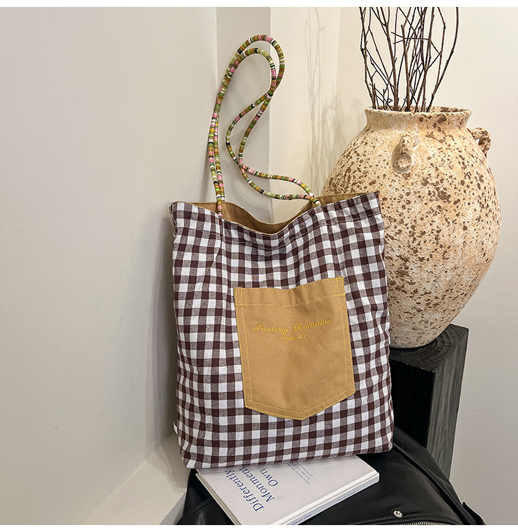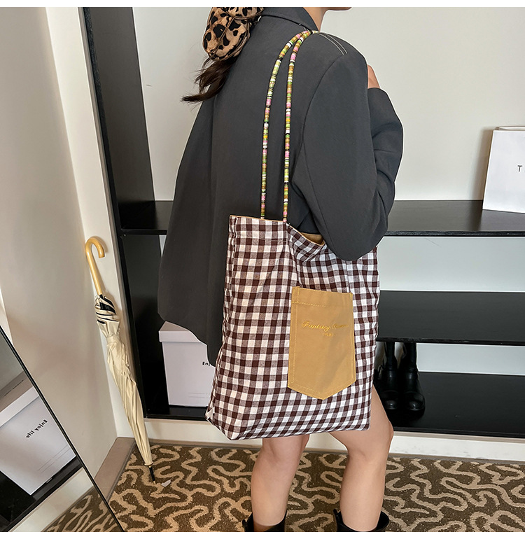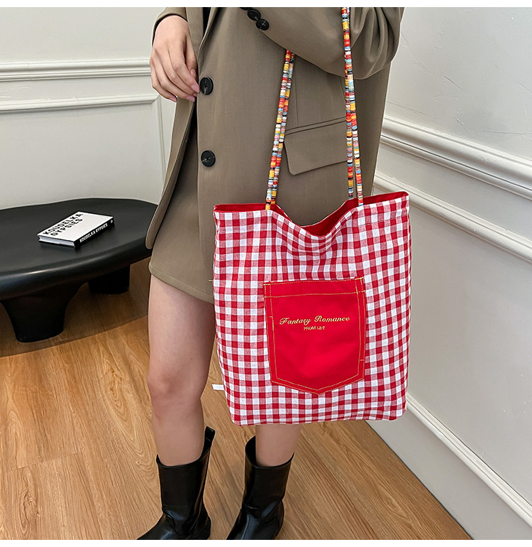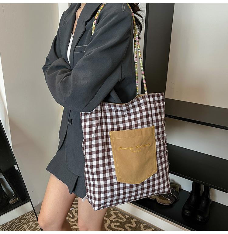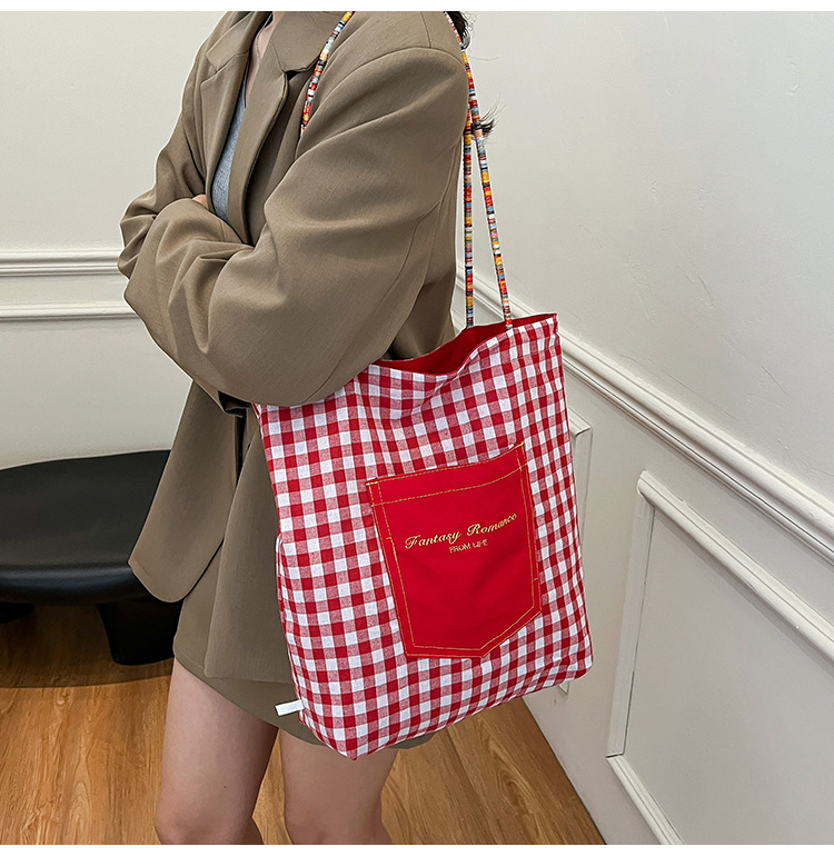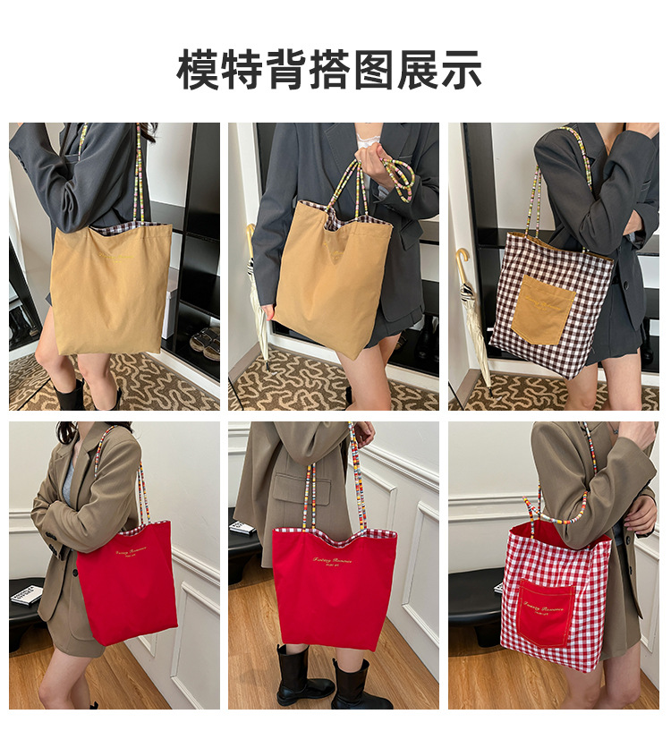 Bolso de lona a cuadros de doble cara estadounidense bolso de desplazamiento femenino bolso especial retro bolso de mano de color de choque de primavera nuevo bolso padre - hijo