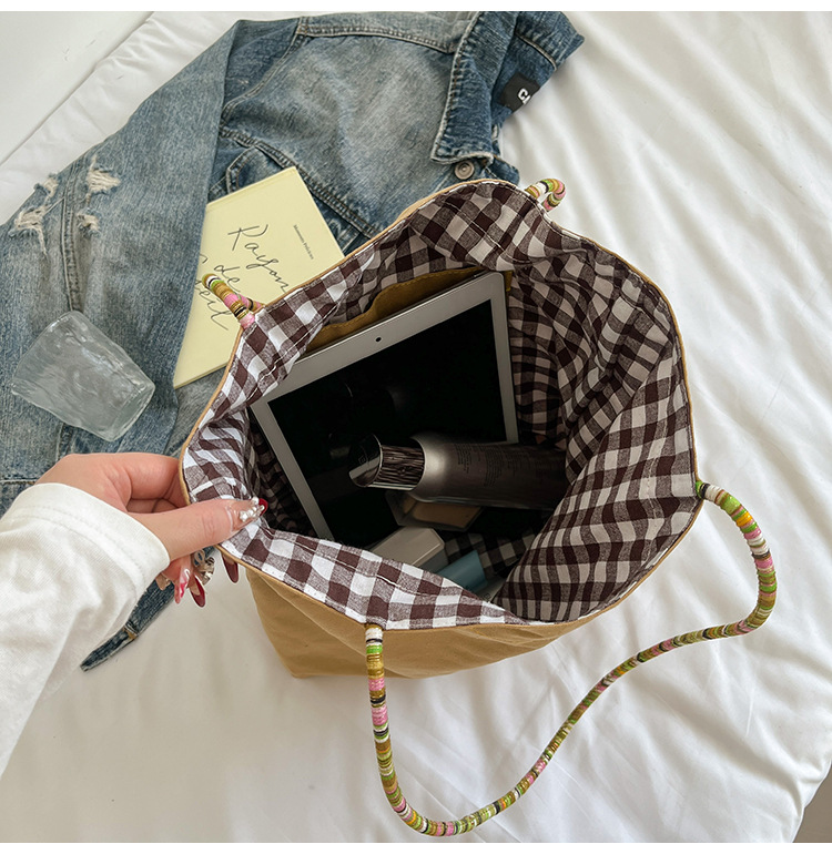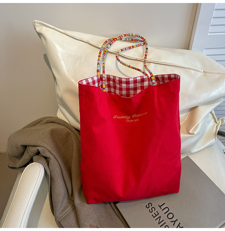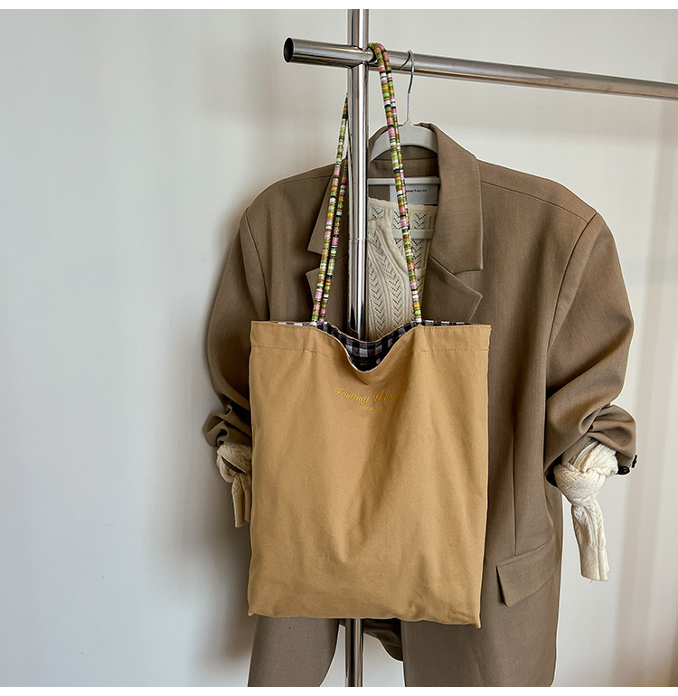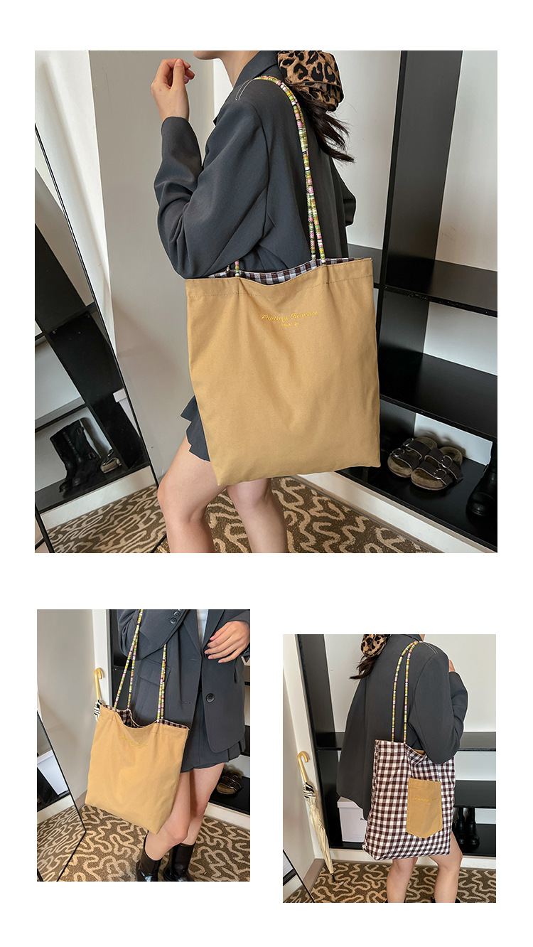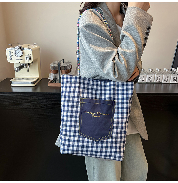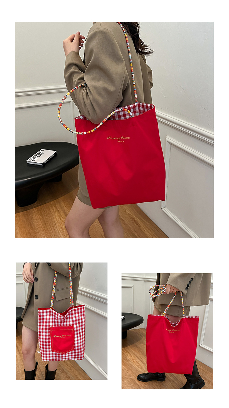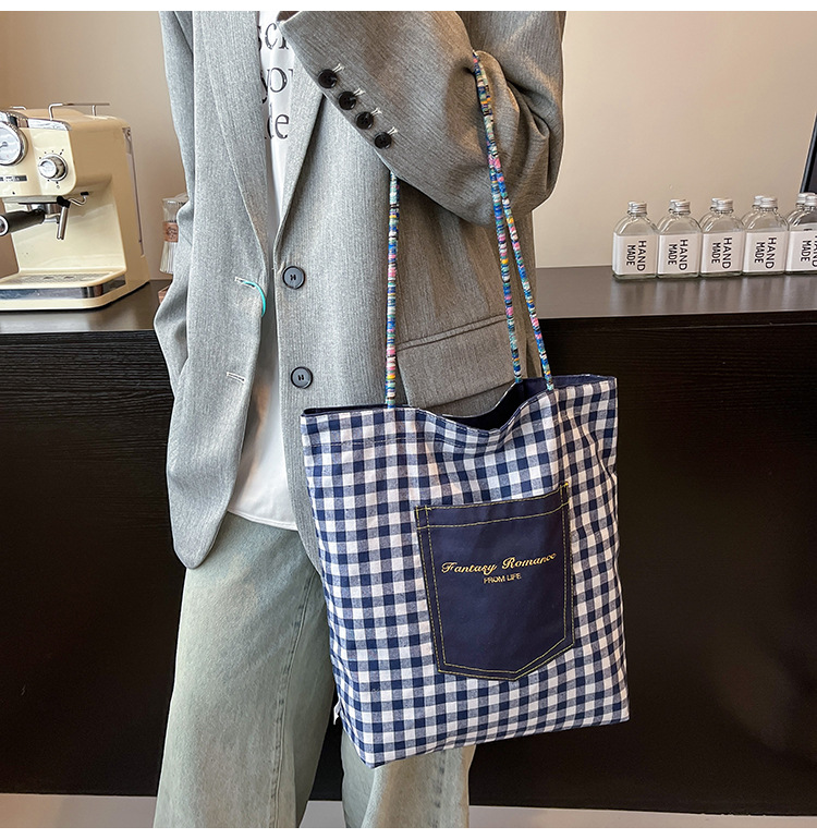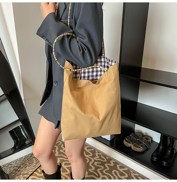 Bolso de lona a cuadros de doble cara estadounidense bolso de desplazamiento femenino bolso especial retro bolso de mano de color de choque de primavera nuevo bolso padre - hijo