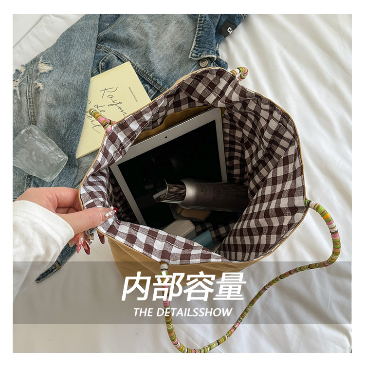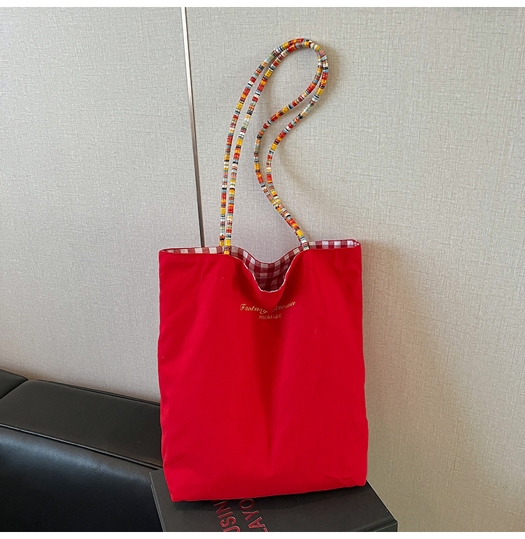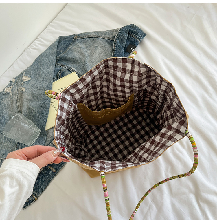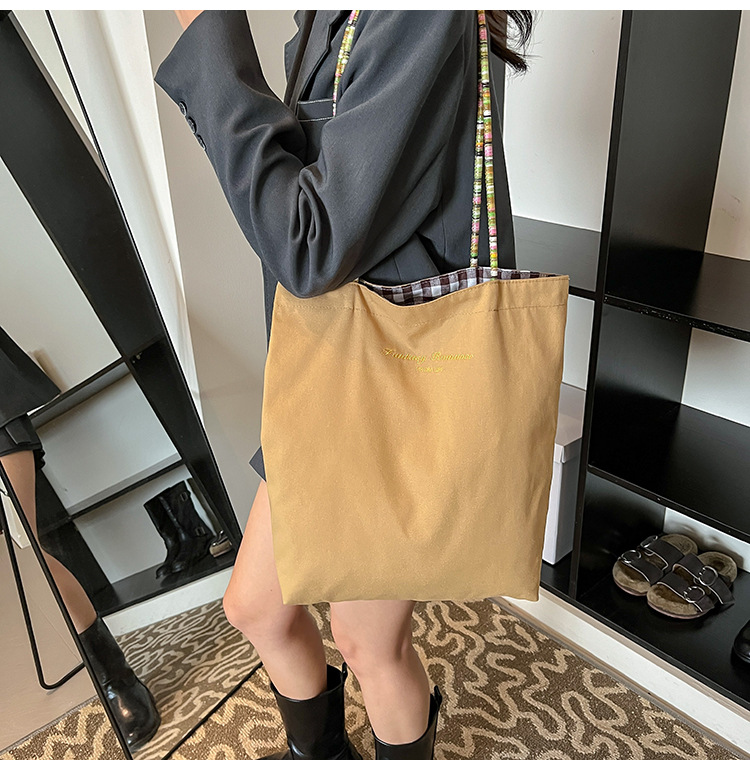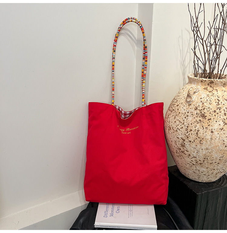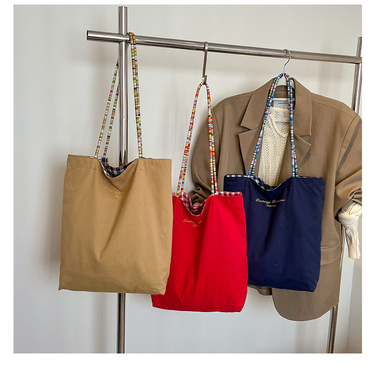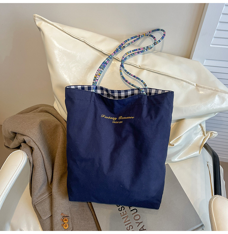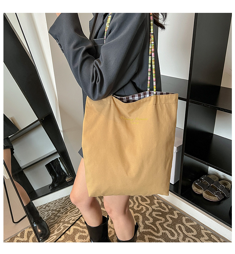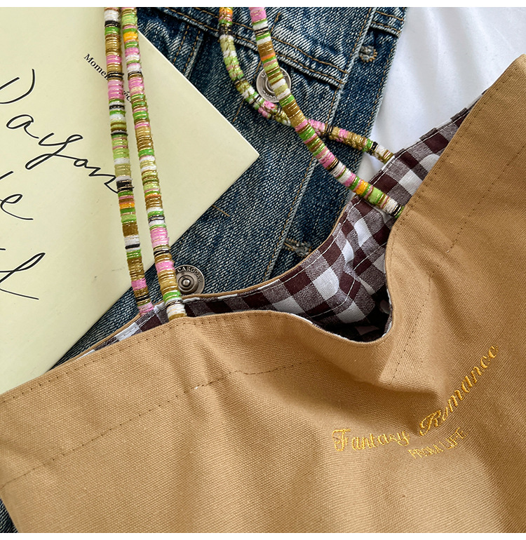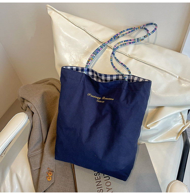Bolso de lona a cuadros de doble cara estadounidense bolso de desplazamiento femenino bolso especial retro bolso de mano de color de choque de primavera nuevo bolso padre - hijo