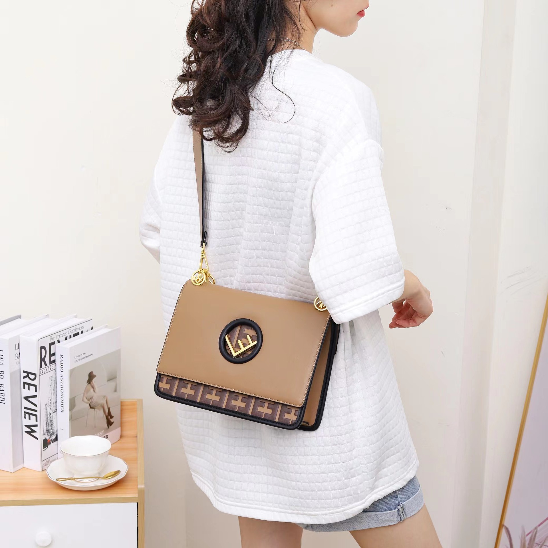 Nuevo bolso tote en otoño e invierno, bolso cuadrado de correas anchas de moda europeas y americanas, bolso de cena mini hueco con estampado de moda portátil