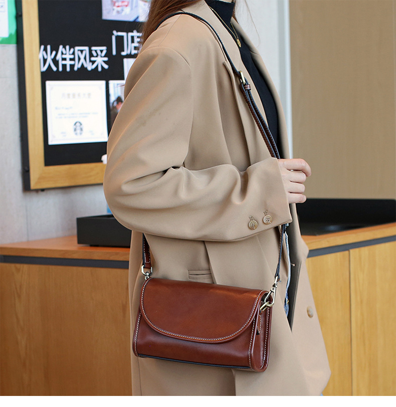 2024 nuevas bolsos de cuero retro para mujeres con capa de cabeza de piel de vaca bronceada vegetativa bolsos de hombro moda bolsos de hombro uno por uno