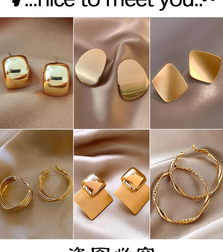 | Color | Pendientes ovaladas doradas, pendientes de círculo dorado, pendientes de círculo dorado brillante, pendientes redondos en espiral dorada, pendientes cuadrados irregulares dorados |