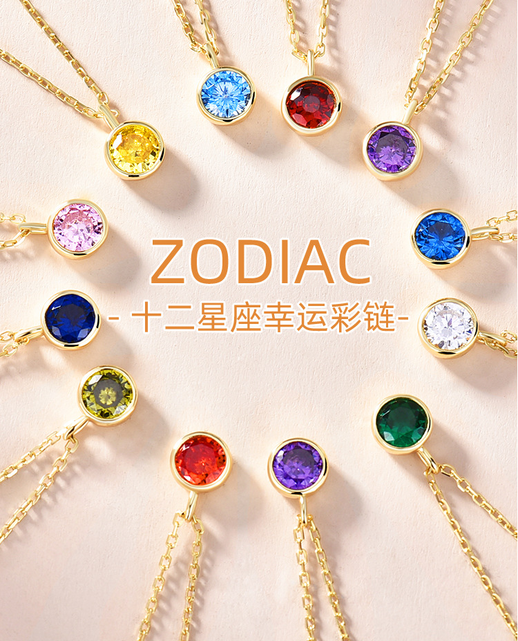 Collar de plata de ley S925 con un solo diamante, doce constelaciones, piedra natal, estilo k, joyería simple y versátil, colgante diy, cadena de clavícula