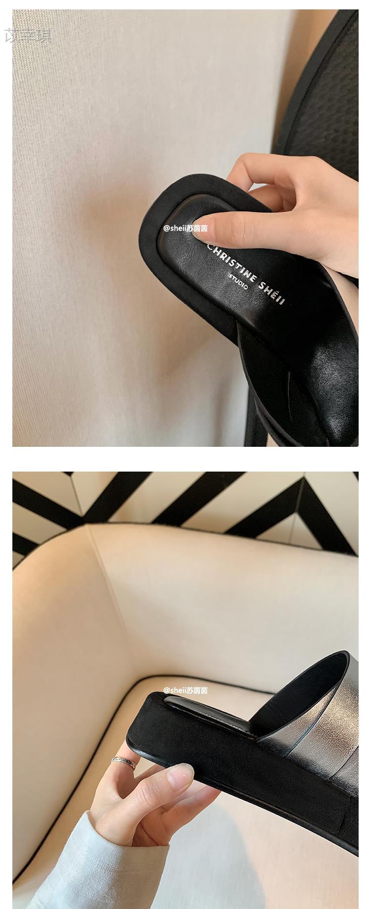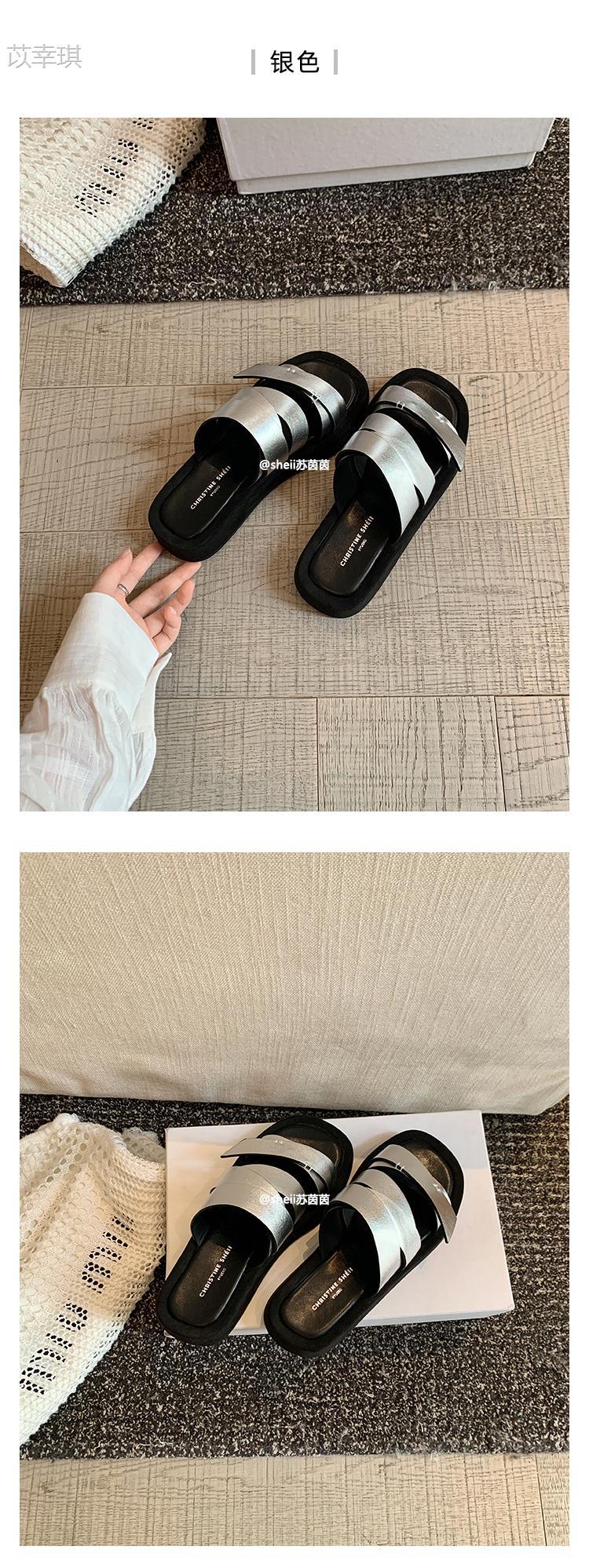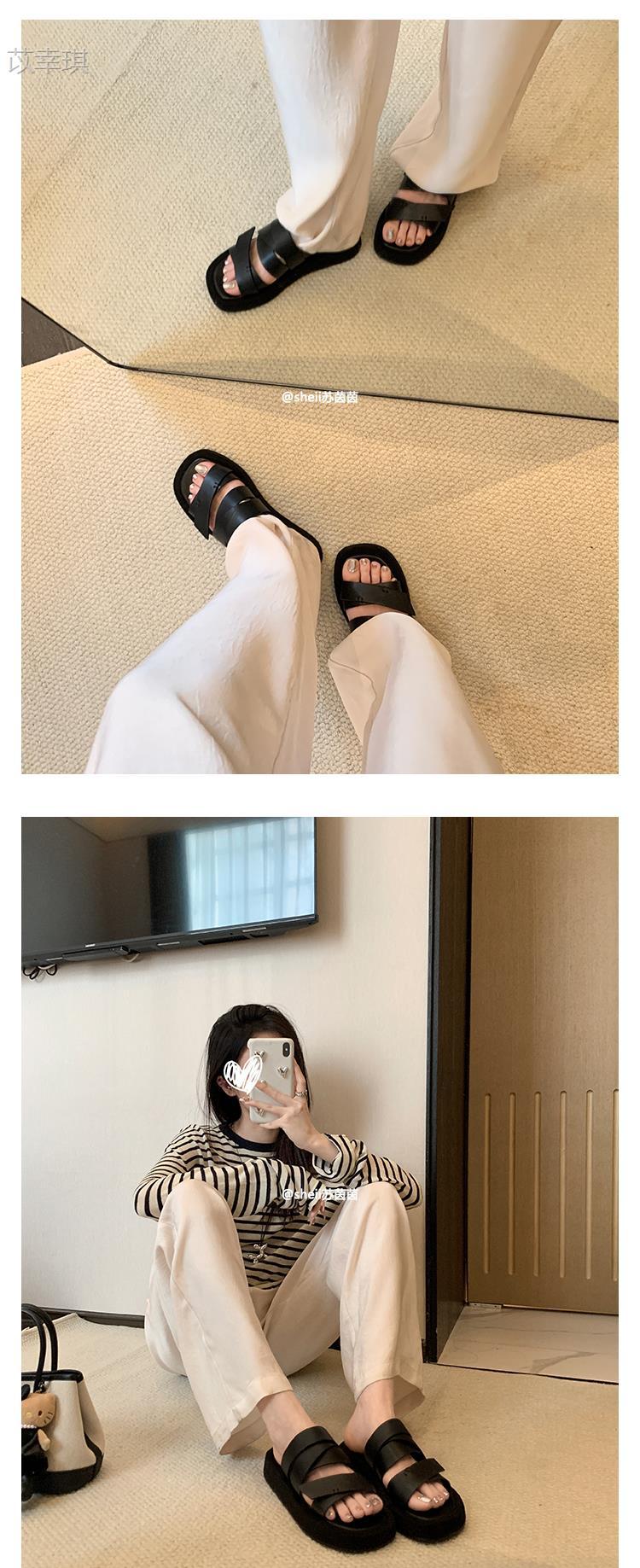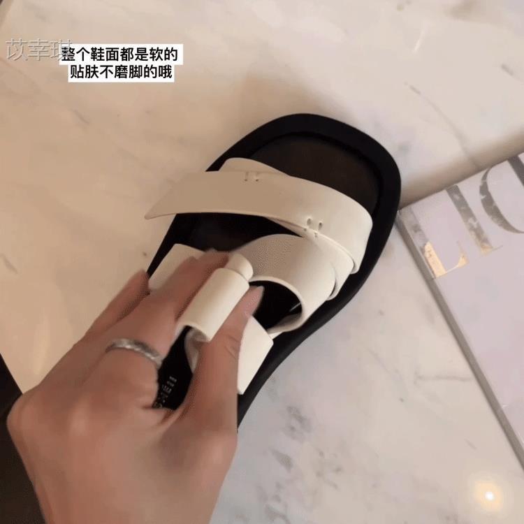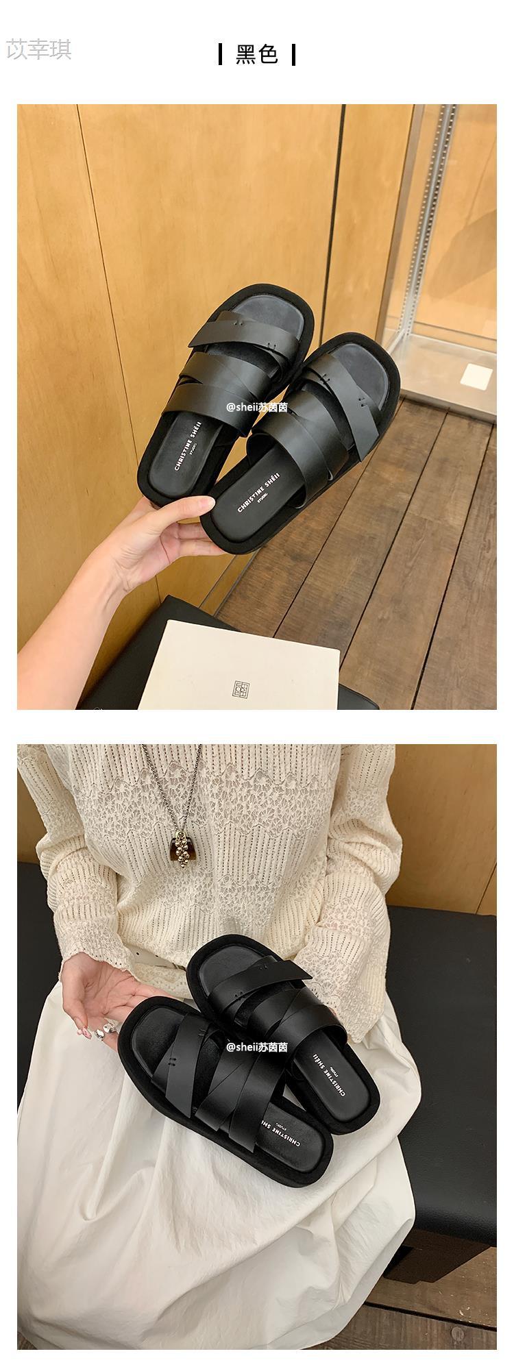 Versión de piel de oveja ~ Su Yinyin con punta cuadrada, suela gruesa, zapatillas de ocio de vacaciones en la playa, sandalias y zapatillas de verano para mujer