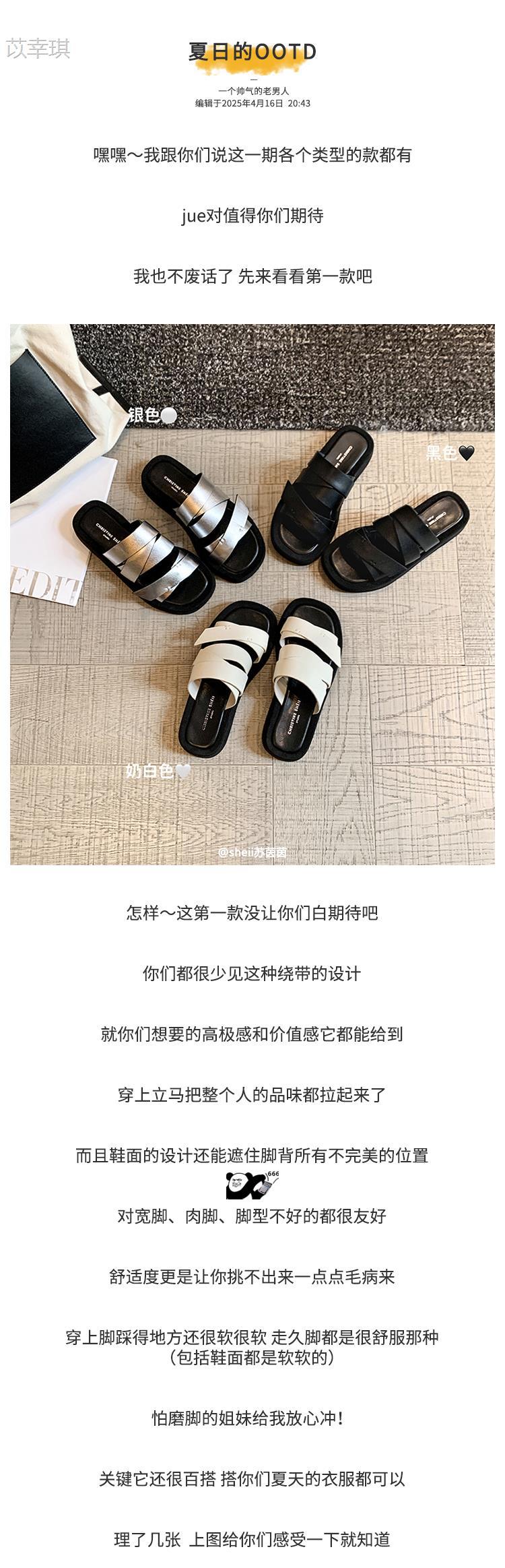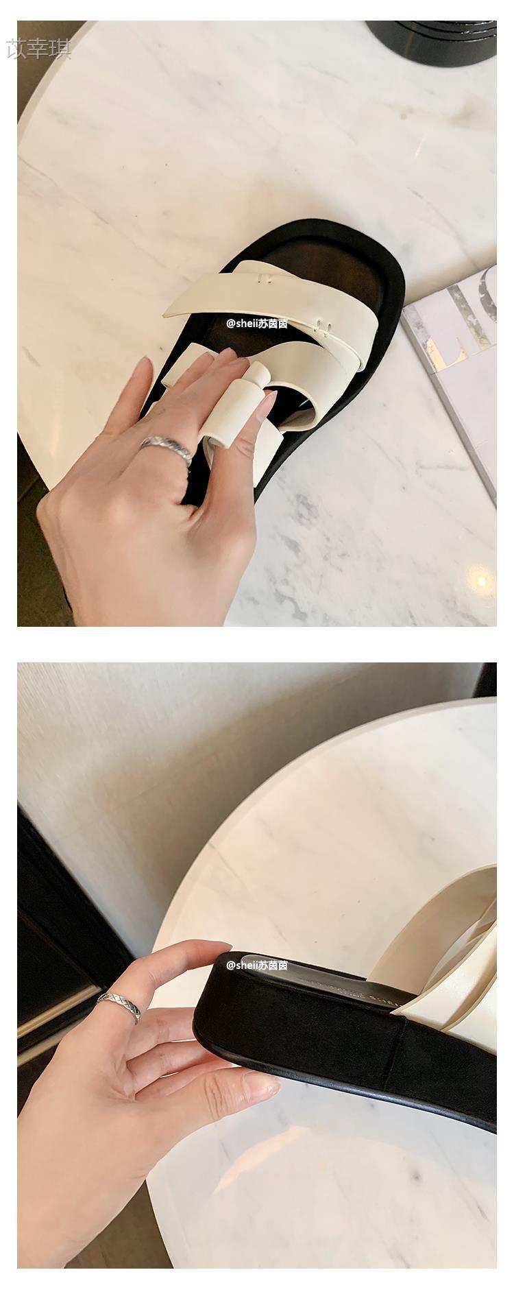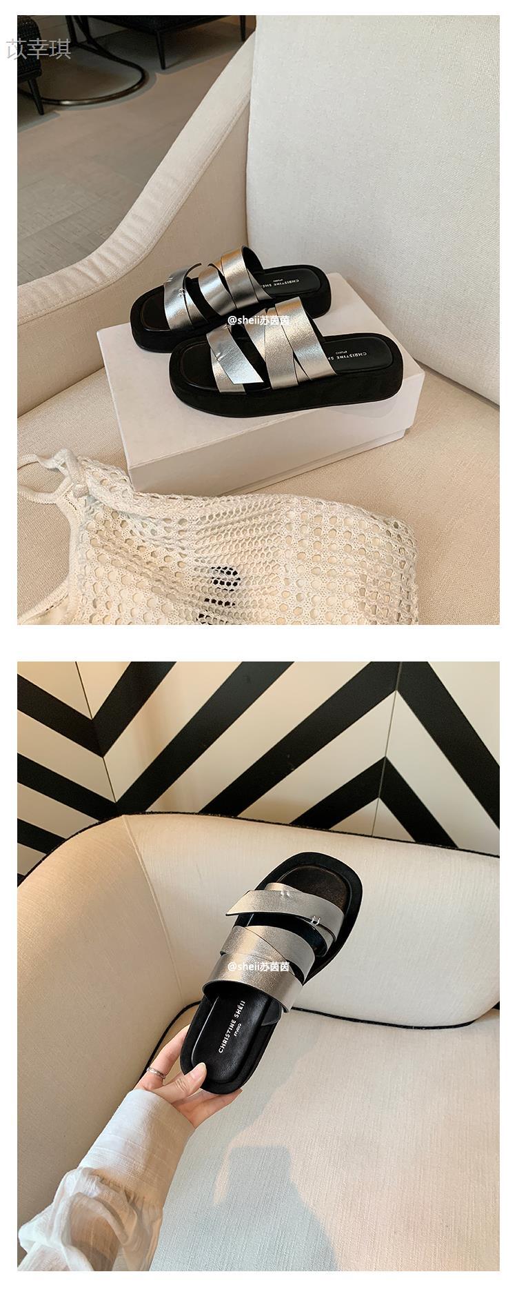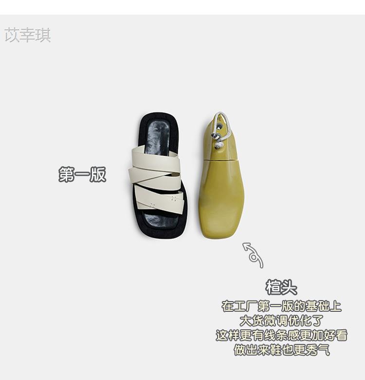 Versión de piel de oveja ~ Su Yinyin con punta cuadrada, suela gruesa, zapatillas de ocio de vacaciones en la playa, sandalias y zapatillas de verano para mujer