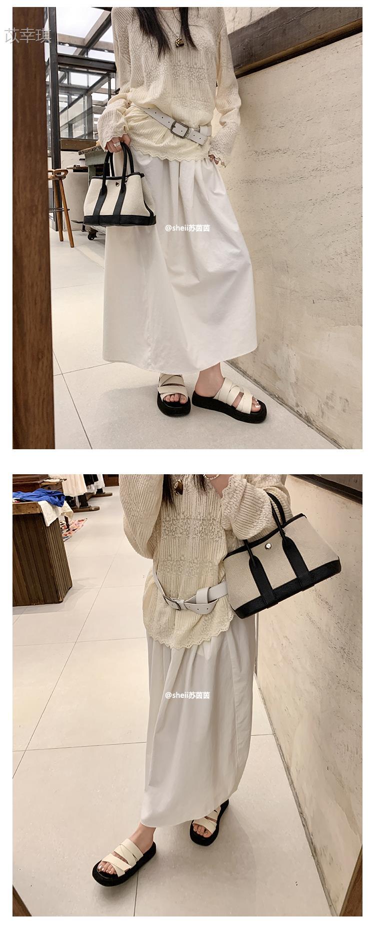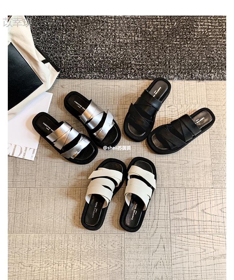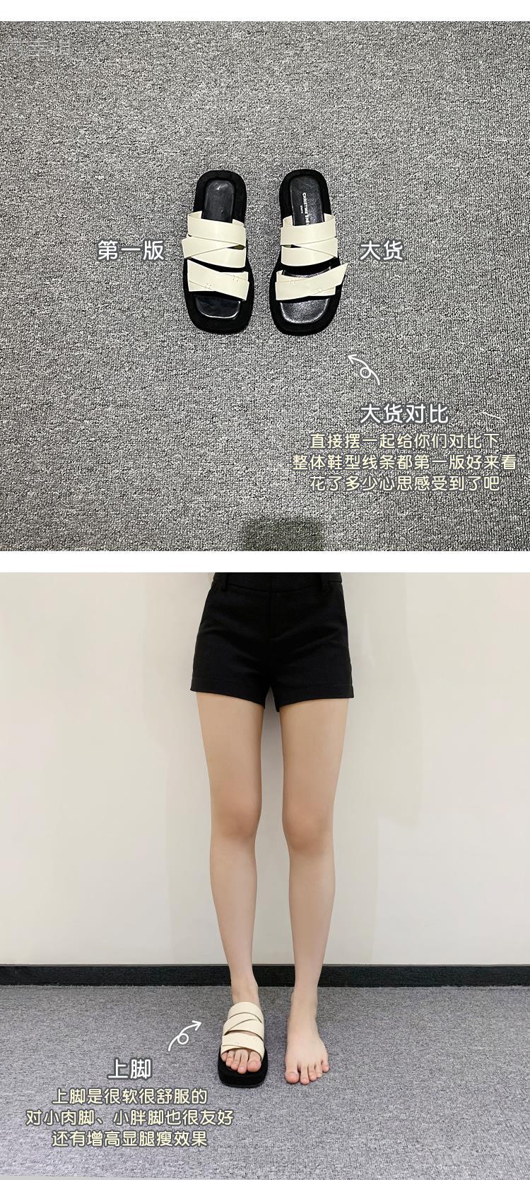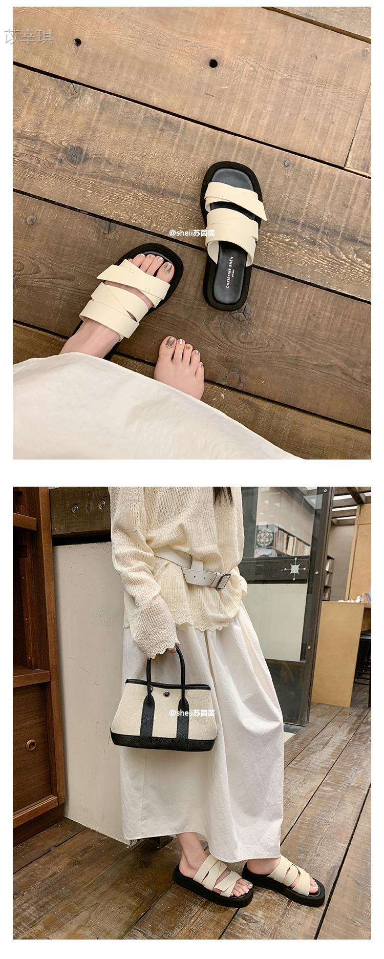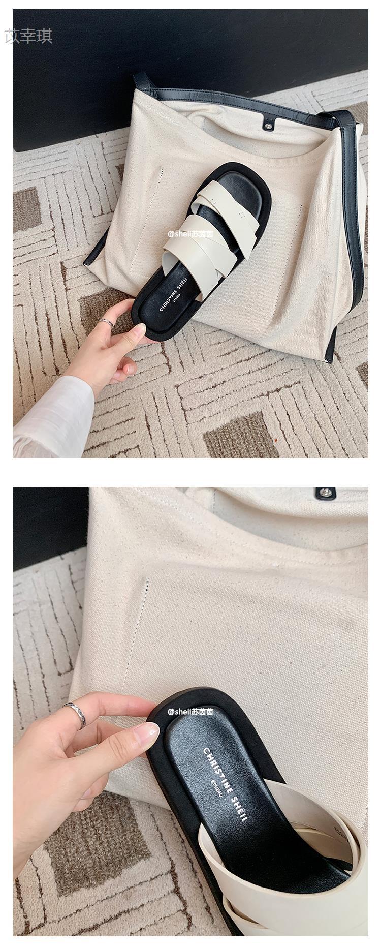 Versión de piel de oveja ~ Su Yinyin con punta cuadrada, suela gruesa, zapatillas de ocio de vacaciones en la playa, sandalias y zapatillas de verano para mujer