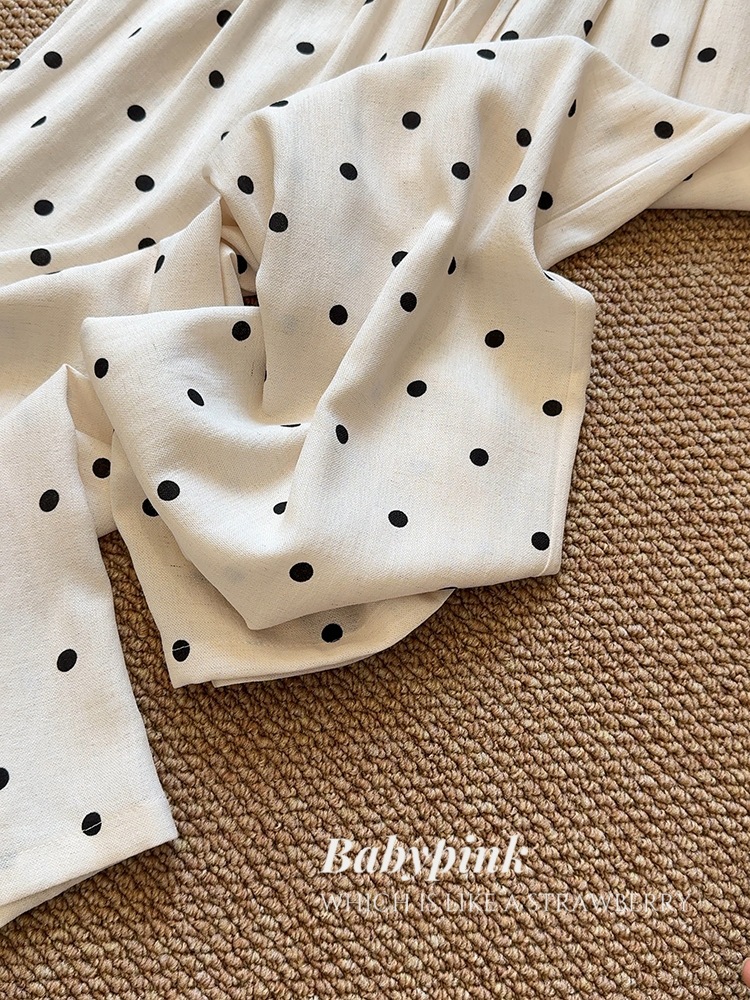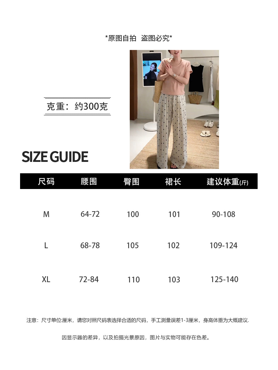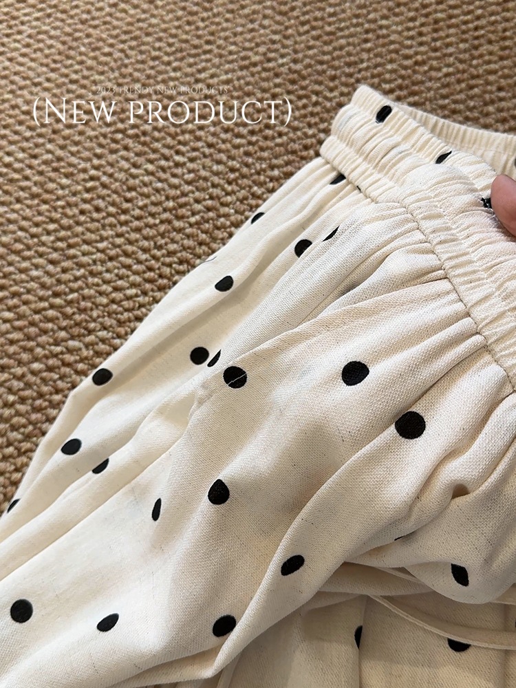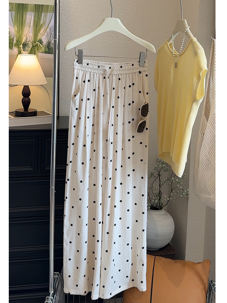 Muy colgante y suave ~ Pantalones de lunares de cintura elástica pantalones casuales de pierna ancha pantalones de lino de algodón color albaricoque 2025 pantalones frescos de verano