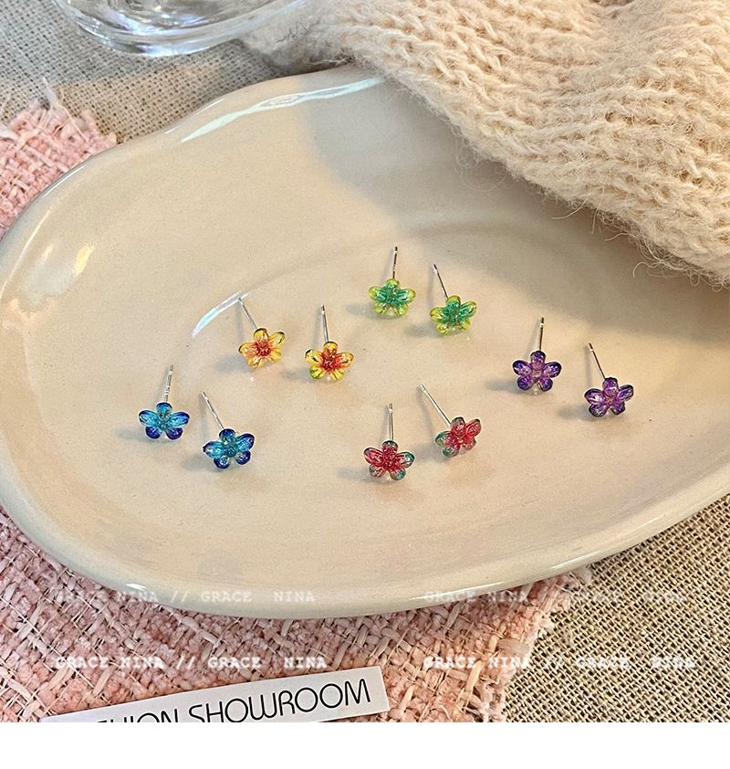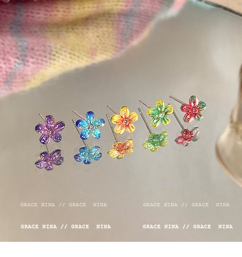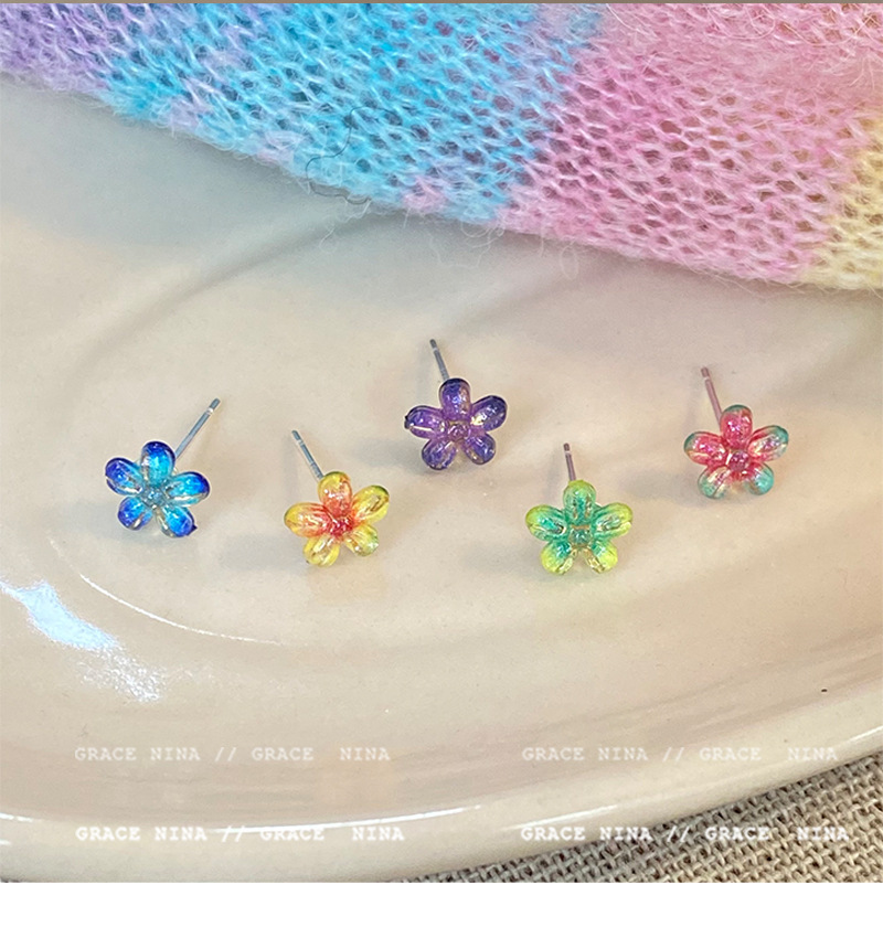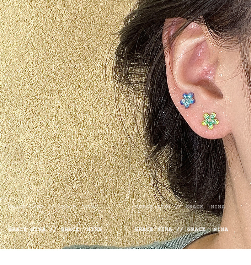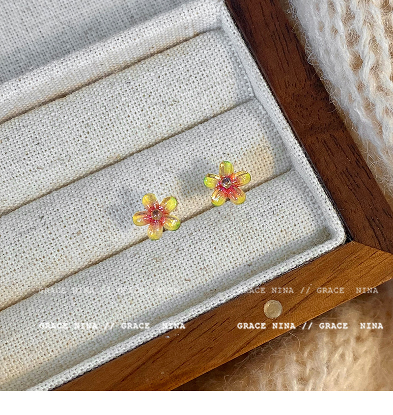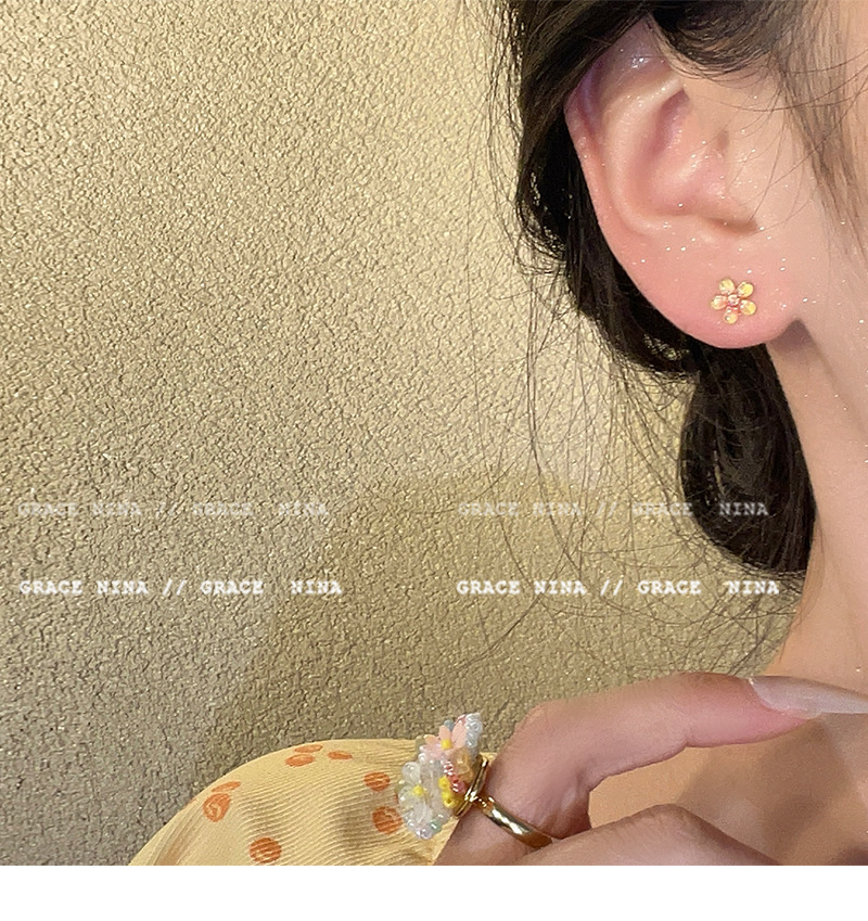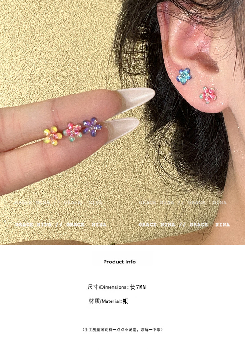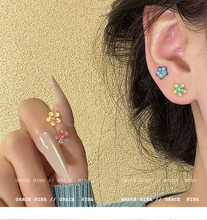 Super Fairy Gradiente Atmósfera Flores Pequeños Pendientes Moda femenina Temperamento Todo fósforo Sentido de alta gama Pendientes de primavera y verano Accesorios para orejas
