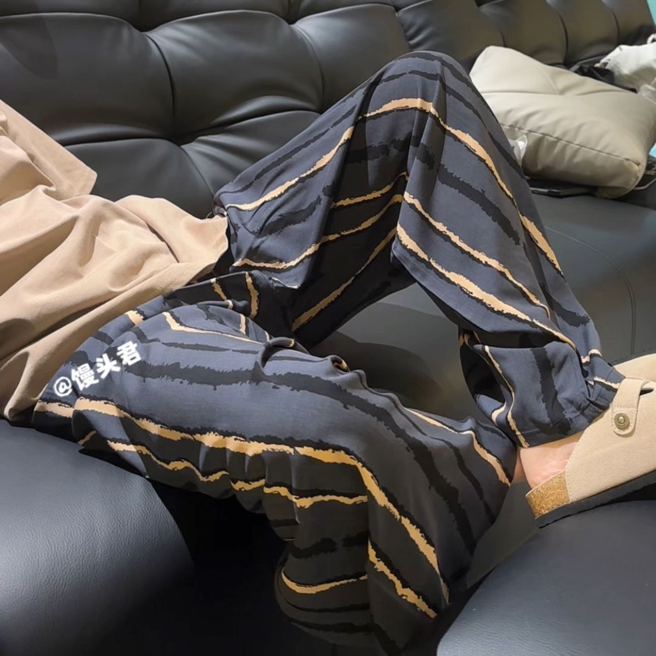 [Pantalones anchos de seda de algodón de doble bolsillo] Pijama de seda de algodón de algodón de algodón para el hogar de verano delgado más tamaño suelto casual