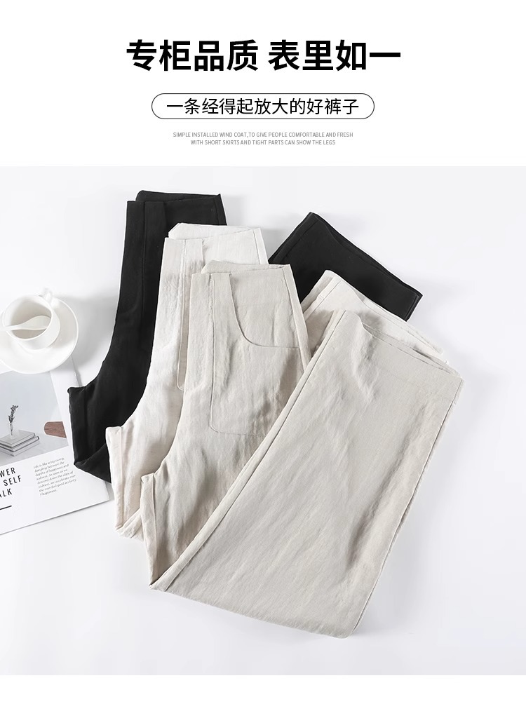 Pantalones de piernas largas de algodón de cintura alta sueltos para mujeres 2025 nuevo verano delgado pequeño lino casual pantalones rectos