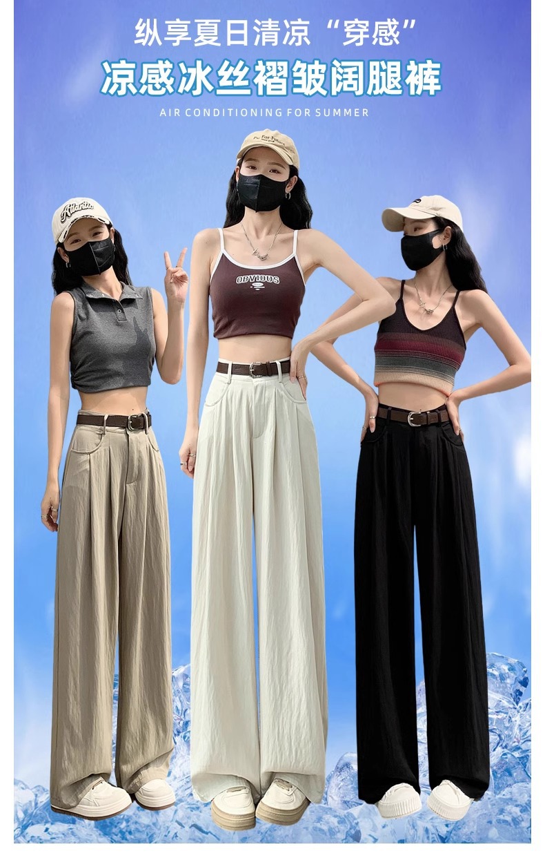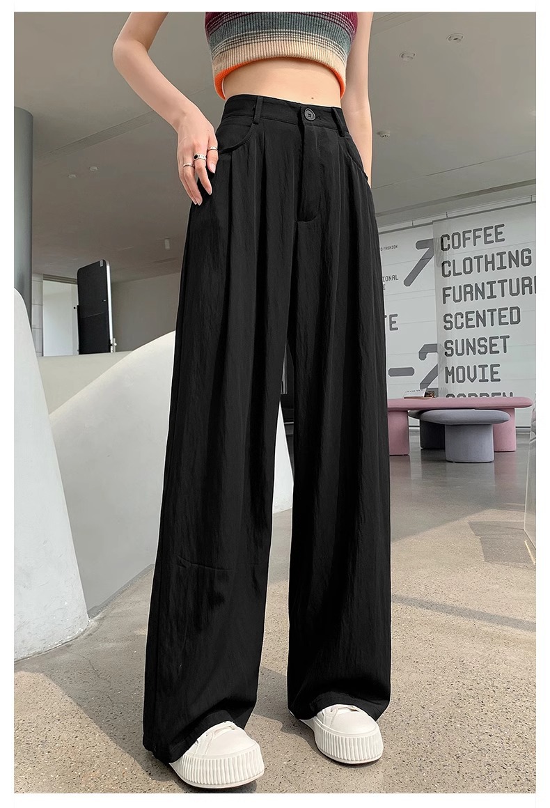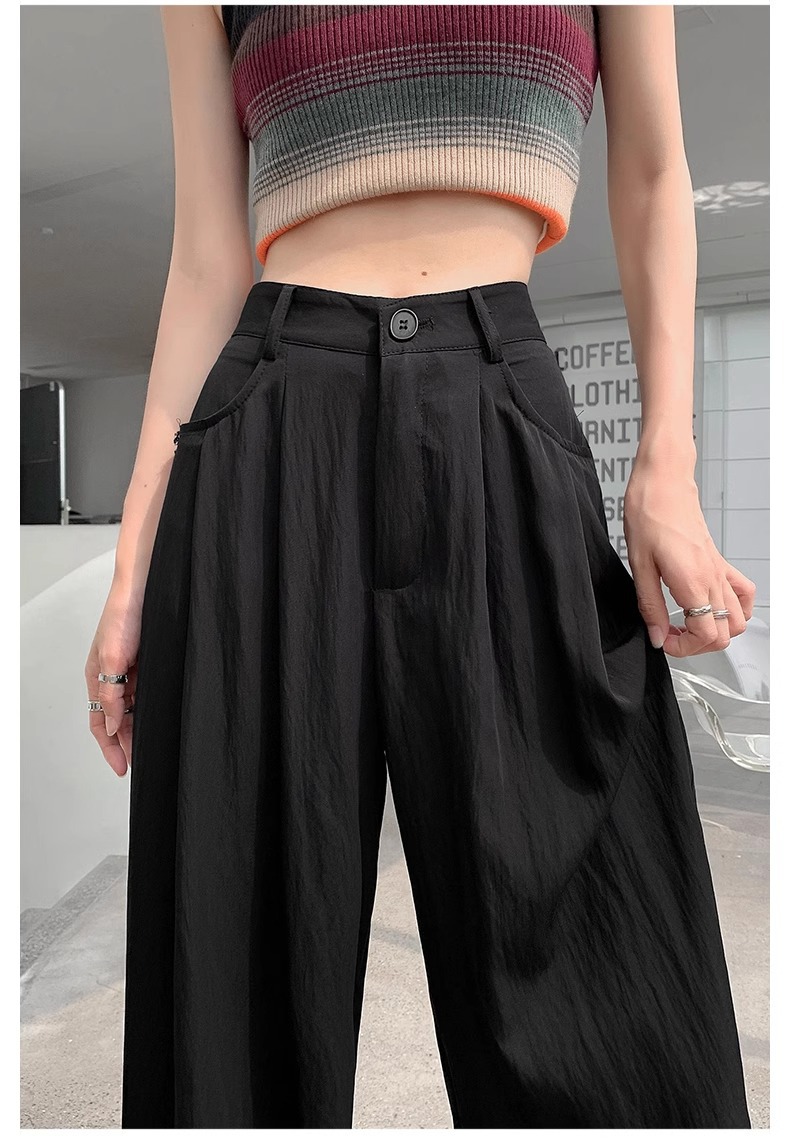 Pantalones de piernas anchas de mujer primavera y otoño verano 2025 nuevos pantalones casuales de cintura alta y flauta relajada
