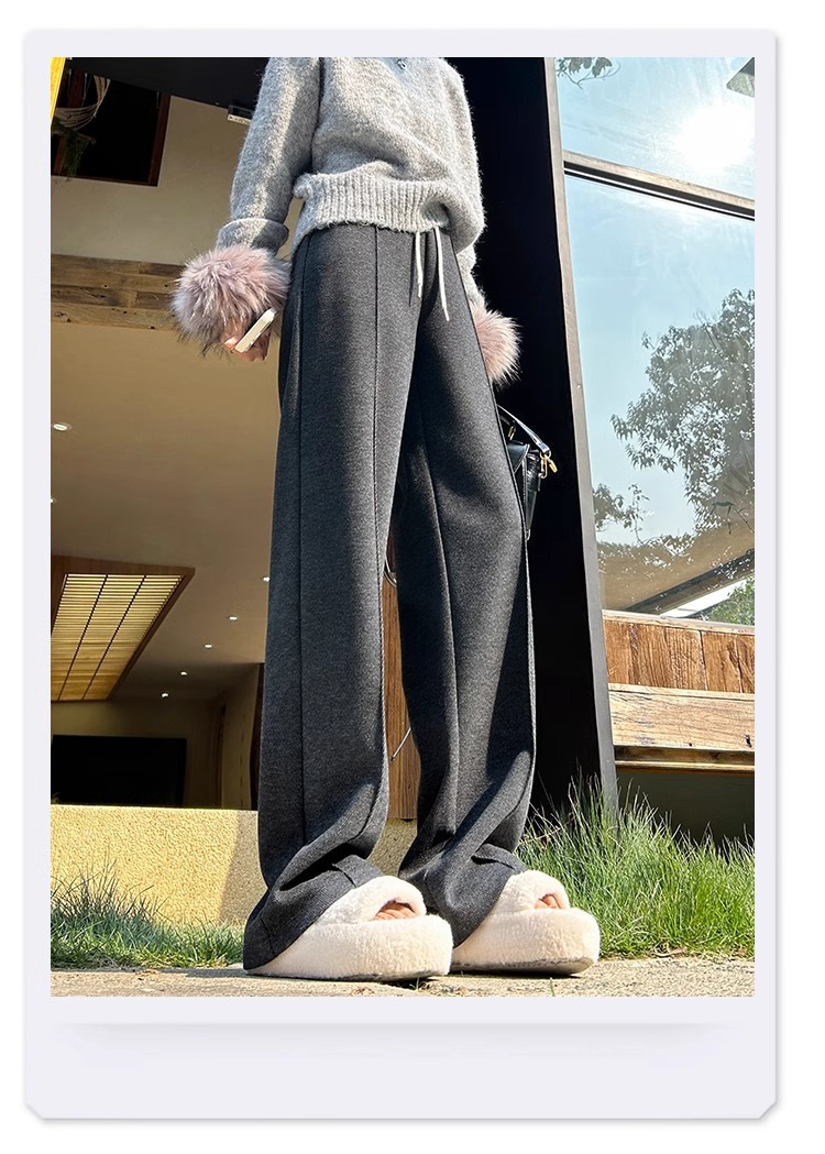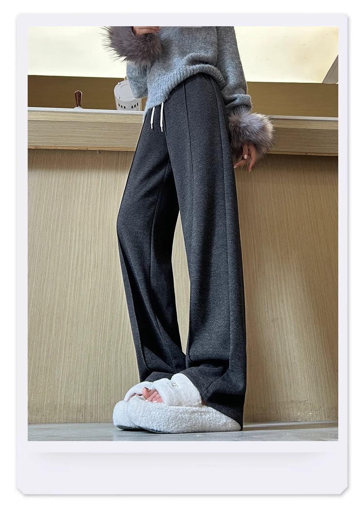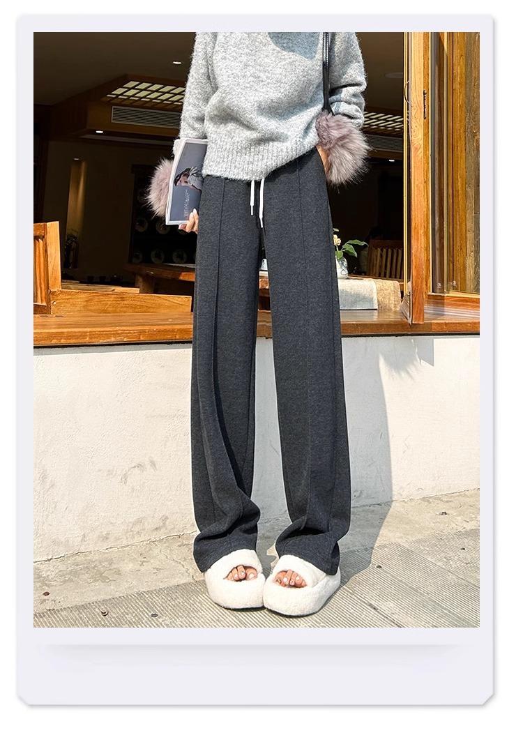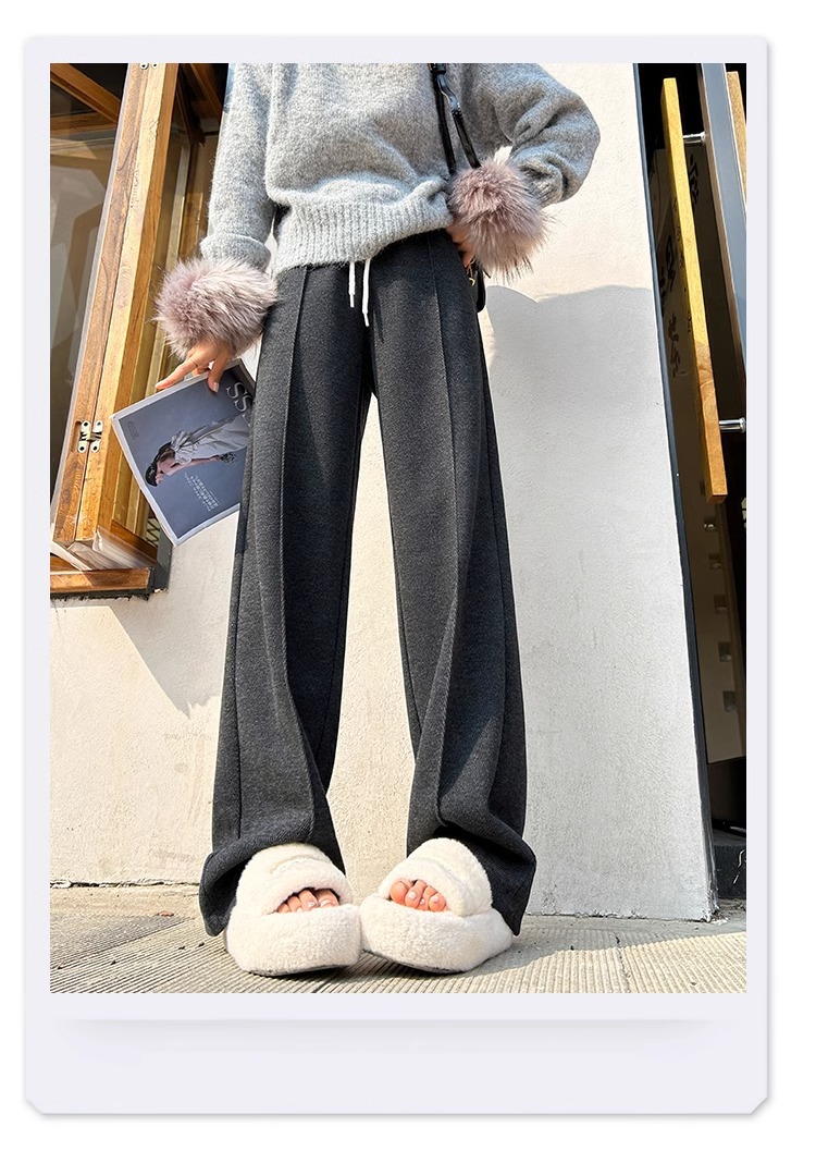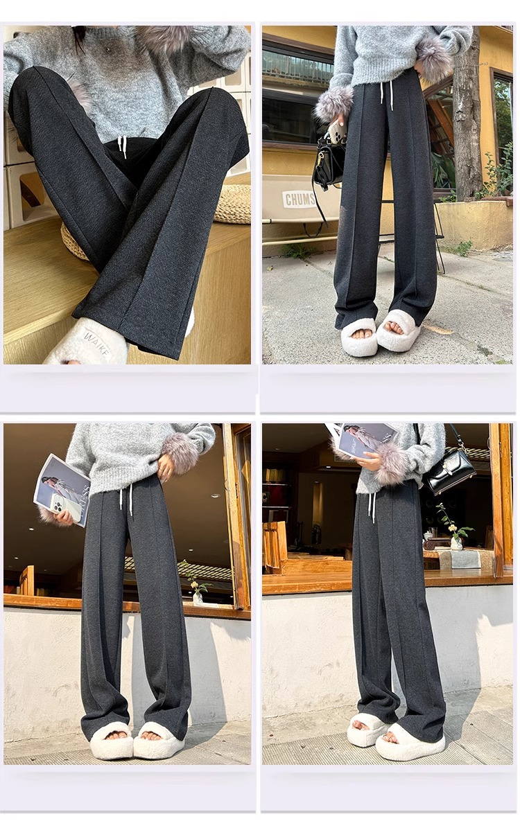 Pantalones de arroz pegajoso gris oscuro para mujeres de invierno y otoño 2024 pantalones de invierno de piernas anchas pantalones casuales relajados