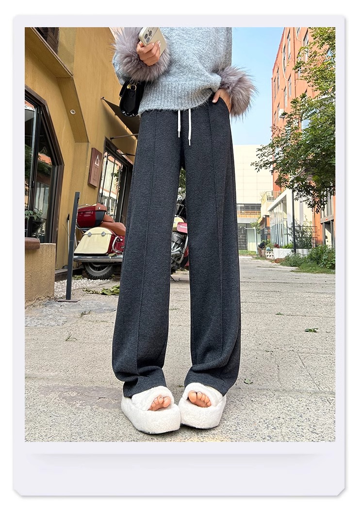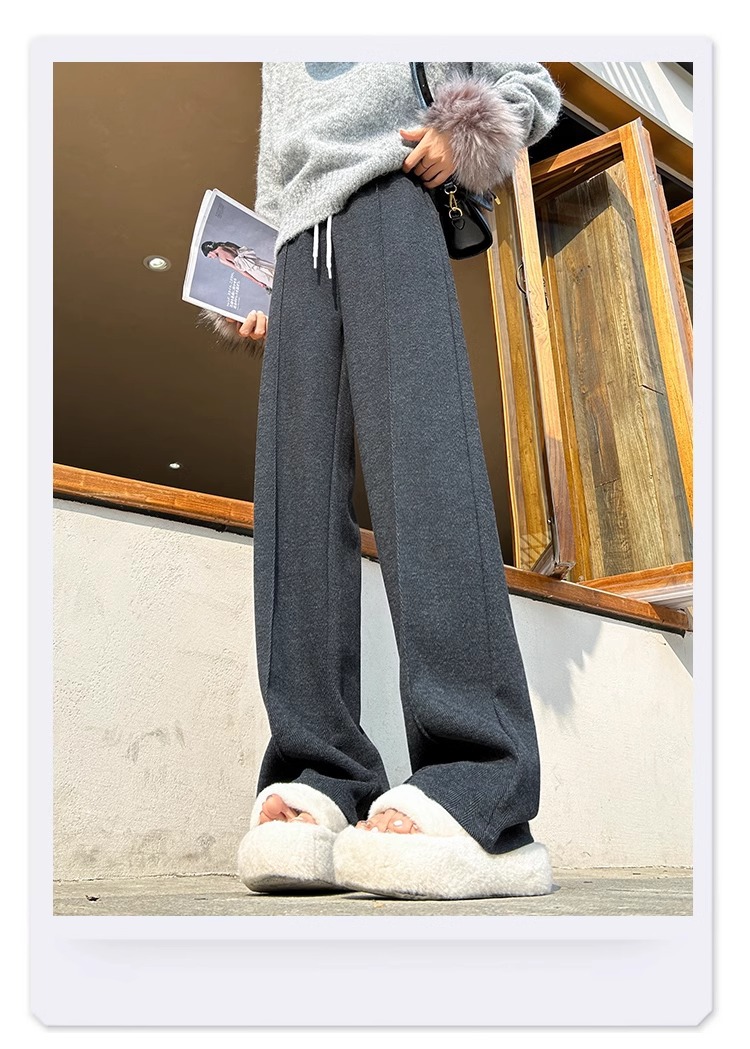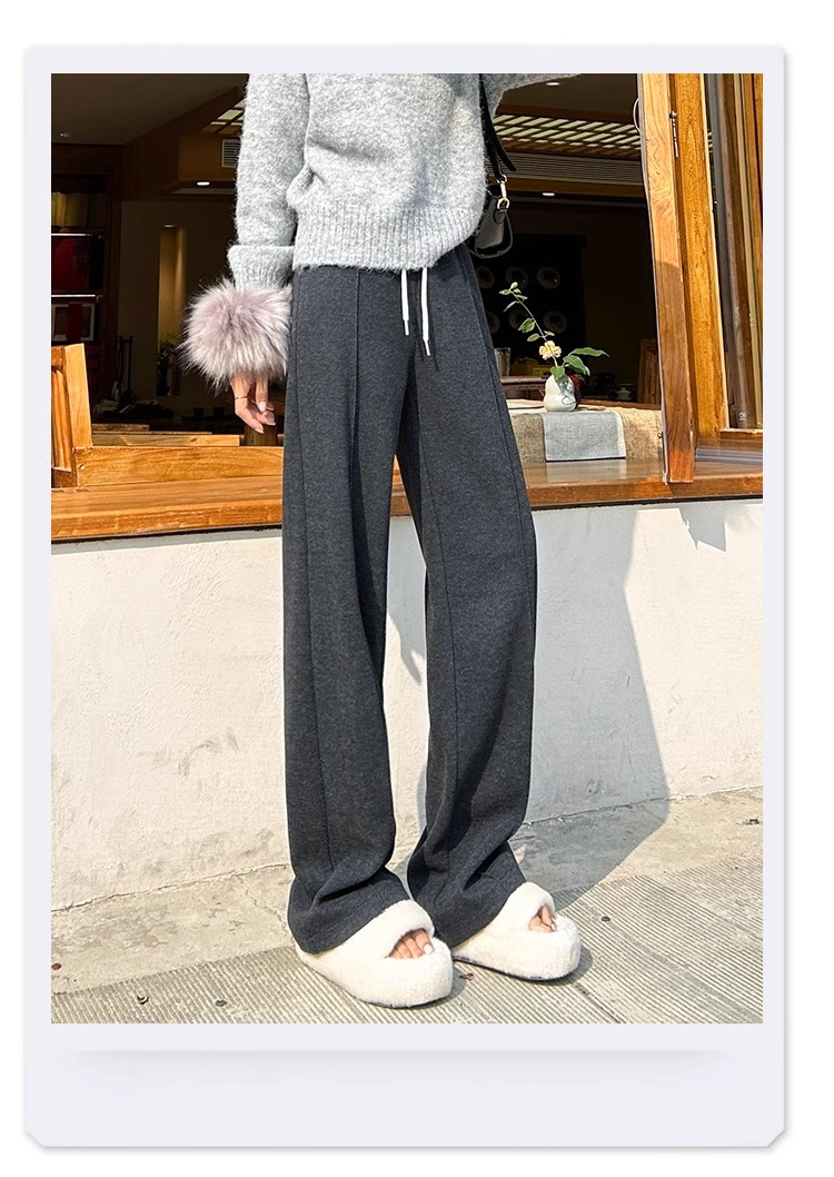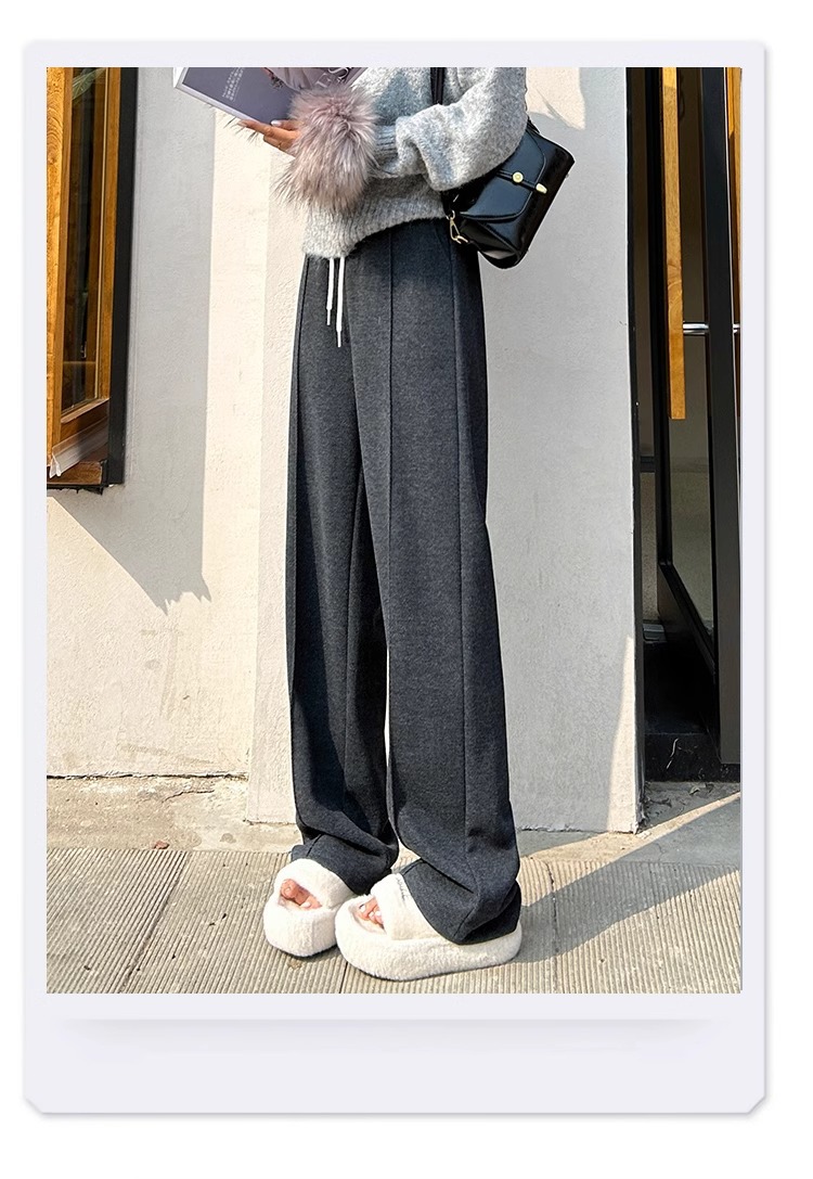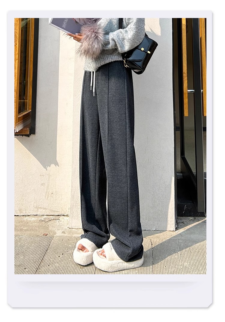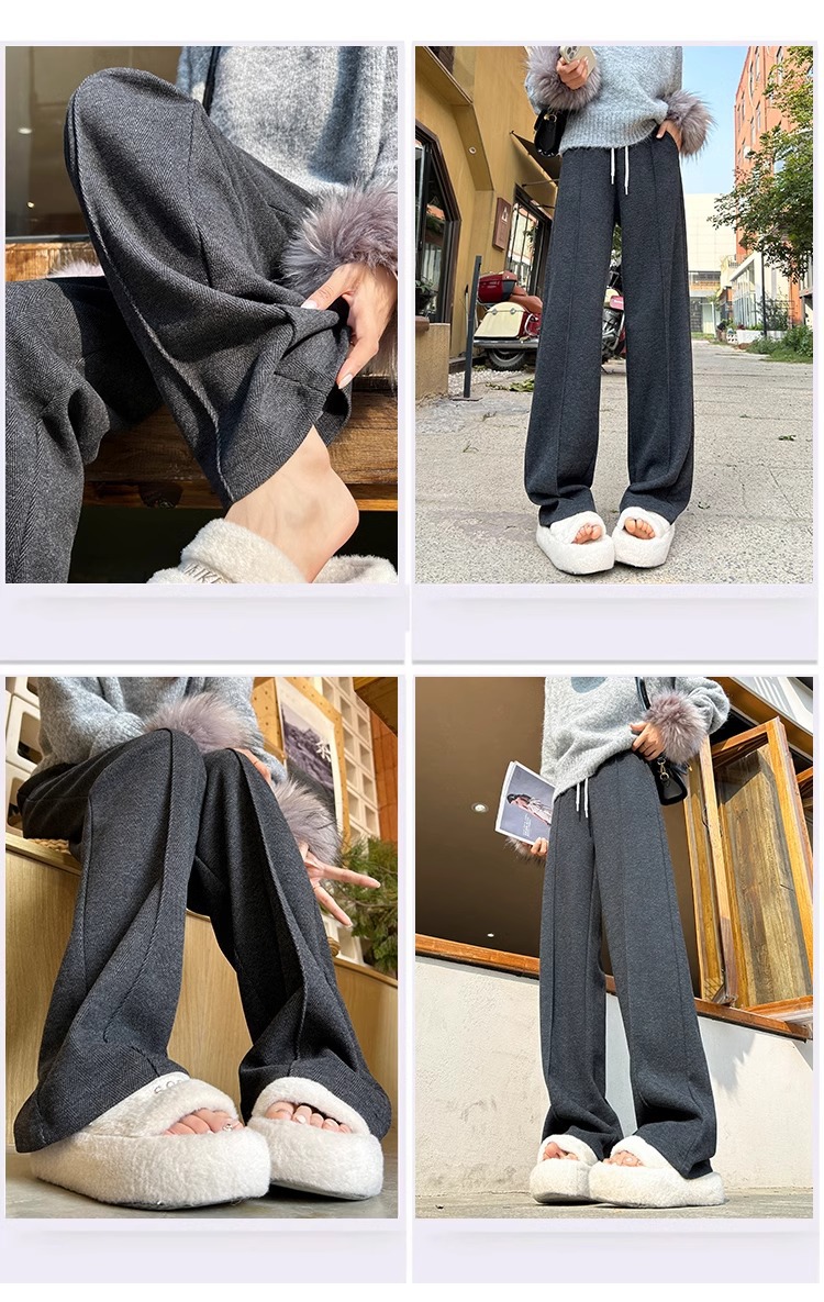 Pantalones de arroz pegajoso gris oscuro para mujeres de invierno y otoño 2024 pantalones de invierno de piernas anchas pantalones casuales relajados