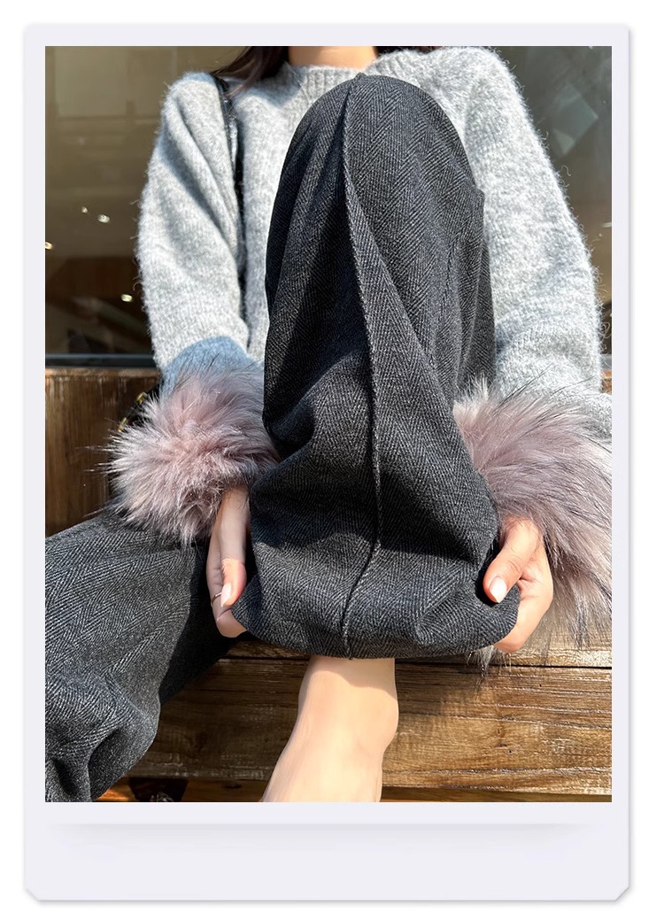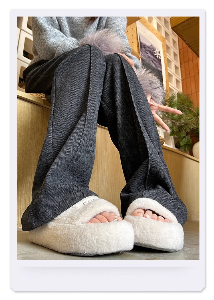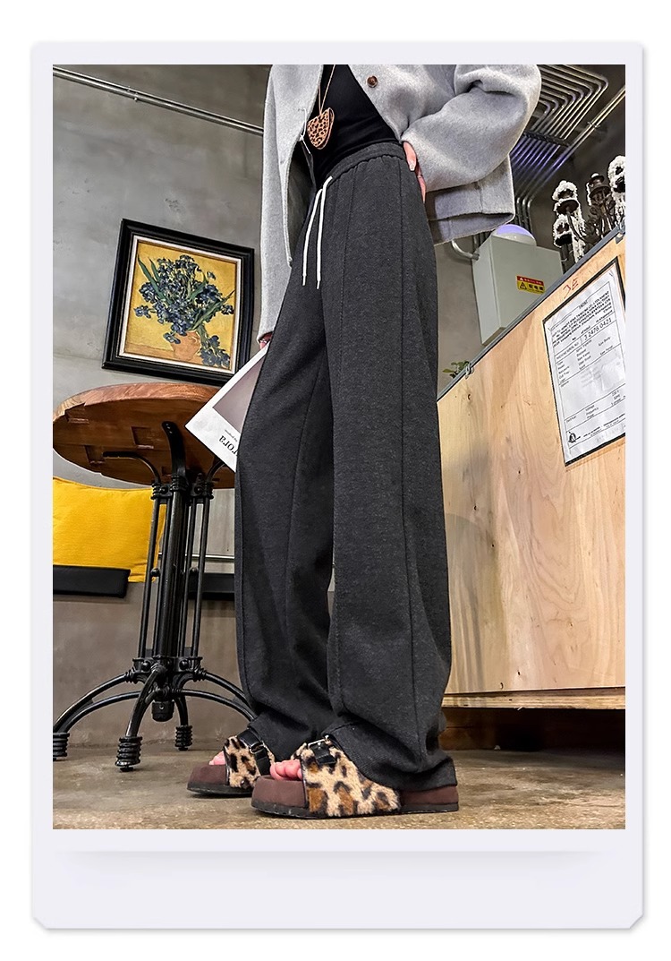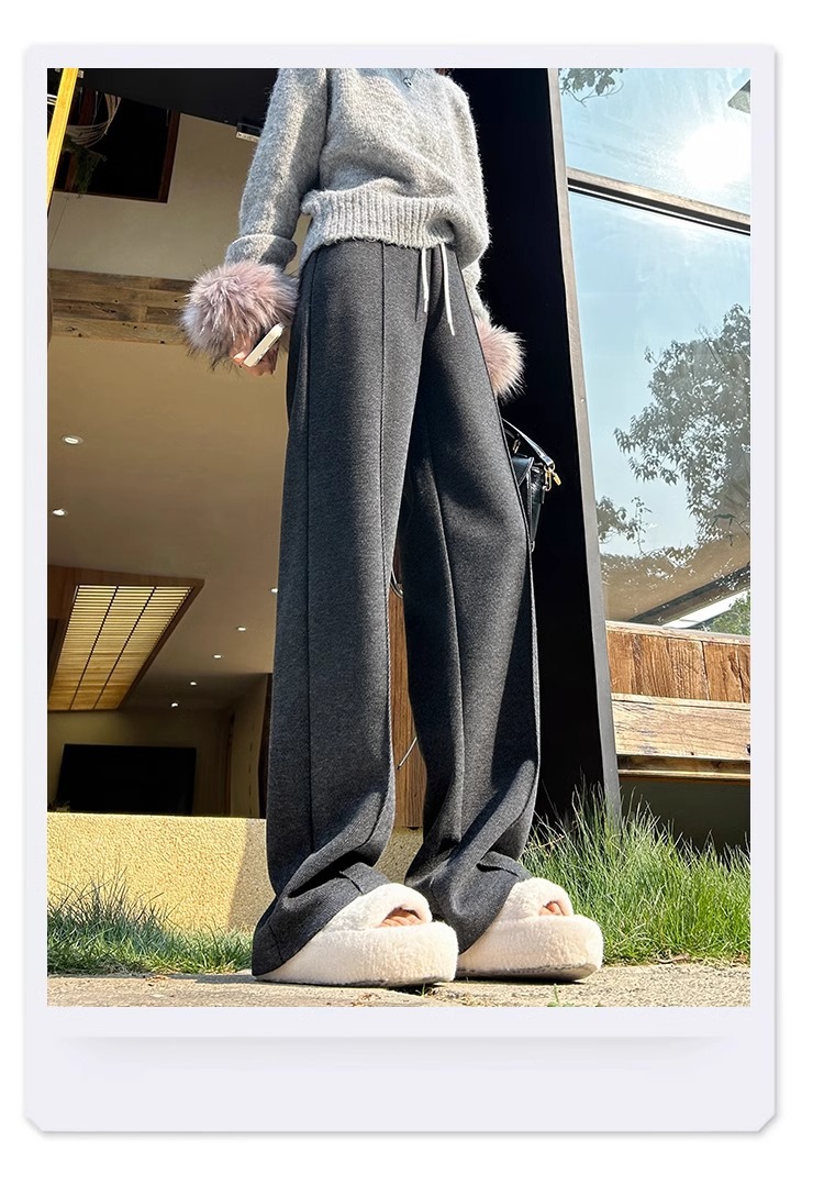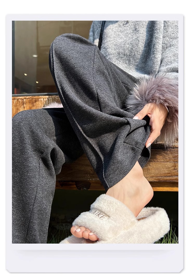 Pantalones de arroz pegajoso gris oscuro para mujeres de invierno y otoño 2024 pantalones de invierno de piernas anchas pantalones casuales relajados