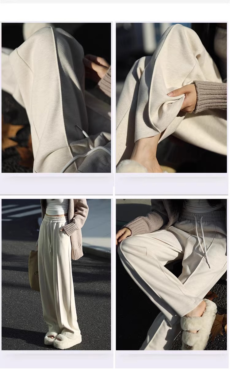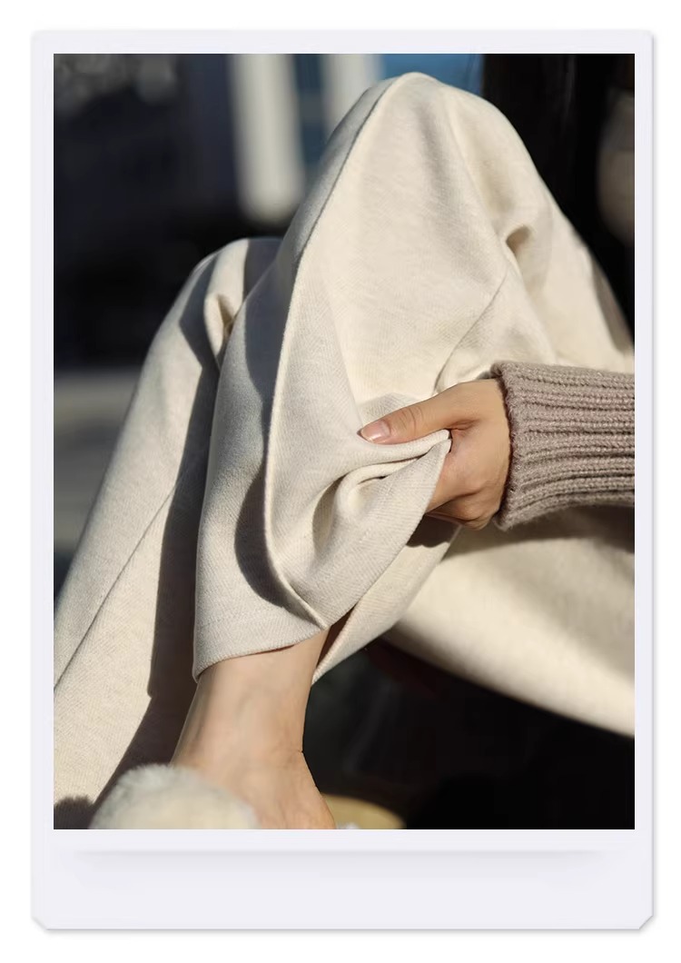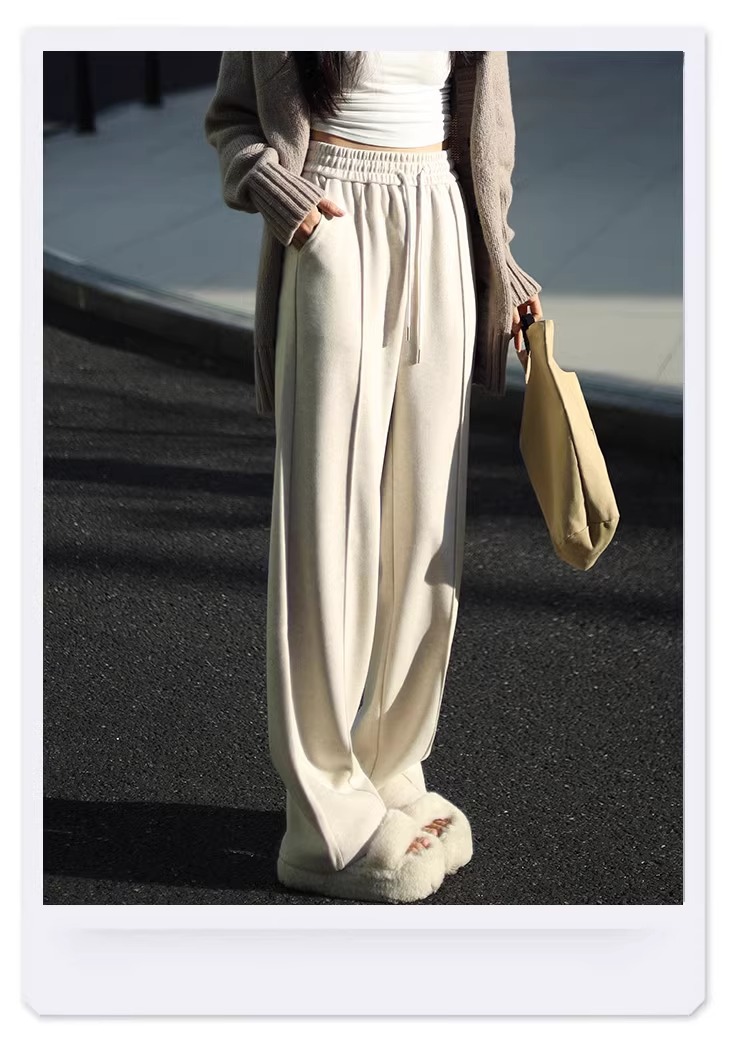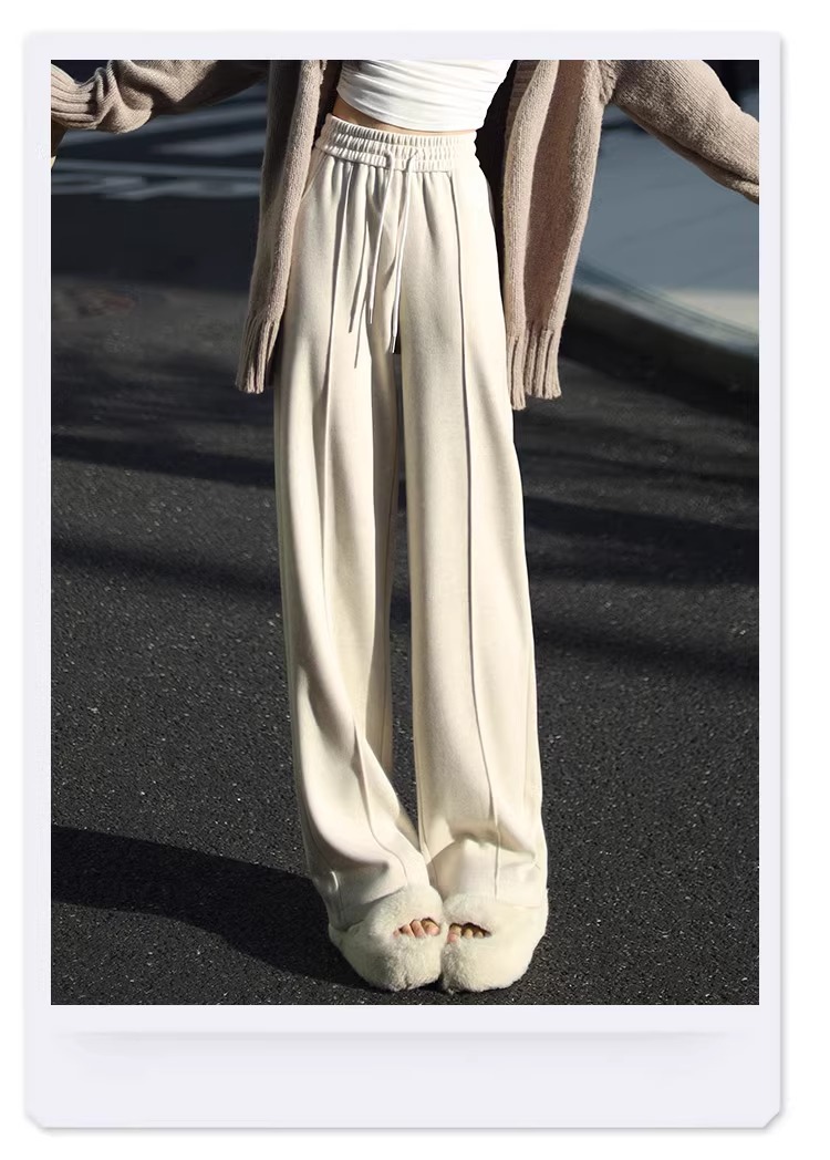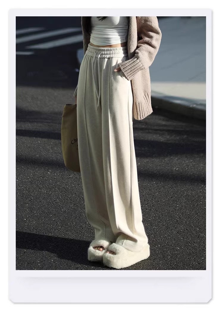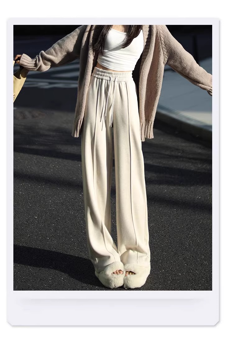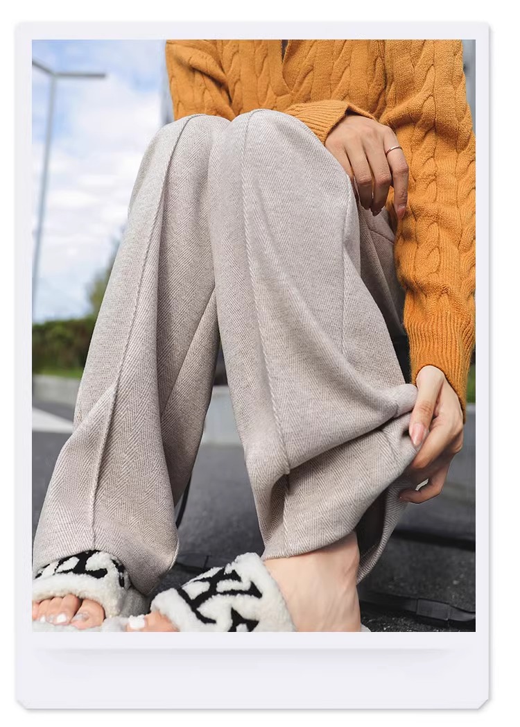 Pantalones de piernas anchas blancas de herringbone para mujeres primavera y otoño 2024 nuevo estilo alargado otoño y invierno grueso de cintura alta pantalones de lana