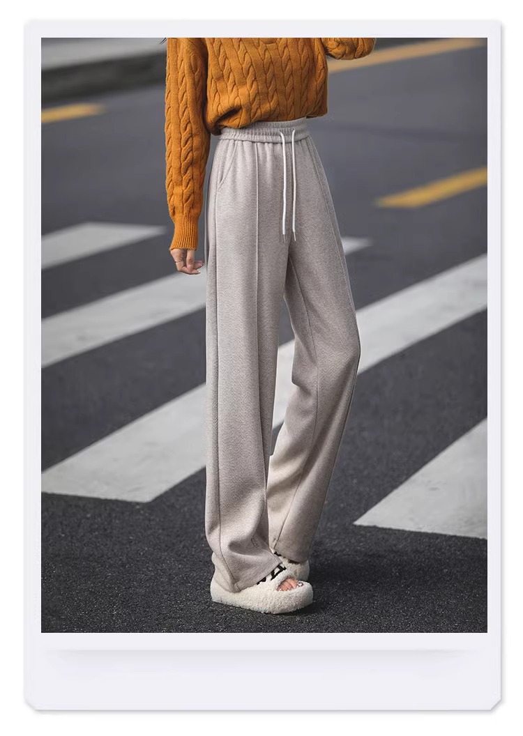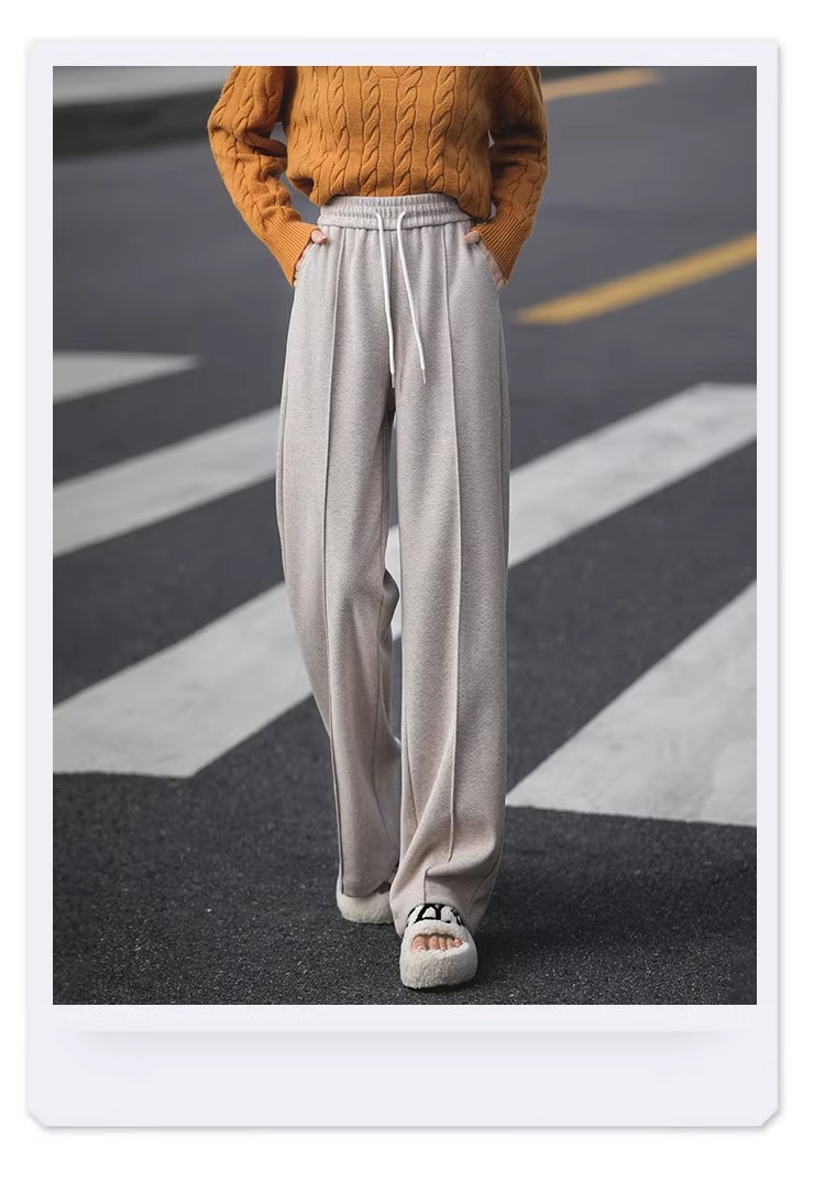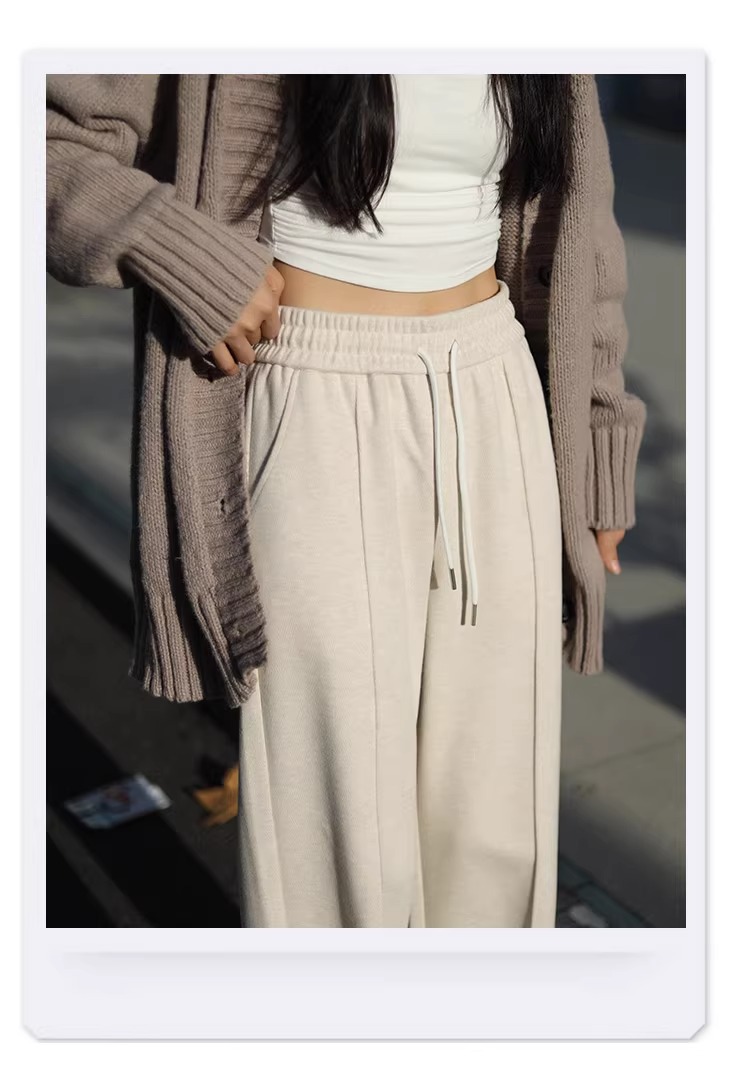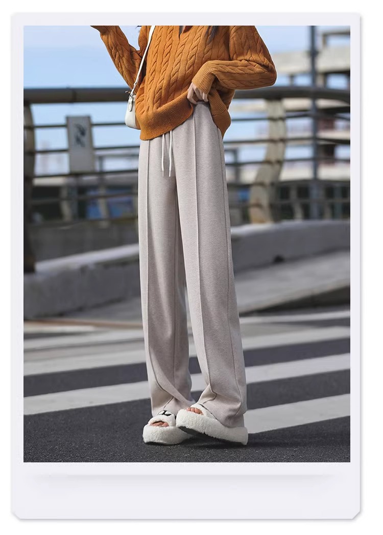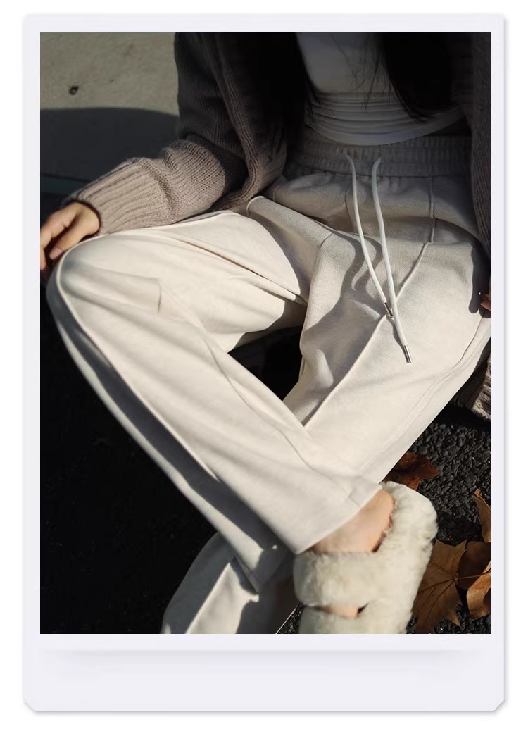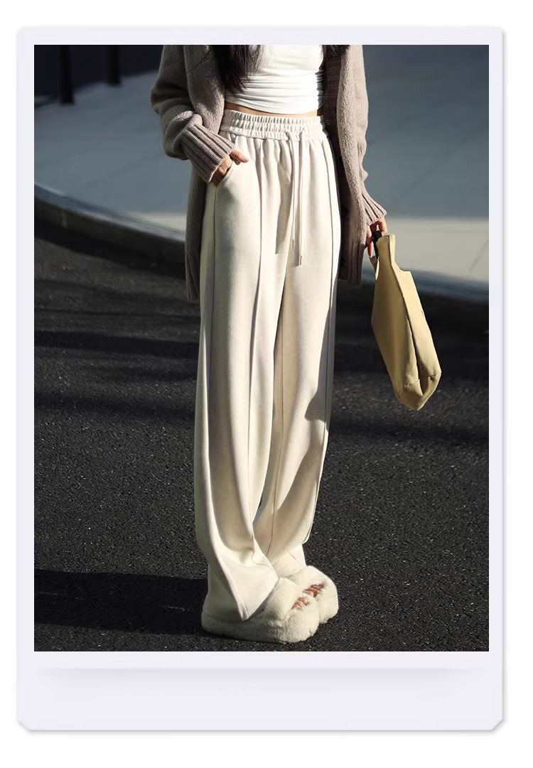 Pantalones de piernas anchas blancas de herringbone para mujeres primavera y otoño 2024 nuevo estilo alargado otoño y invierno grueso de cintura alta pantalones de lana