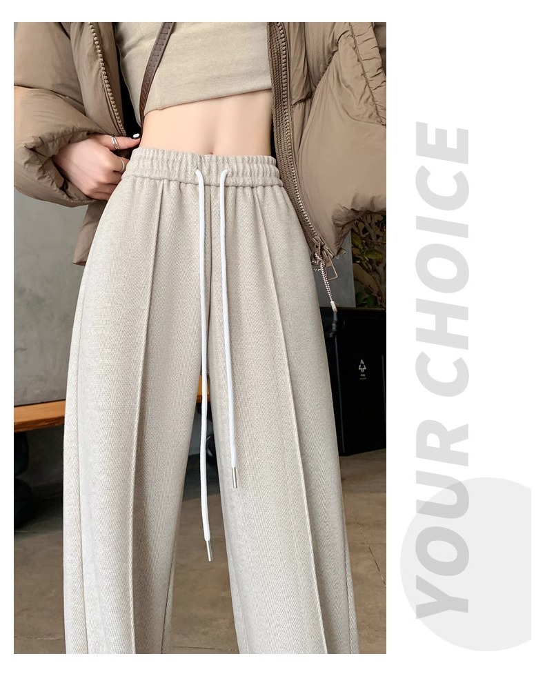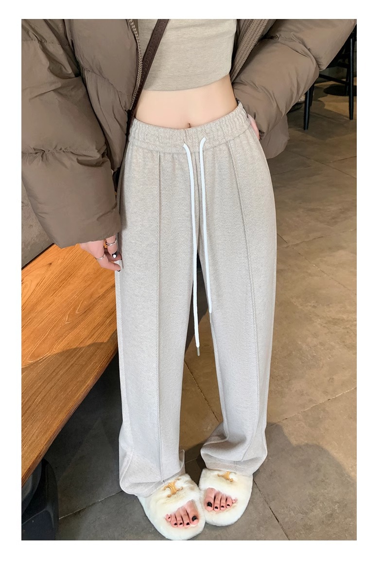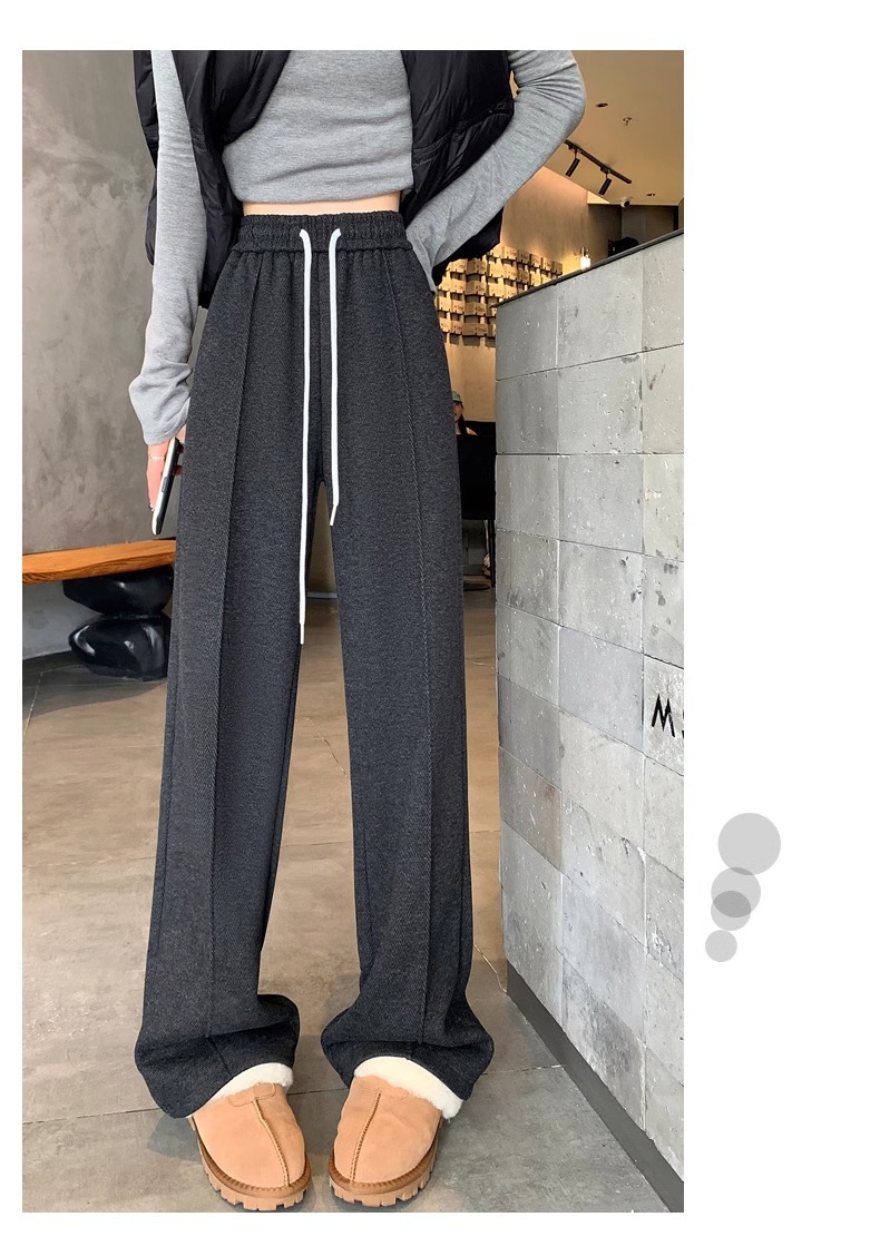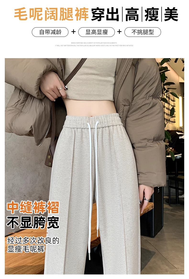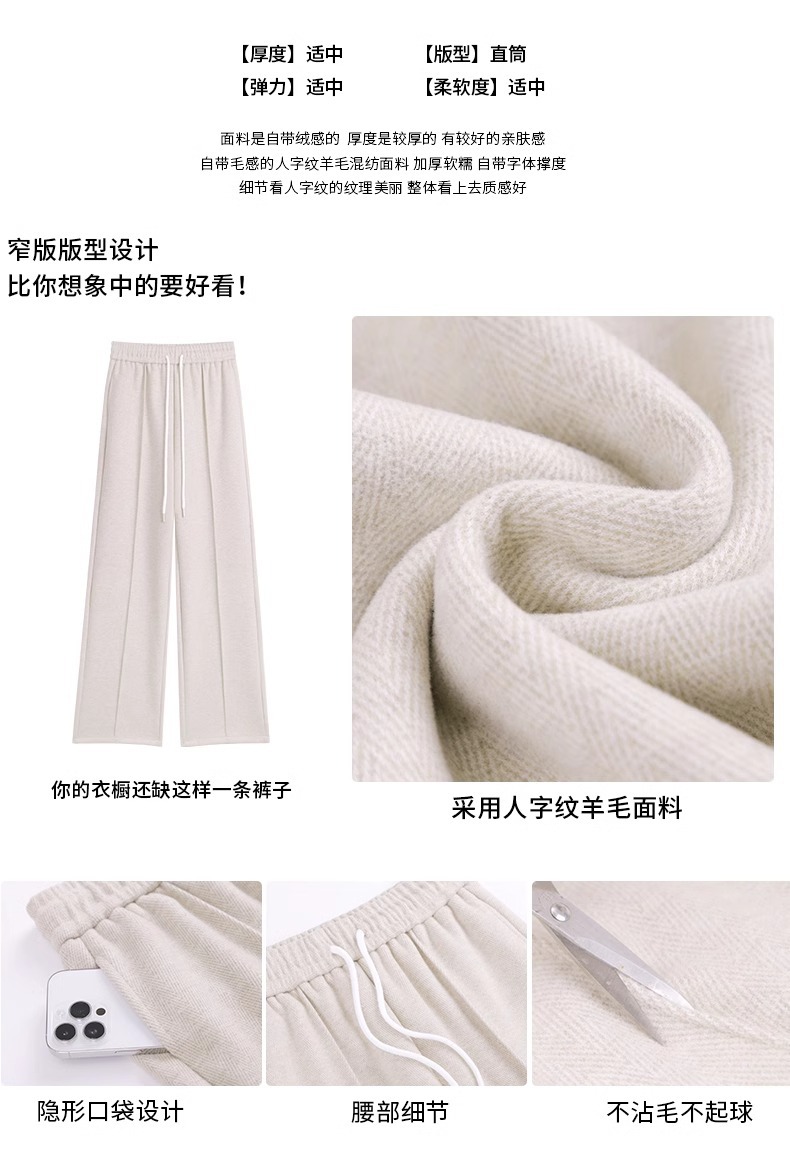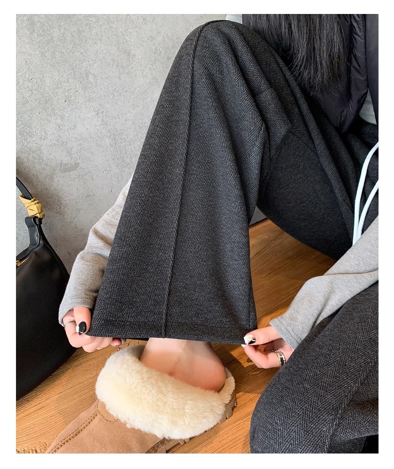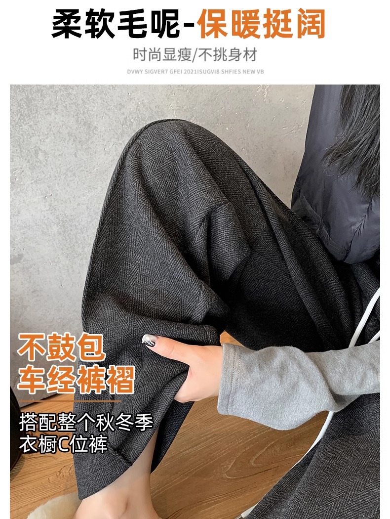 Pantalones de piernas anchas de herringbone para mujeres otoño y invierno 2024 nuevos pantalones de tween de hombre pequeño, pantalones casuales acrílicos estrechos