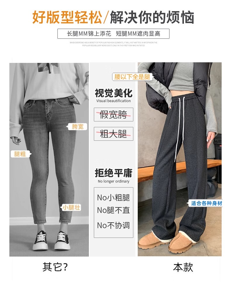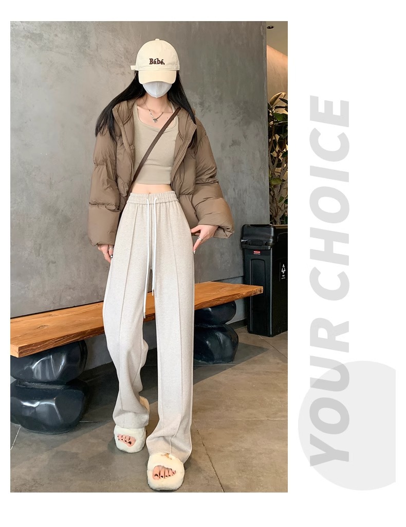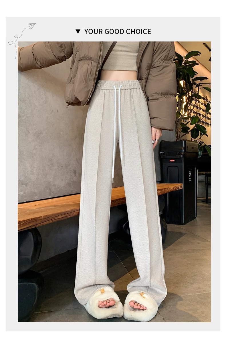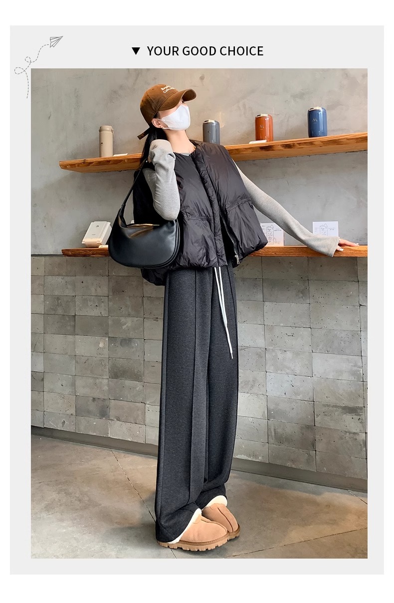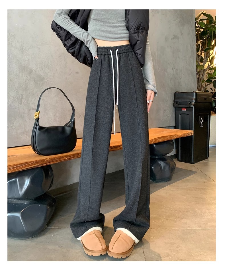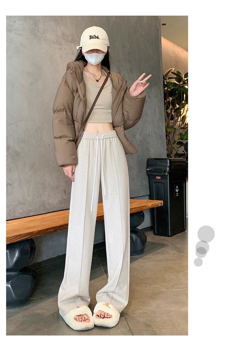Pantalones de piernas anchas de herringbone para mujeres otoño y invierno 2024 nuevos pantalones de tween de hombre pequeño, pantalones casuales acrílicos estrechos