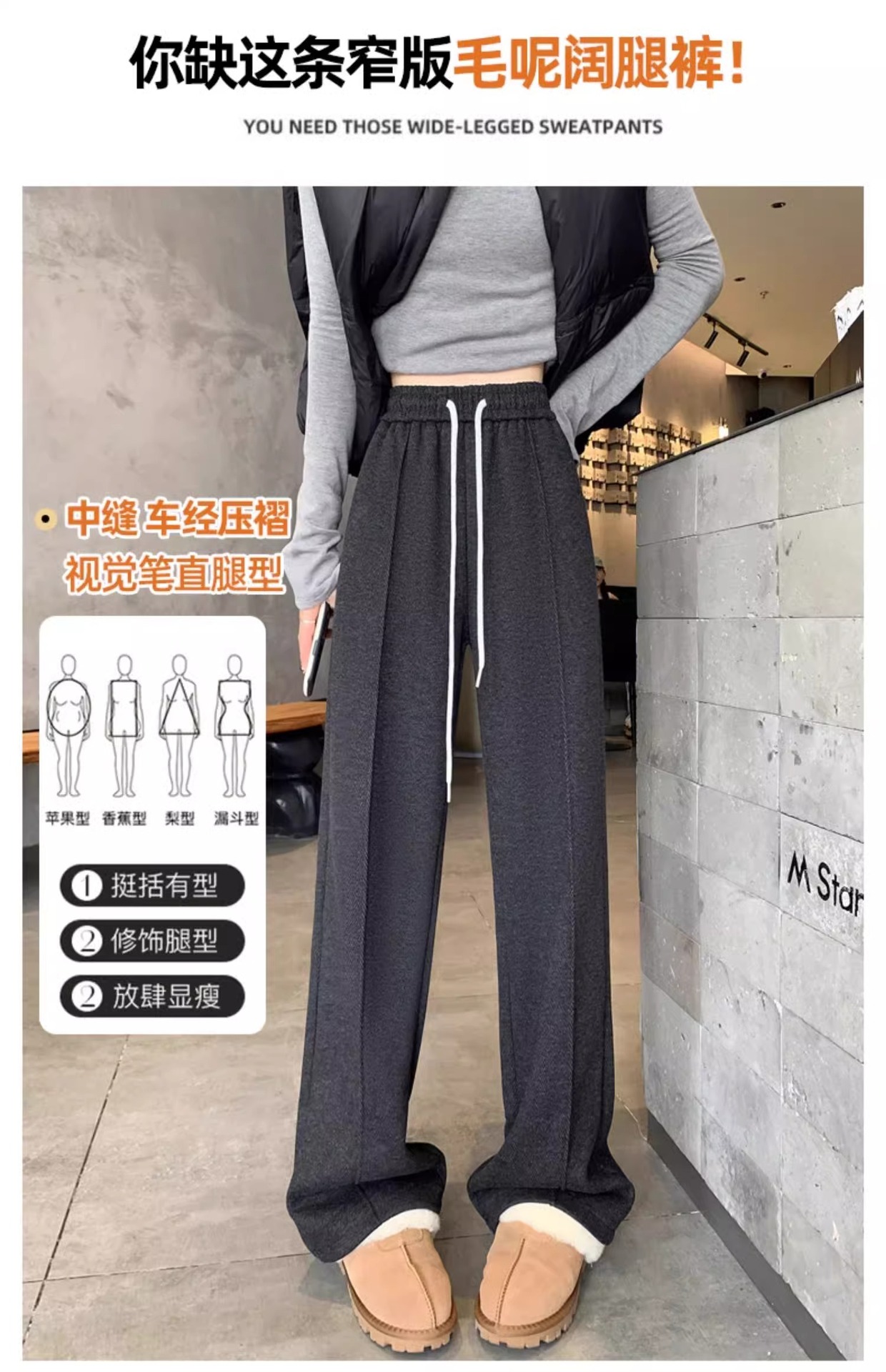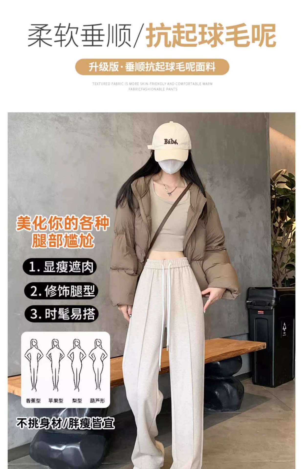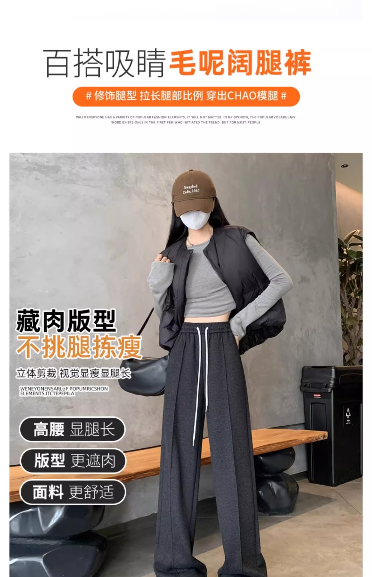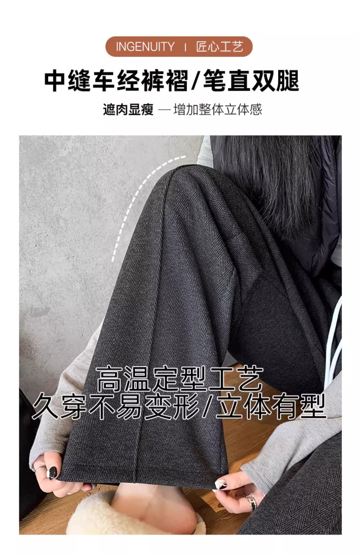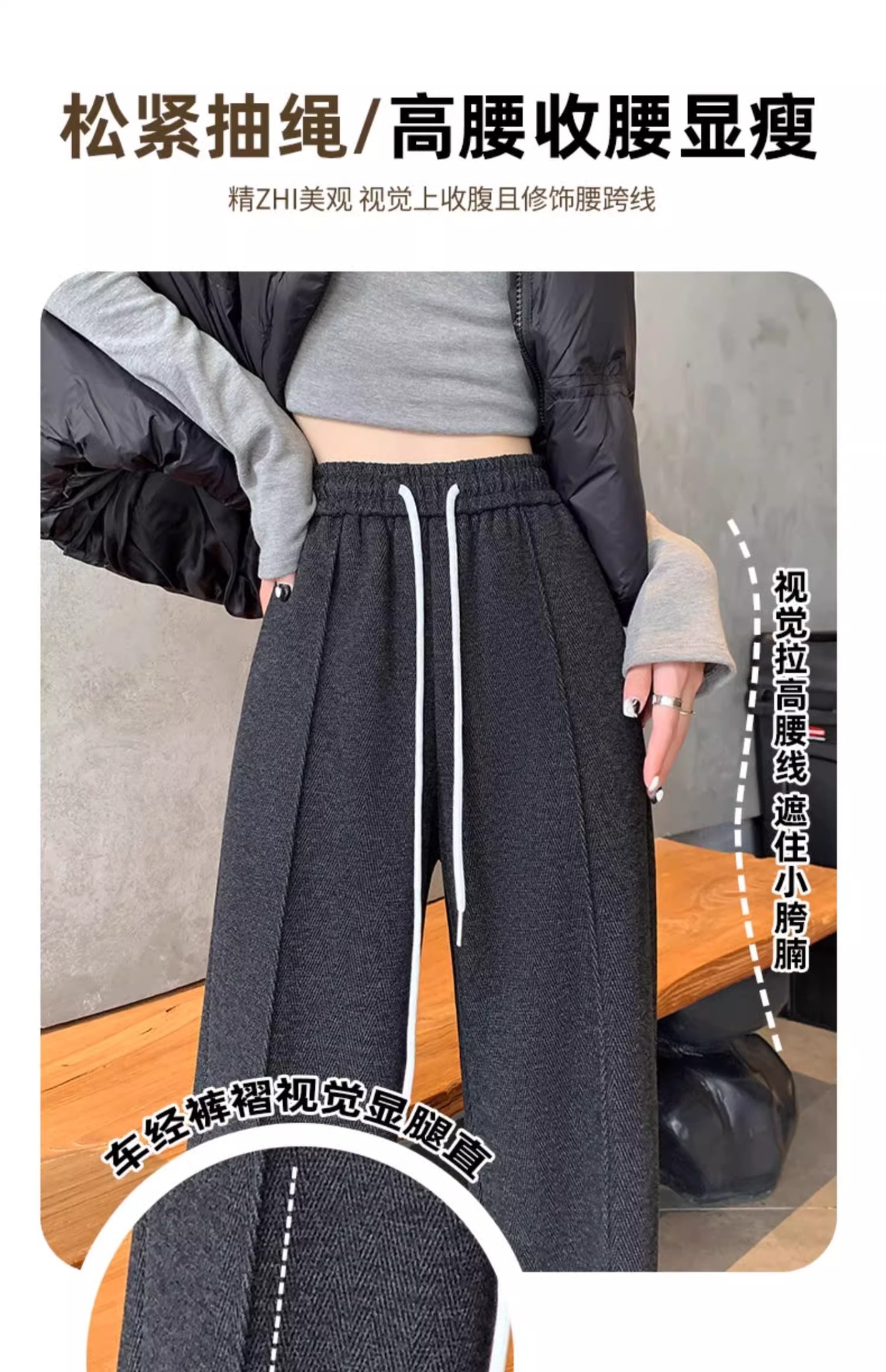 Pantalones de piernas anchas de herringbone para mujeres otoño y invierno 2024 nuevos pantalones de tween de hombre pequeño, pantalones casuales acrílicos estrechos