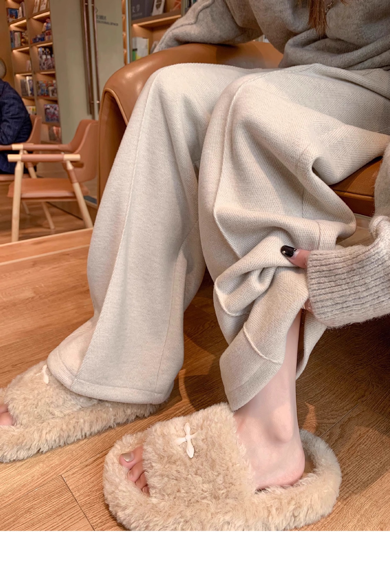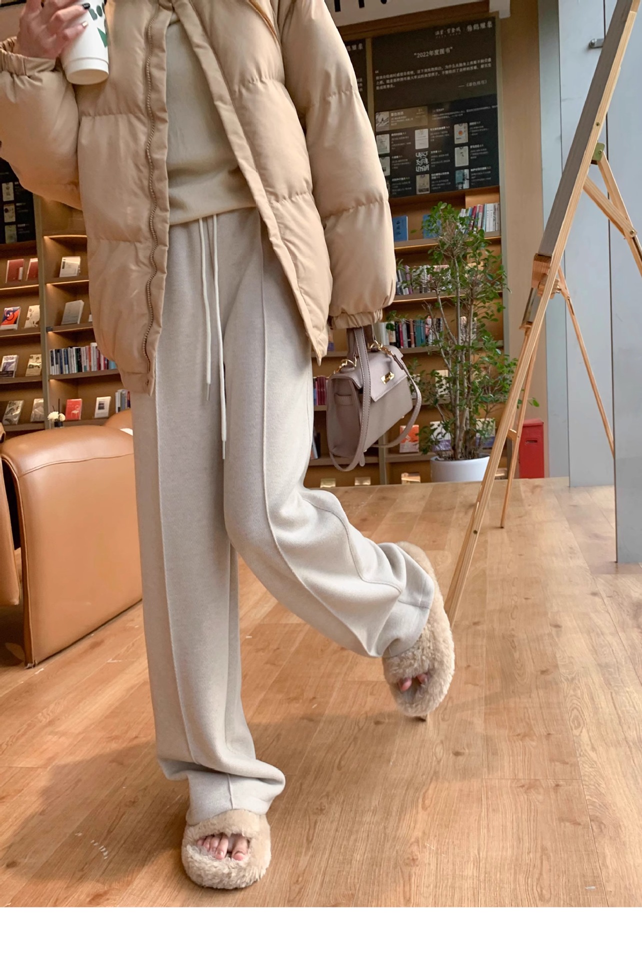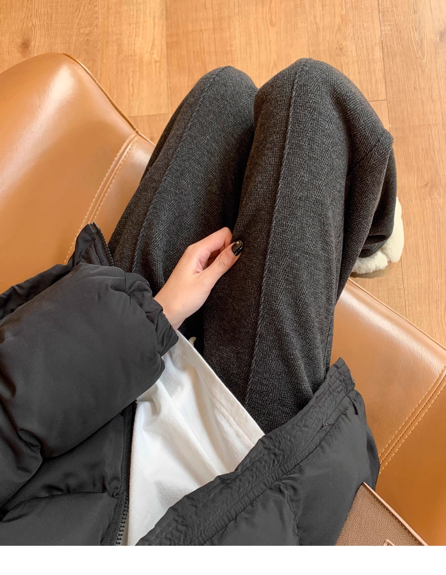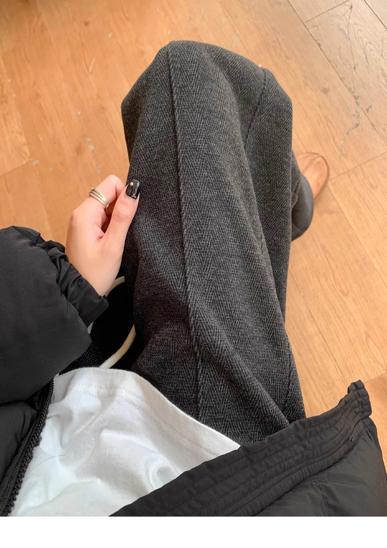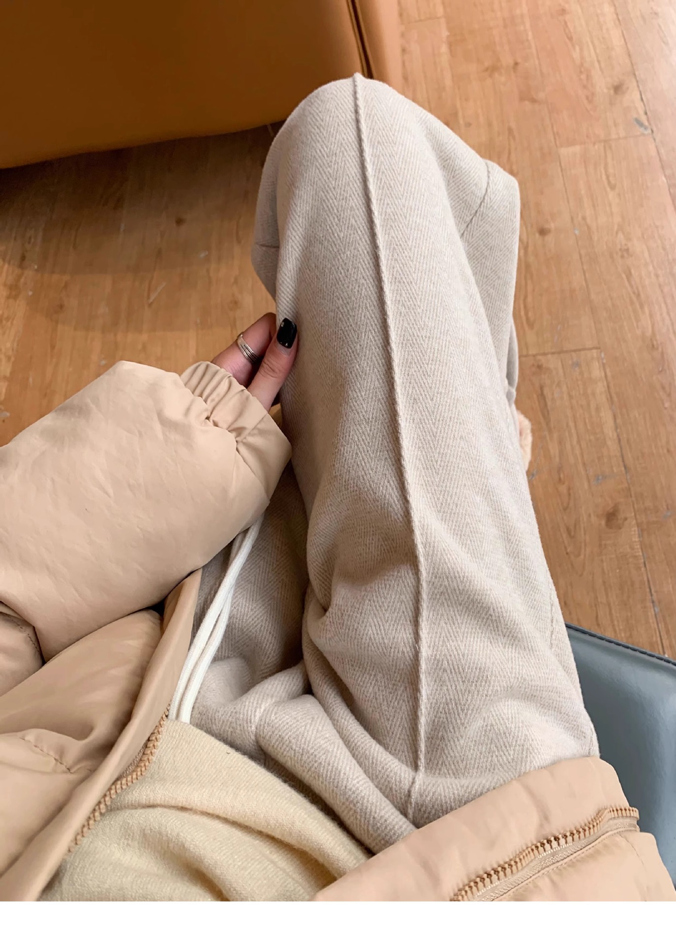 Pantalones de piernas anchas blancas de arroz de otoño y invierno de 2024 nuevos pantalones de cintura alta, pantalones casuales rectos estrechos y gruesos