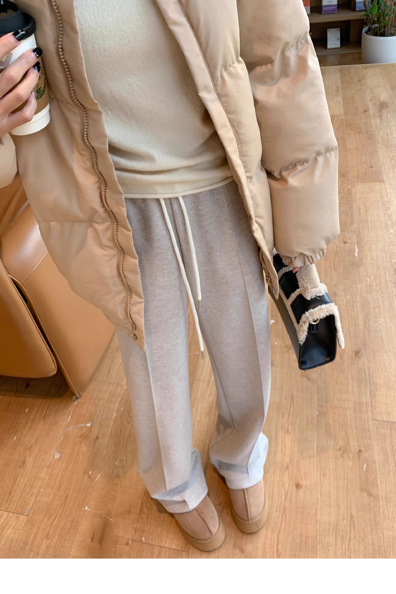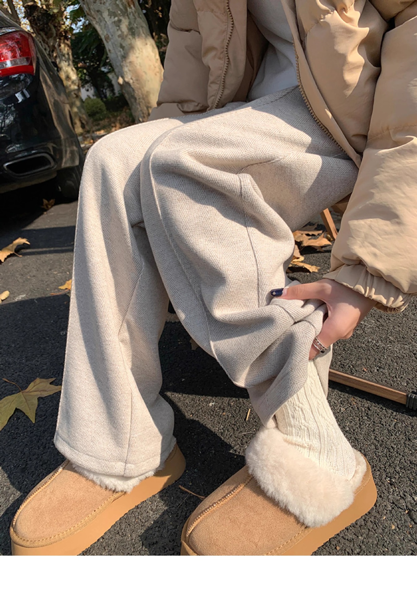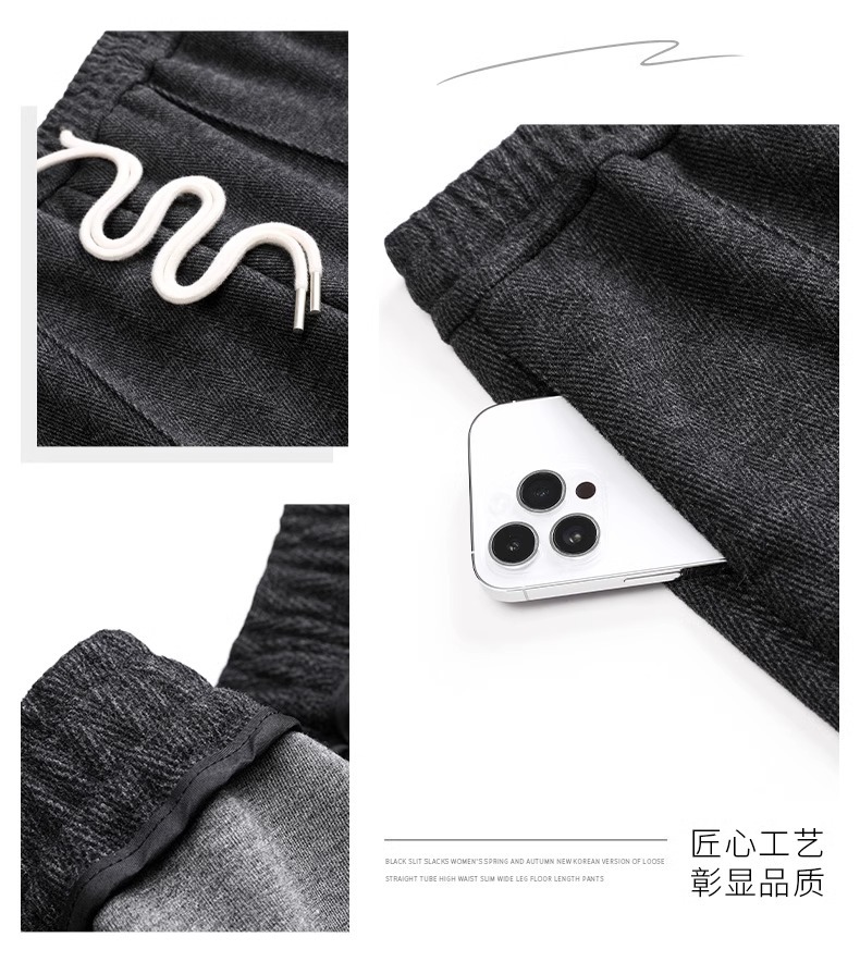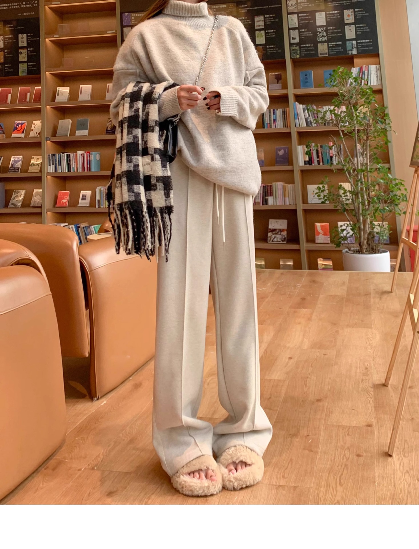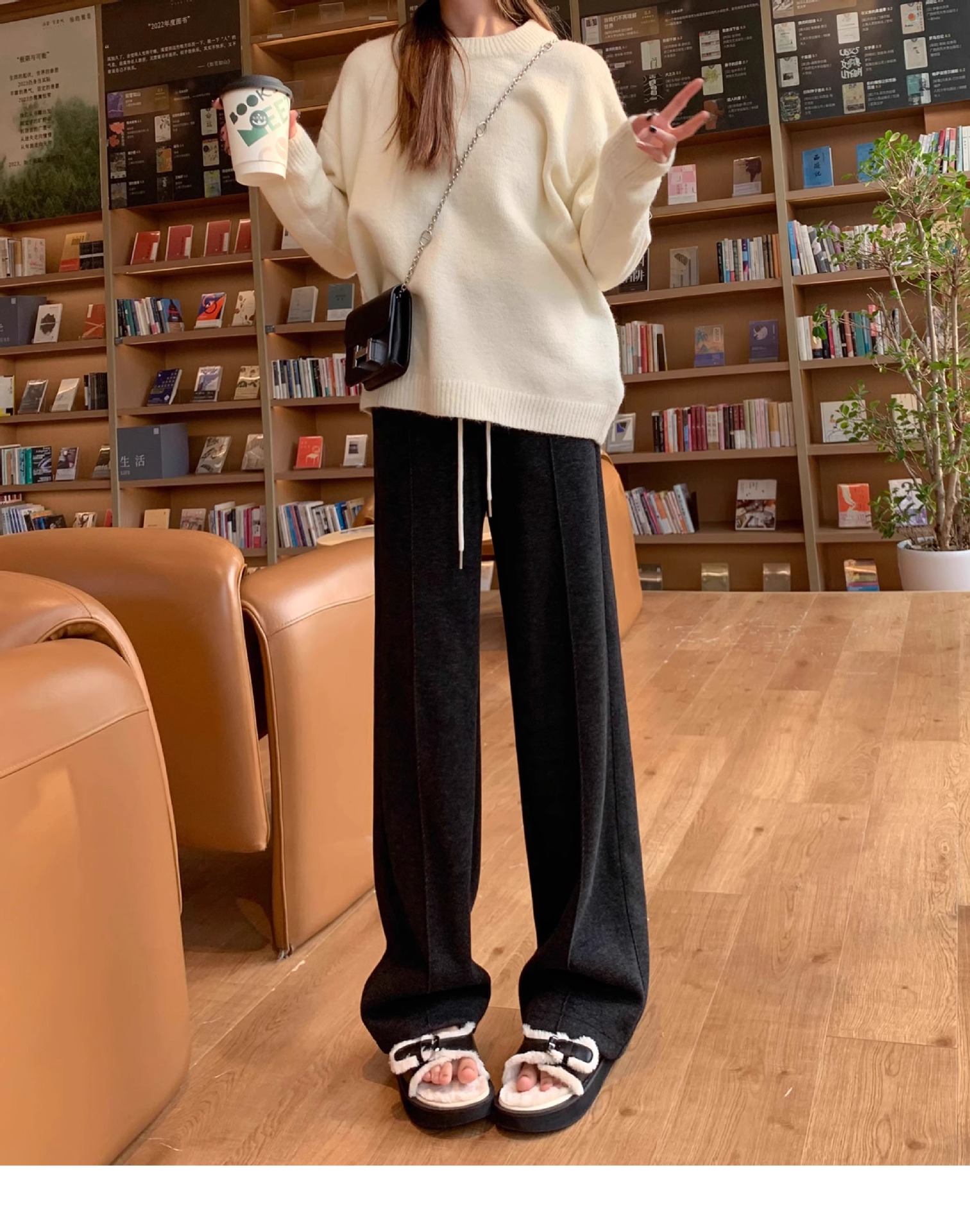 Pantalones de piernas anchas blancas de arroz de otoño y invierno de 2024 nuevos pantalones de cintura alta, pantalones casuales rectos estrechos y gruesos