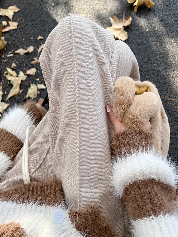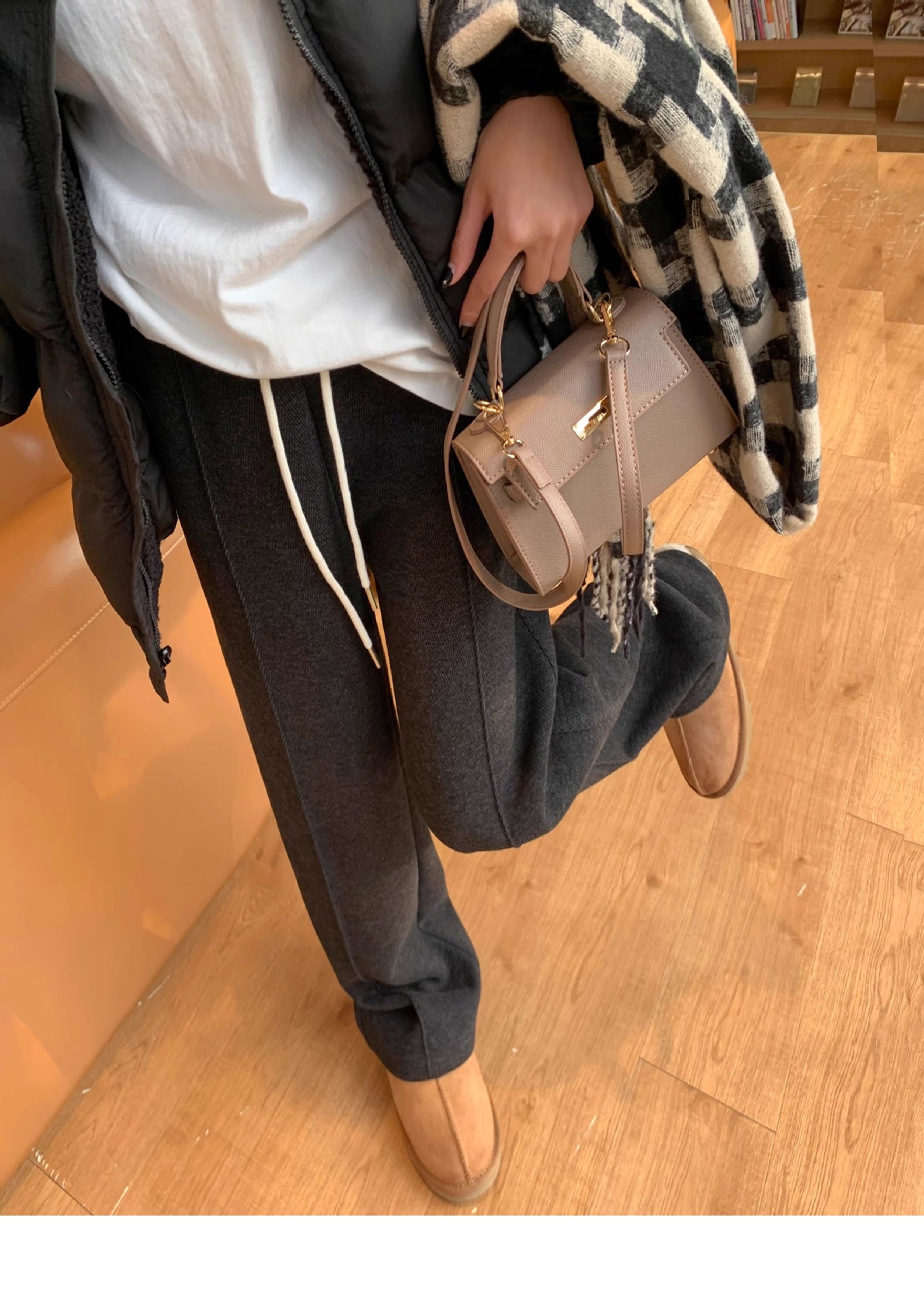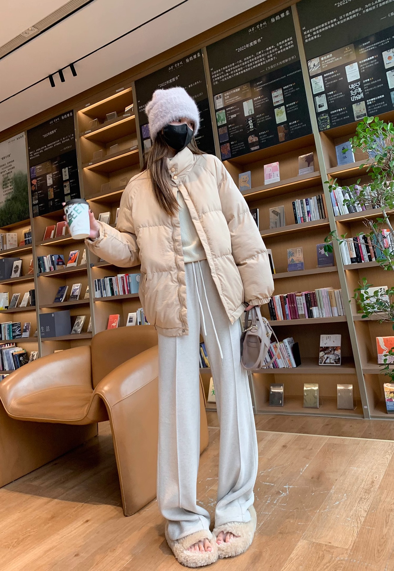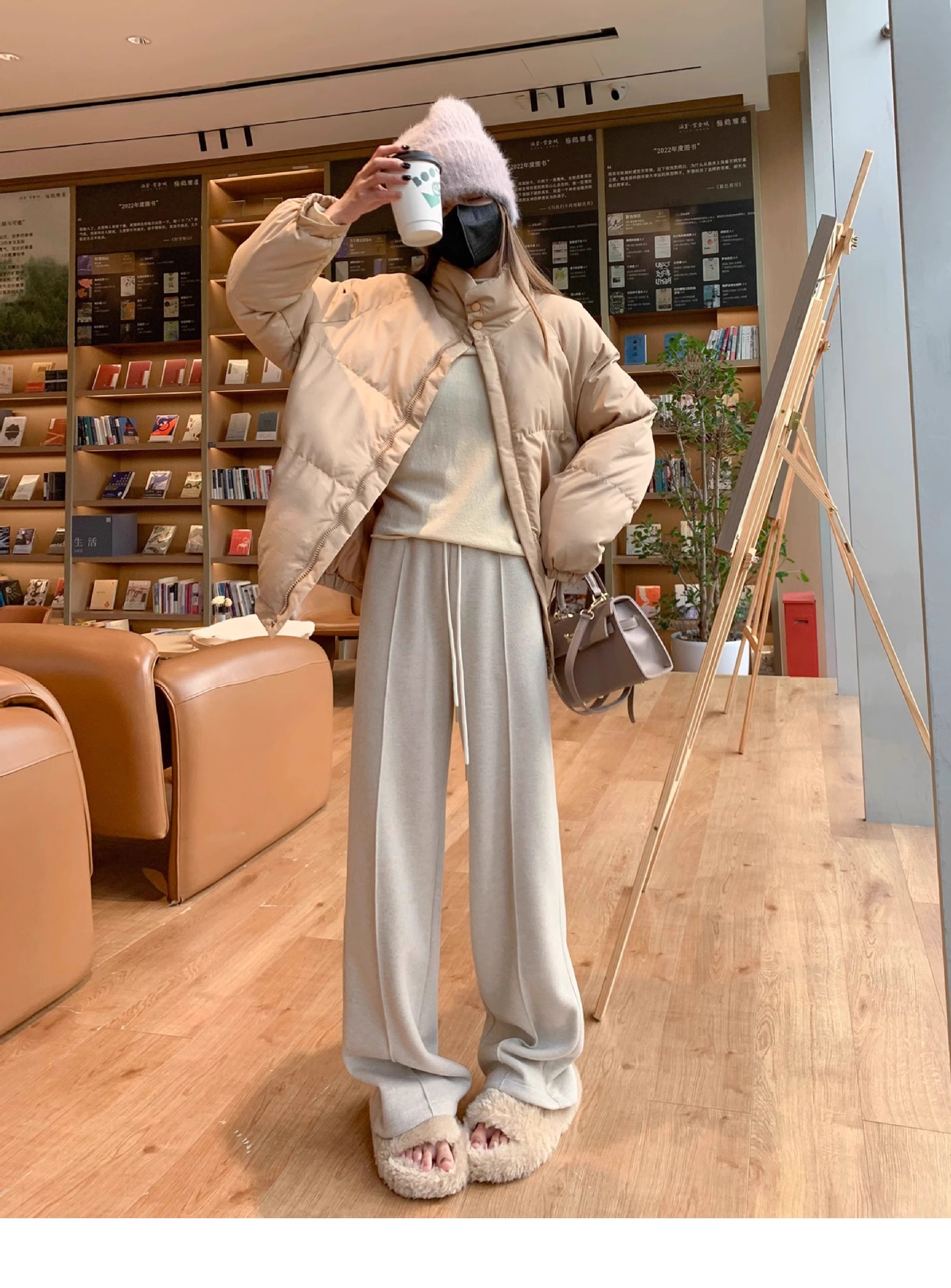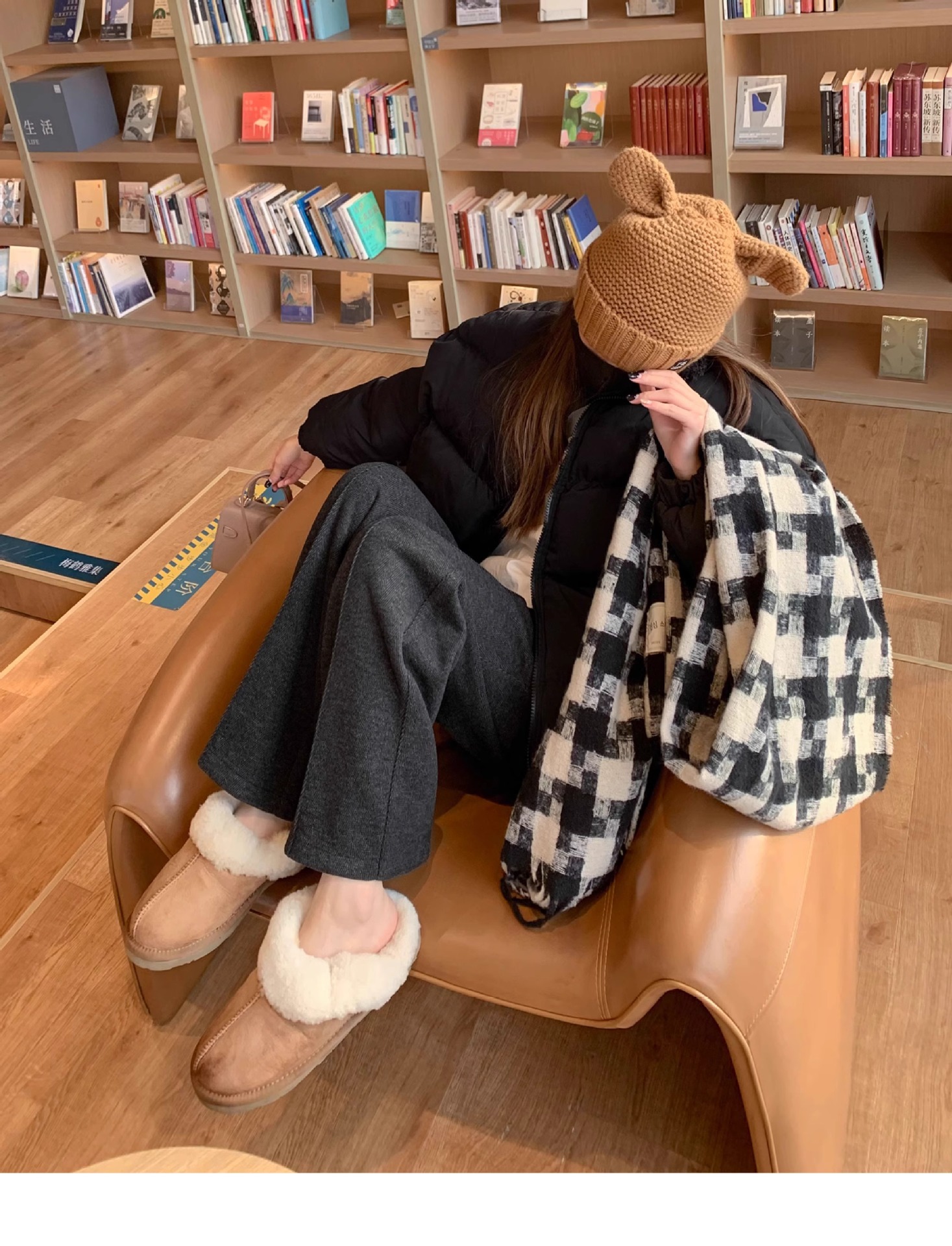 Pantalones de piernas anchas blancas de arroz de otoño y invierno de 2024 nuevos pantalones de cintura alta, pantalones casuales rectos estrechos y gruesos