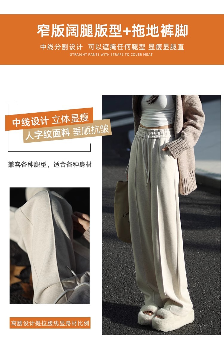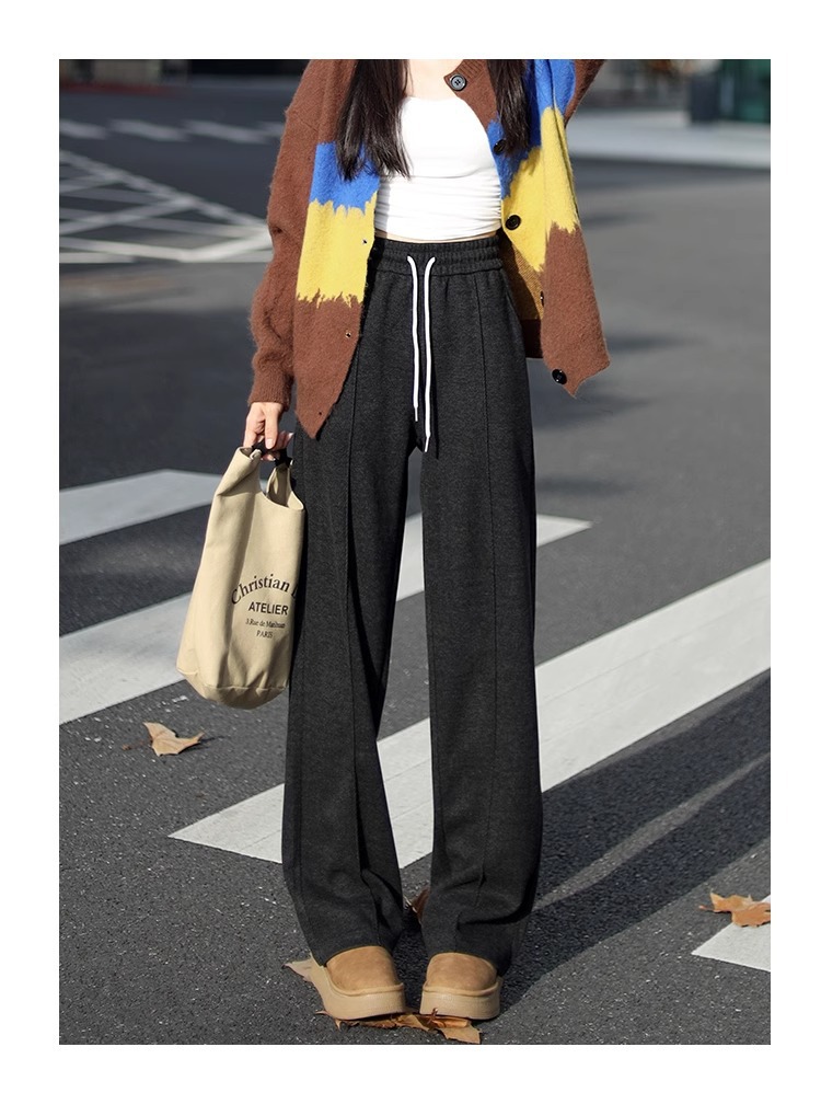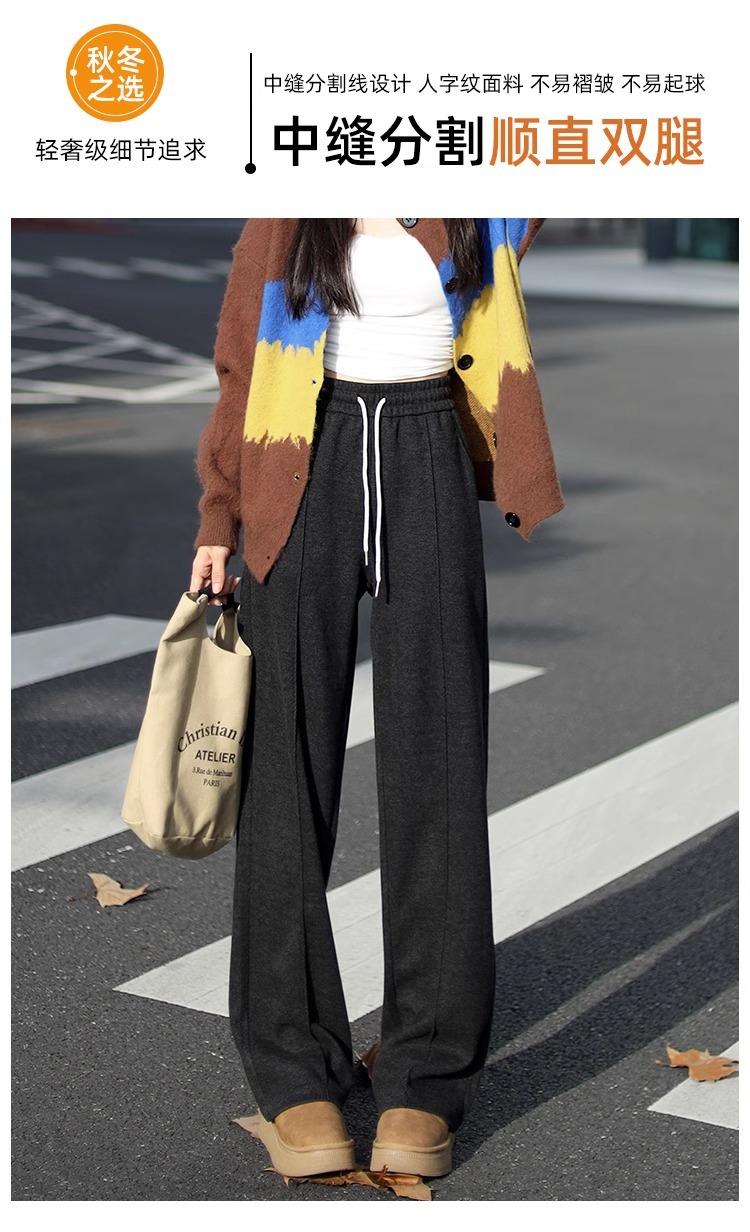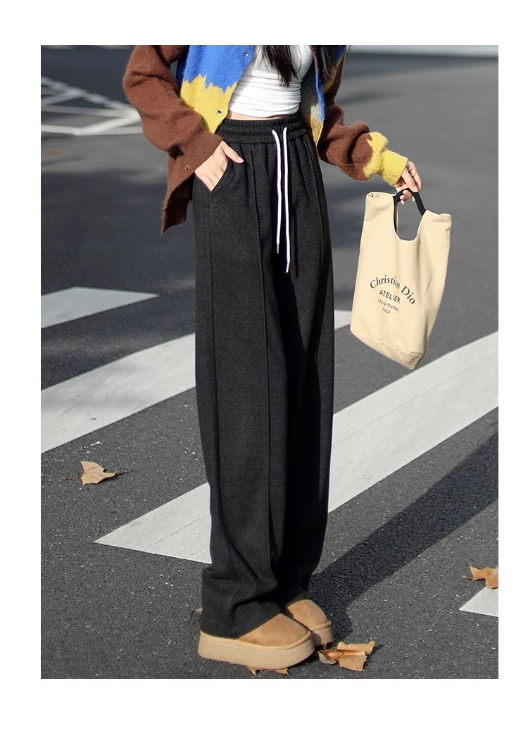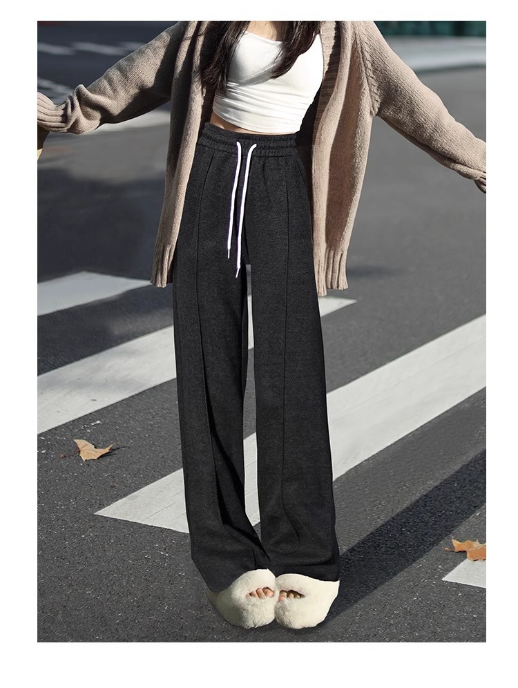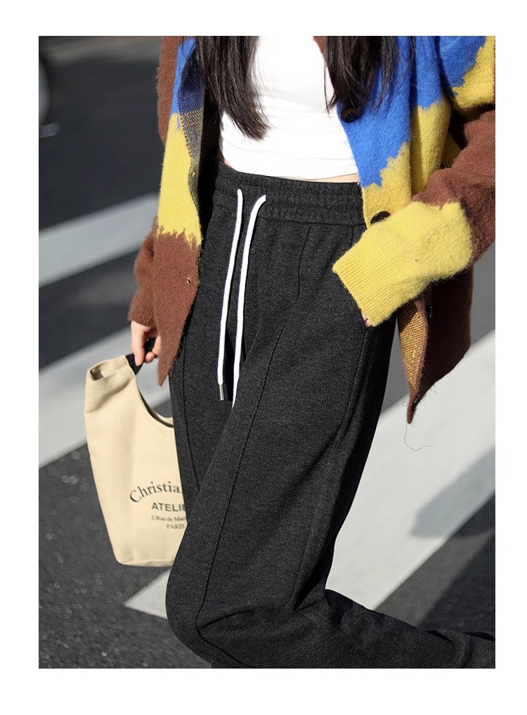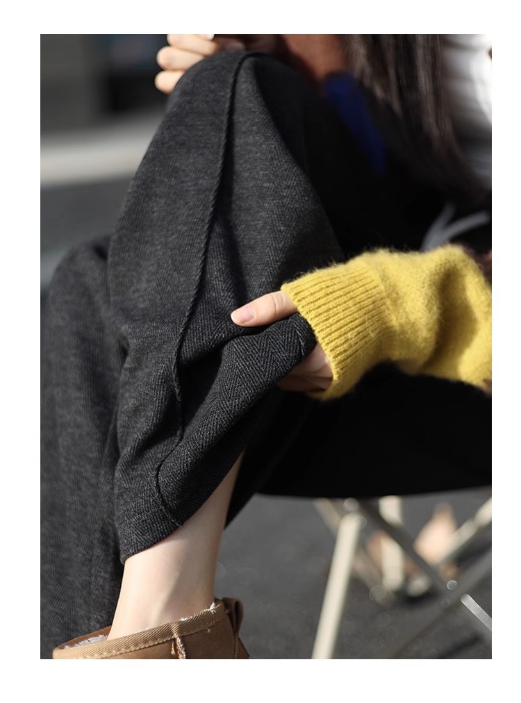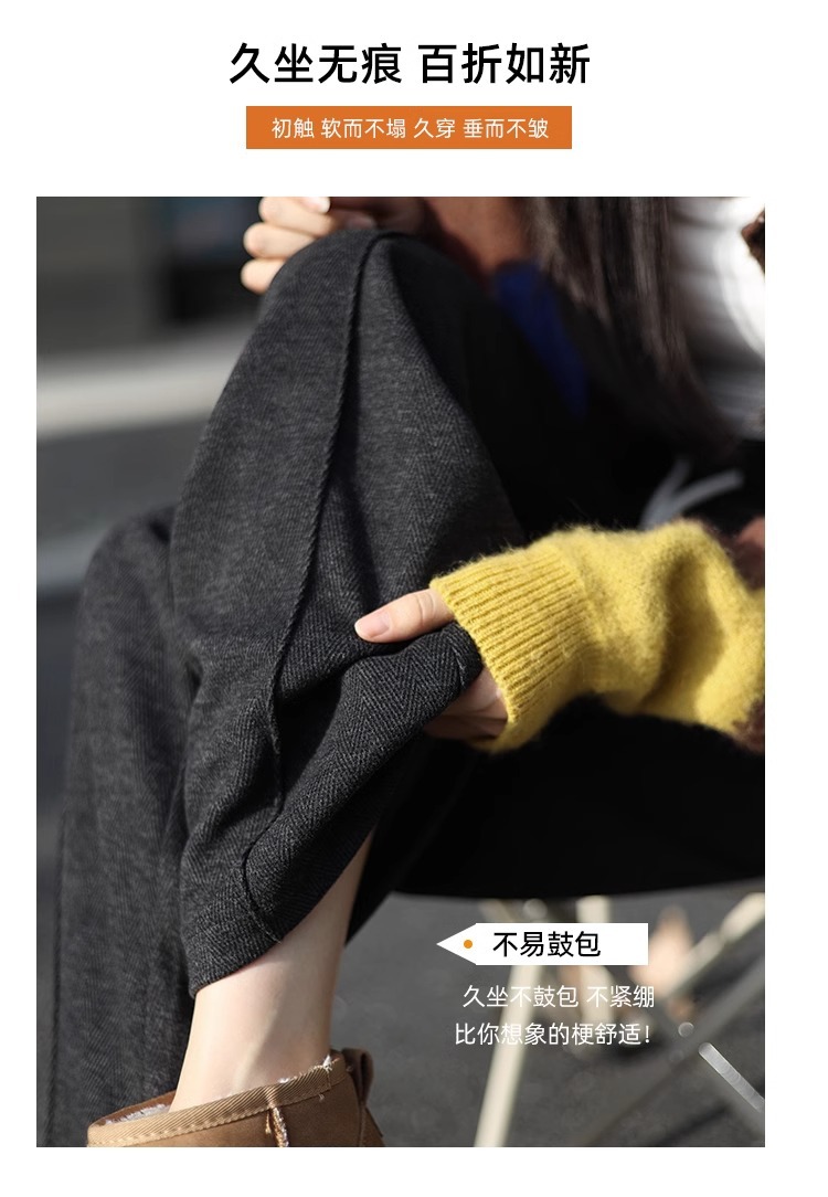 Pantalones de piernas anchas herringbone para mujeres 2024 nuevo otoño y invierno de lana estrecha alargada alta sensación de super hermosos pantalones casuales