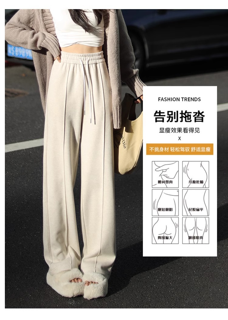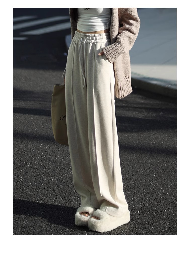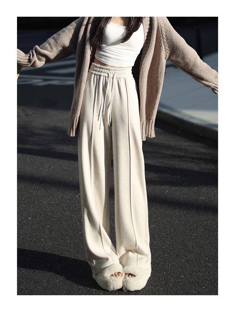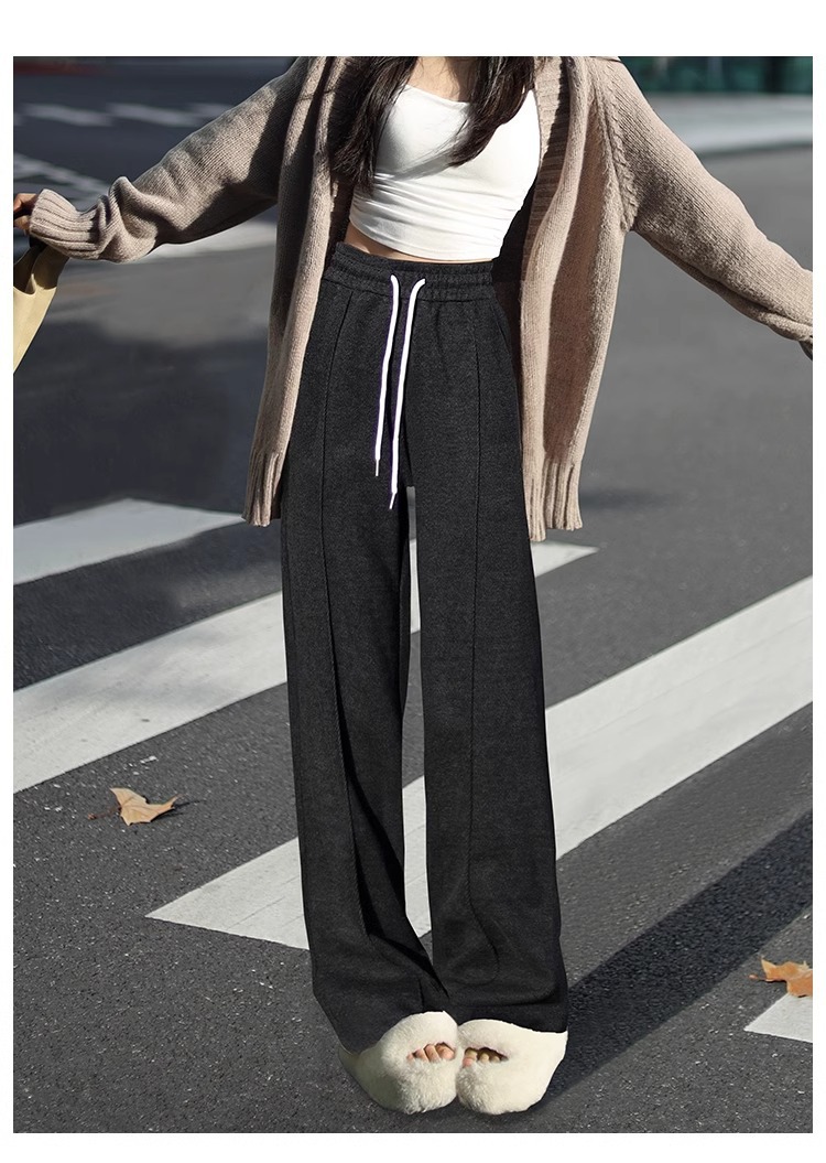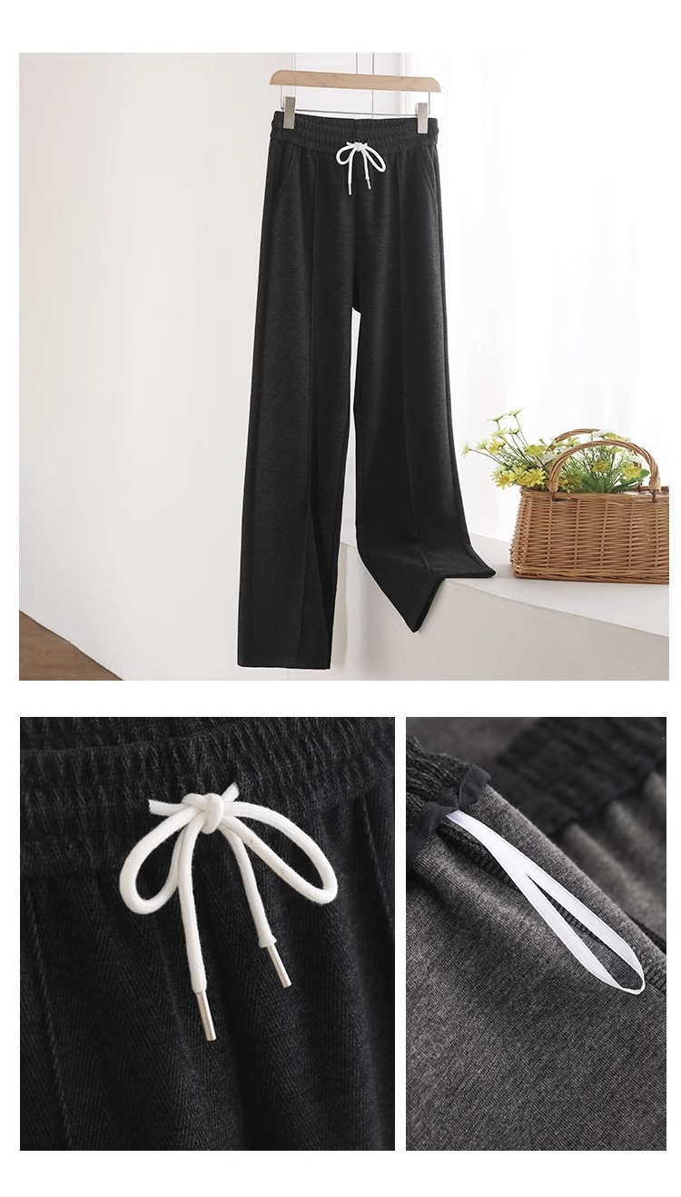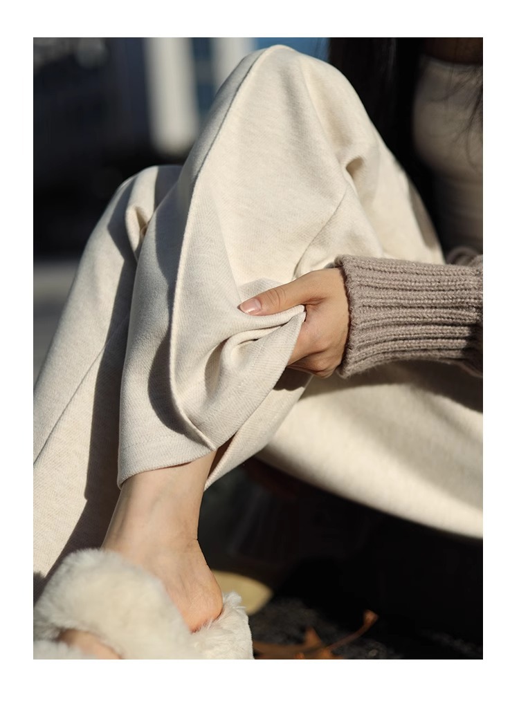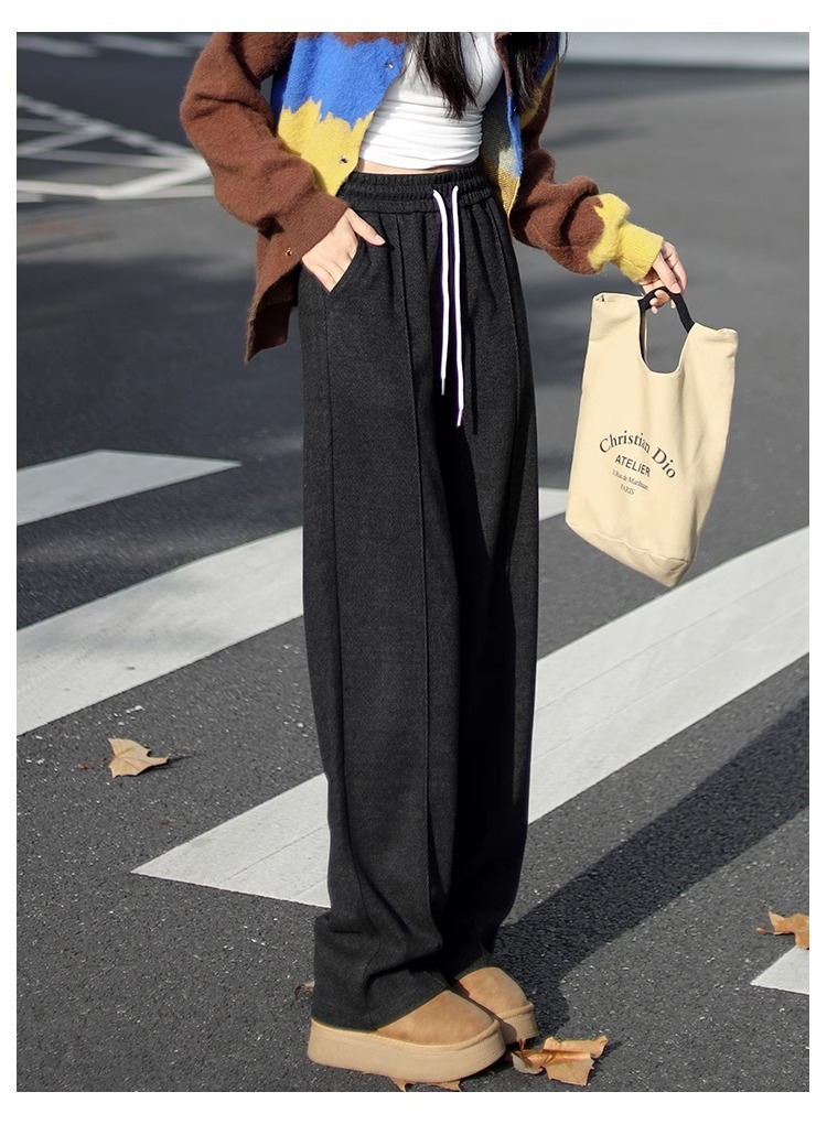 Pantalones de piernas anchas herringbone para mujeres 2024 nuevo otoño y invierno de lana estrecha alargada alta sensación de super hermosos pantalones casuales