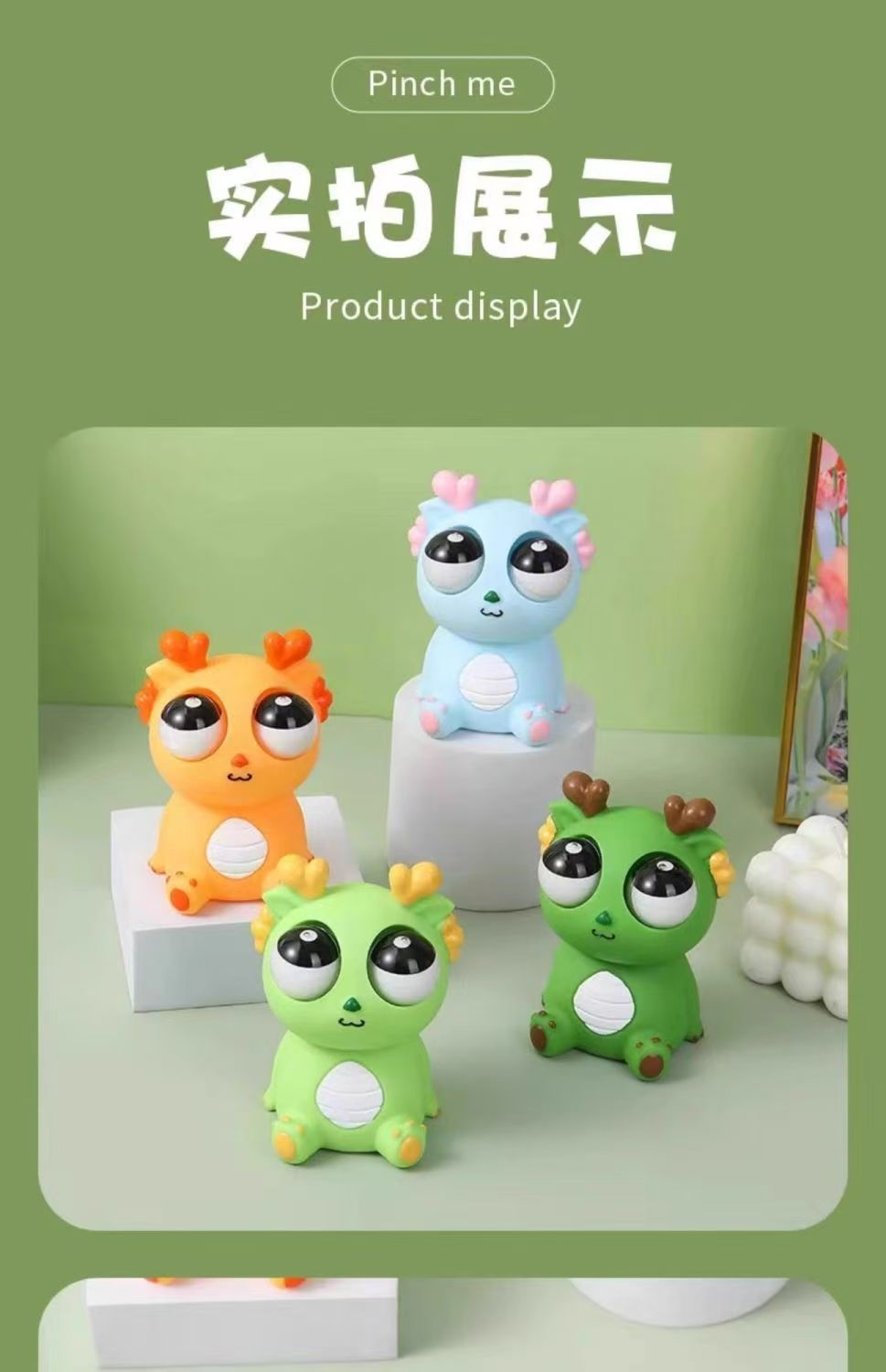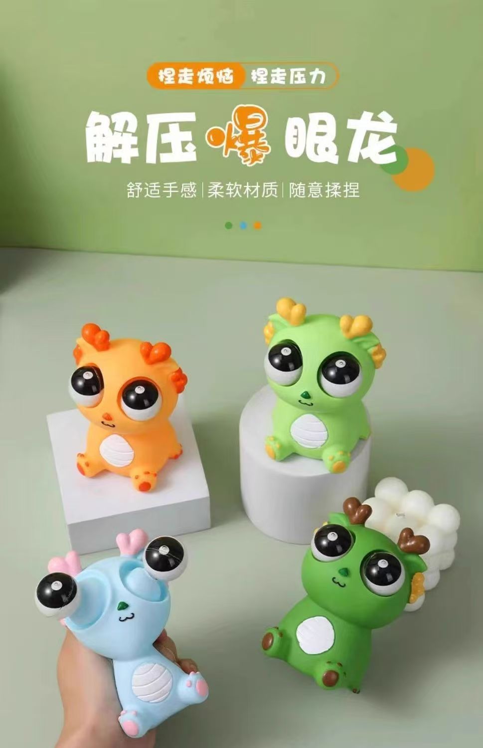 Explosión de ojos dragón pellizco de música juguete de descompresión año del dragón apretón ojo ojo ojo ojo pequeño dragón muñeca ventilación dragón juguete al por mayor