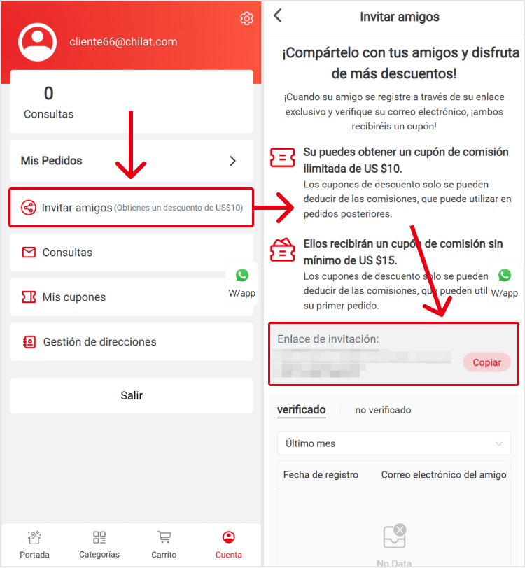 Gracias clientes por confiar en Chilatshop. Con el fin de retribuir su apoyo, Chilatshop ha lanzado la campaña "Los antiguos clientes invitan a nuevos clientes a registrarse", los antiguos clientes pueden invitar a nuevos clientes a unirse a través de un enlace de invitación exclusivo, ¡y ambas partes pueden obtener un cupón de descuento de comisión sin umbral como recompensa!