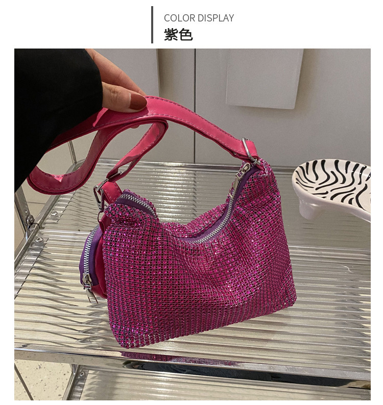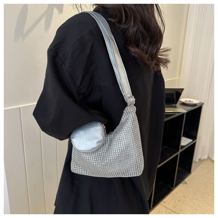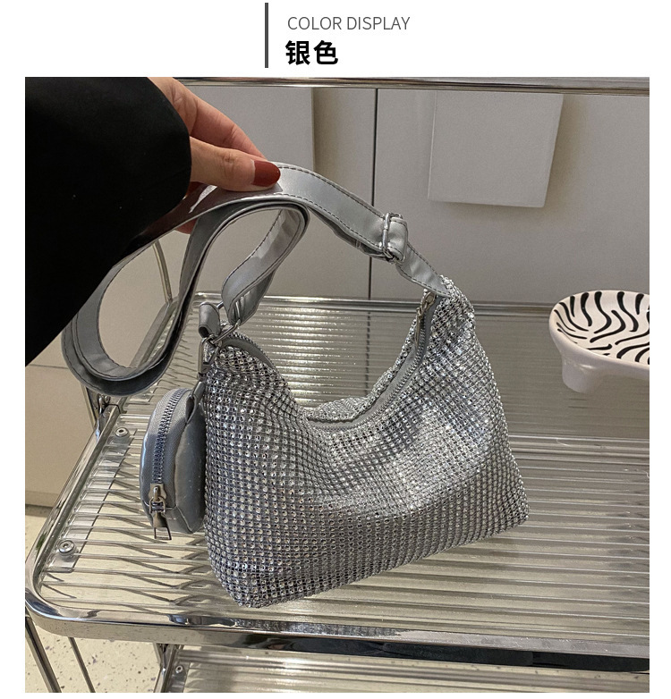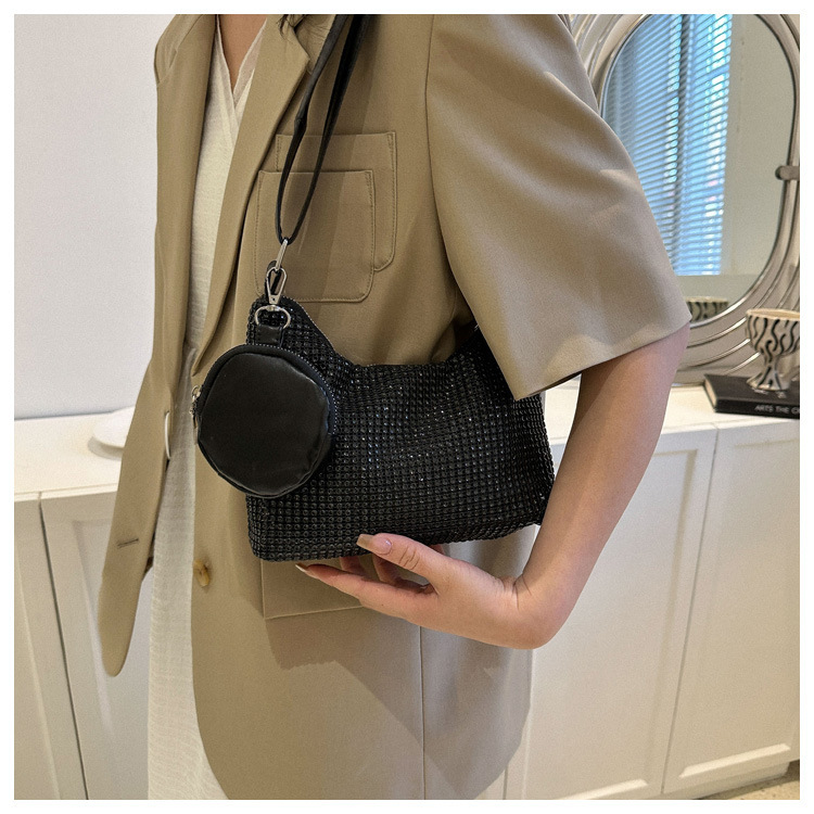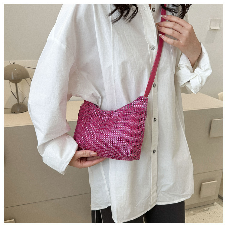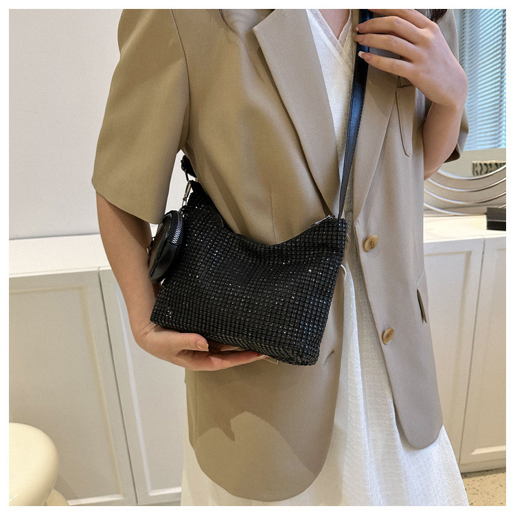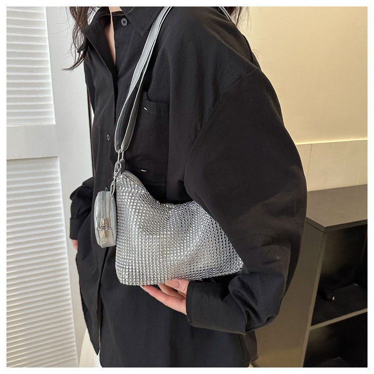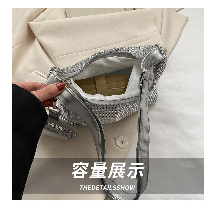 Bolso de mujer de diamantes de imitación texturizado de moda 2023 Verano nuevo bolso pequeño cuadrado Personalidad incrustada en diamantes ins bolso de hombro portátil casual