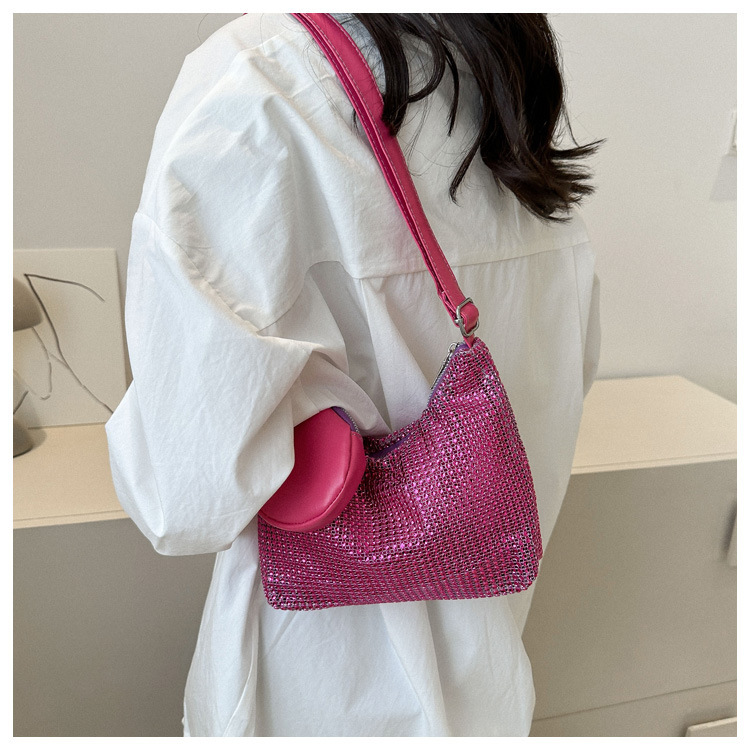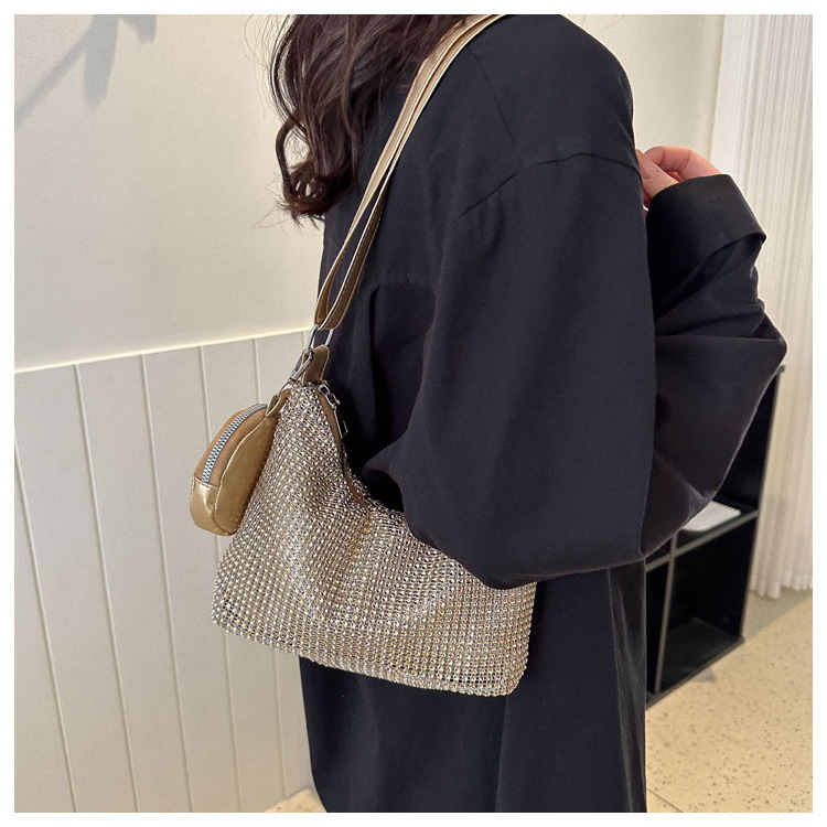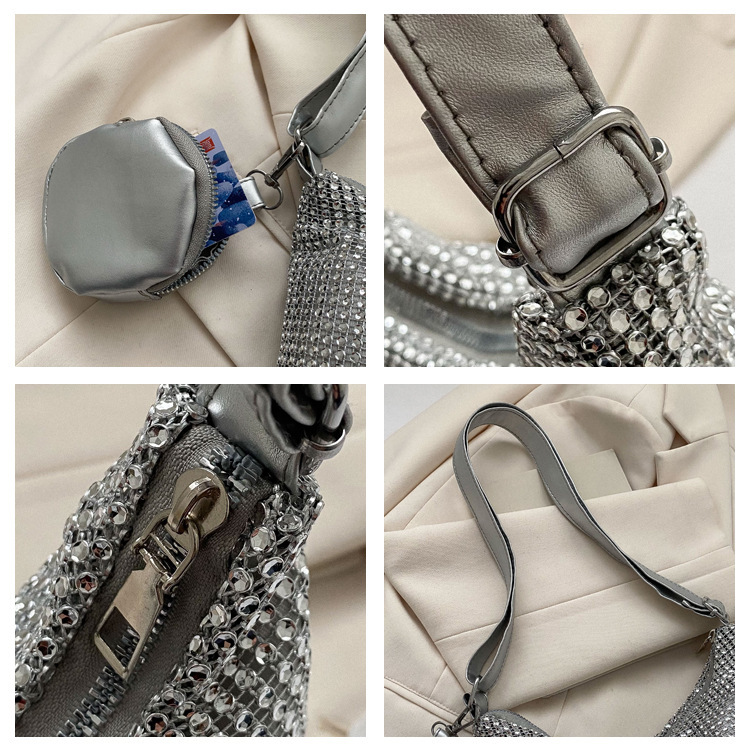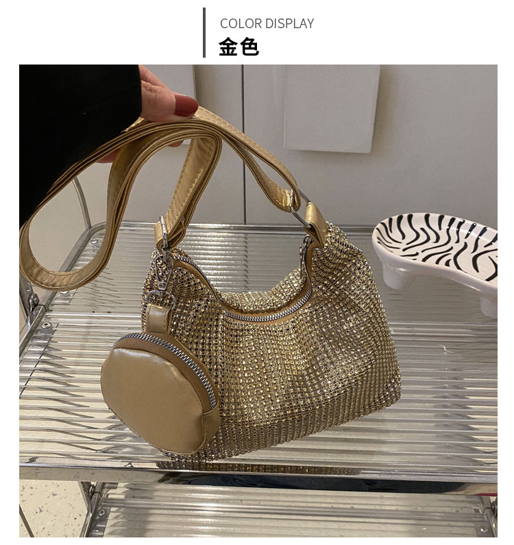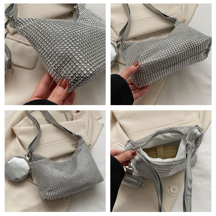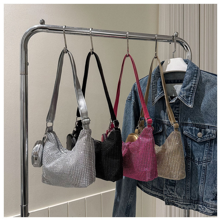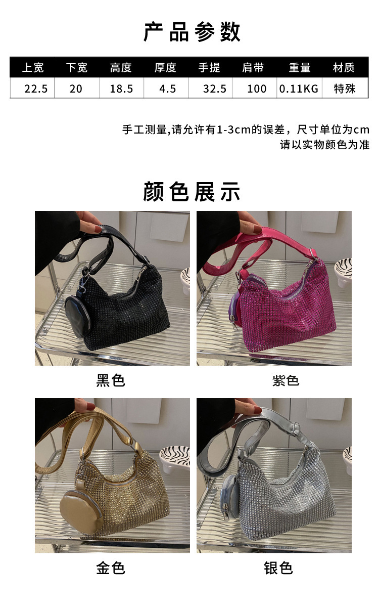 Bolso de mujer de diamantes de imitación texturizado de moda 2023 Verano nuevo bolso pequeño cuadrado Personalidad incrustada en diamantes ins bolso de hombro portátil casual