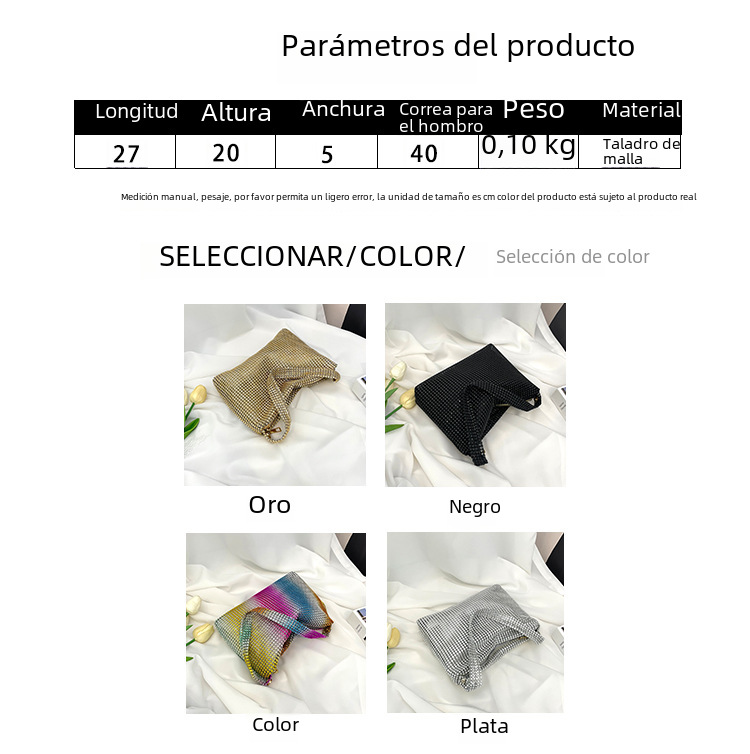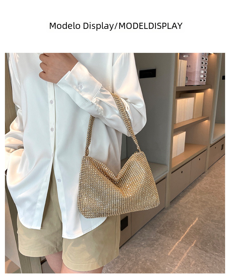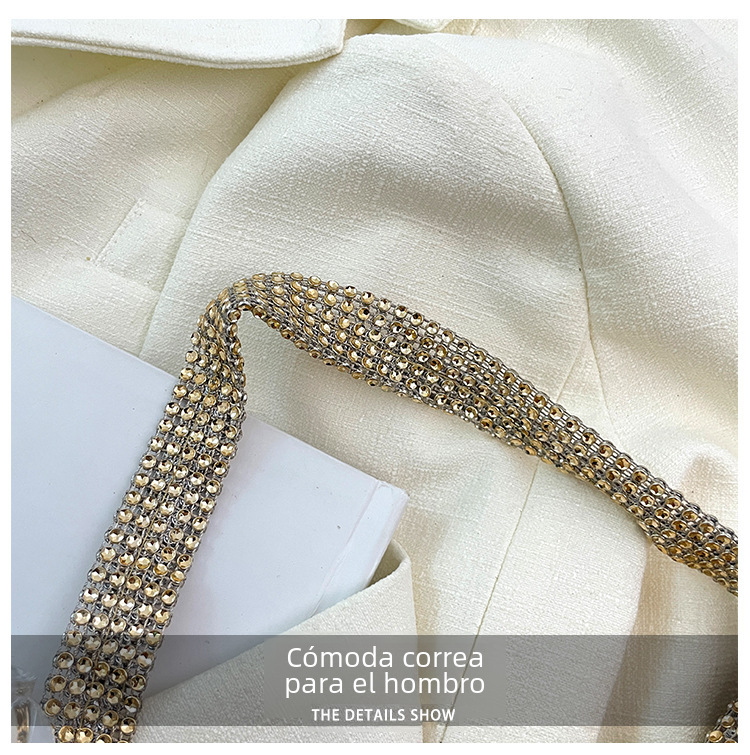 Diseño de diamantes de imitación:El diseño de diamantes de imitación añade un toque de glamour y sofisticación, haciendo que este bolso destaque.