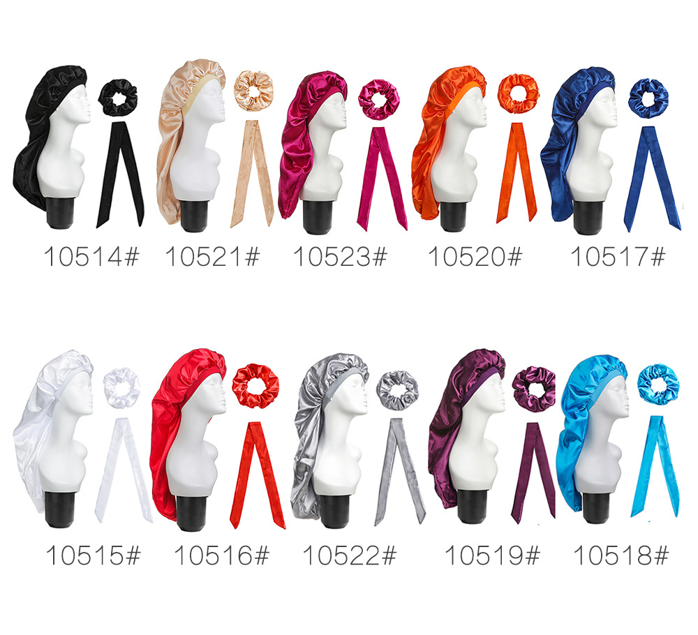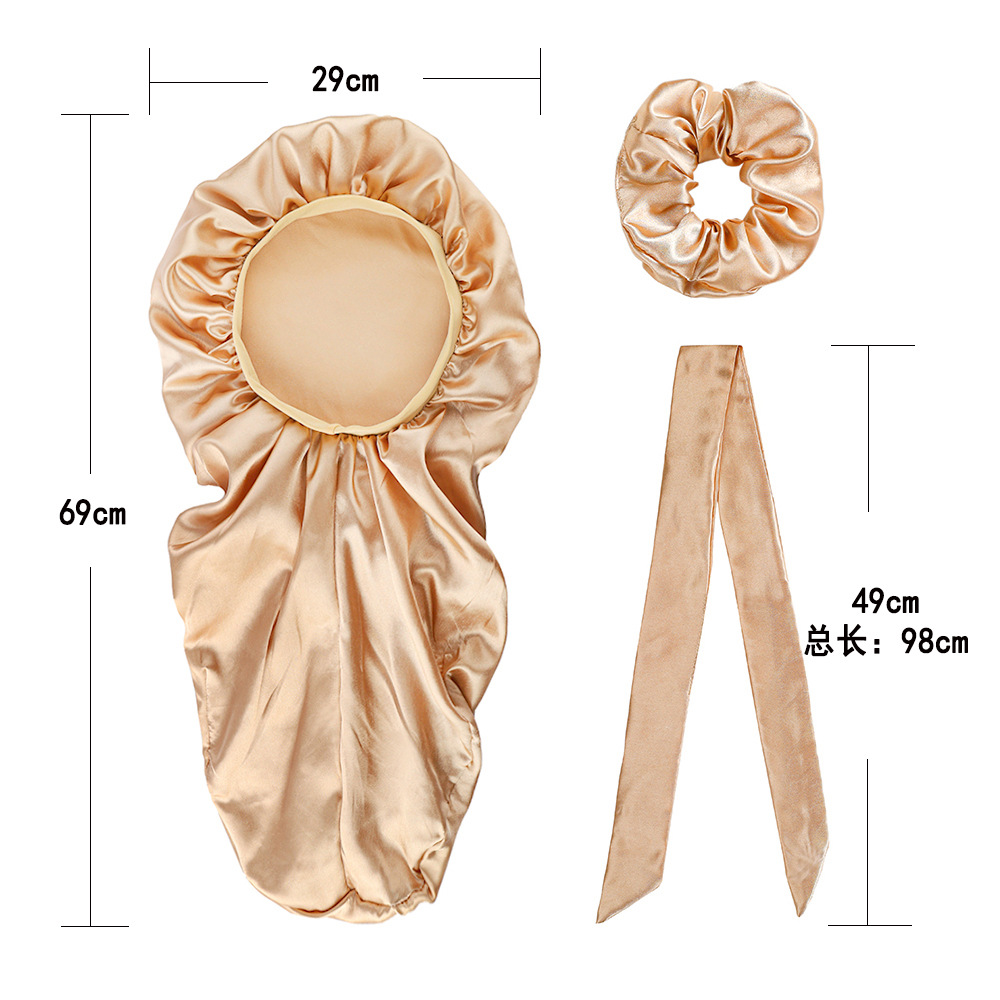 Tapa larga de tres piezas conjunto de banda de goma ancha cubierta de la cabeza de satén cuidado del cabello en casa tapa de cola larga transfronteriza Amazon