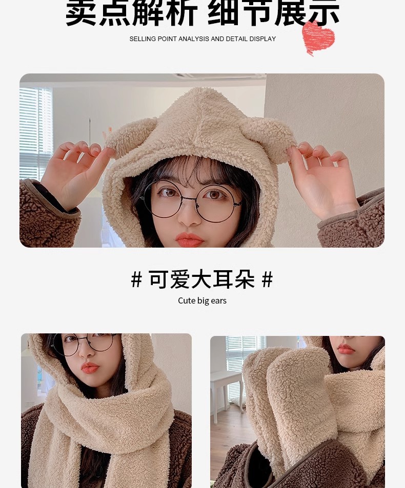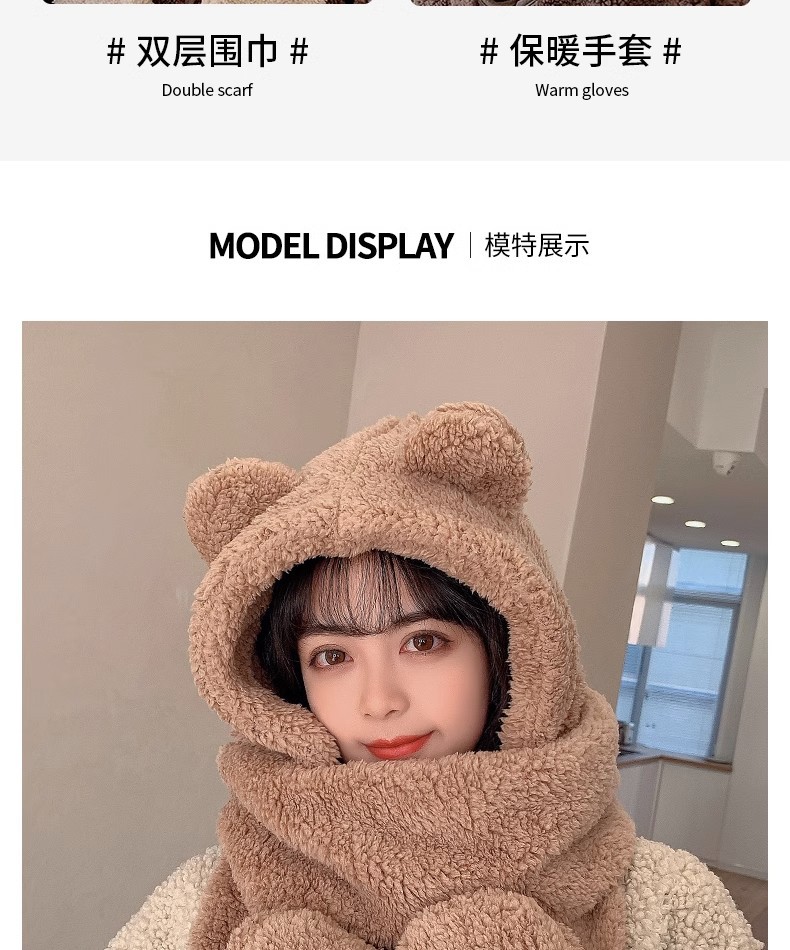 | Artículo No. | Sombrero de lana de oso integrado engrosado |