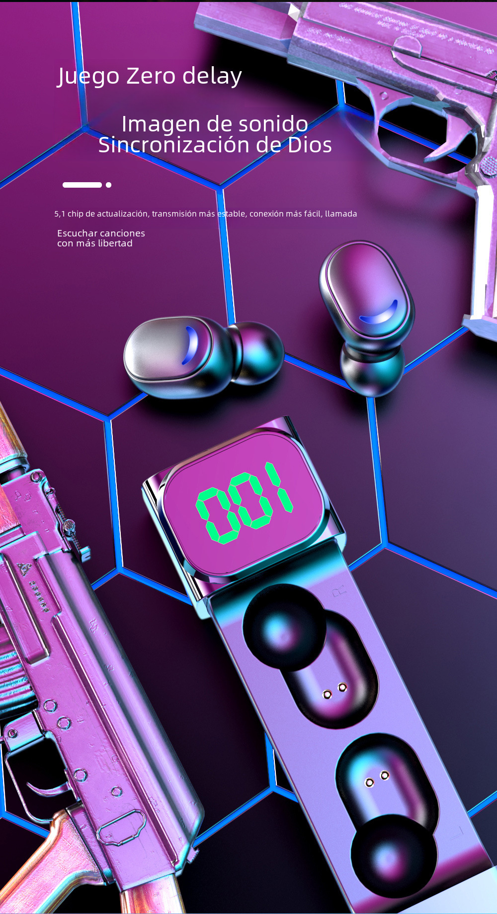 | Función | Impermeable,Luz de respiración,Super larga duración de la batería,Función de llamada,Música de apoyo,Pantalla digital |