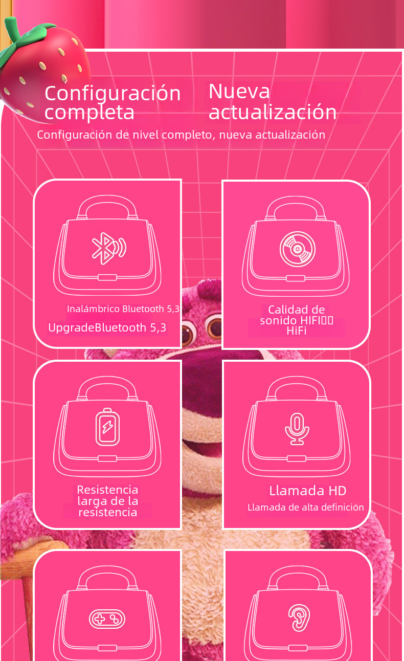 | Color | Rojo-Fresa oso,Rosa-Minnie,Blanco-Mickey |