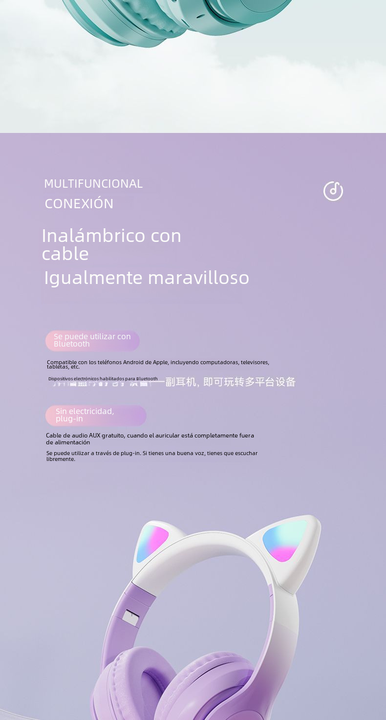 | Color | Polvo de cereza,Uva púrpura,Cian claro,Azul cielo,Cable de audio 3,5mm |