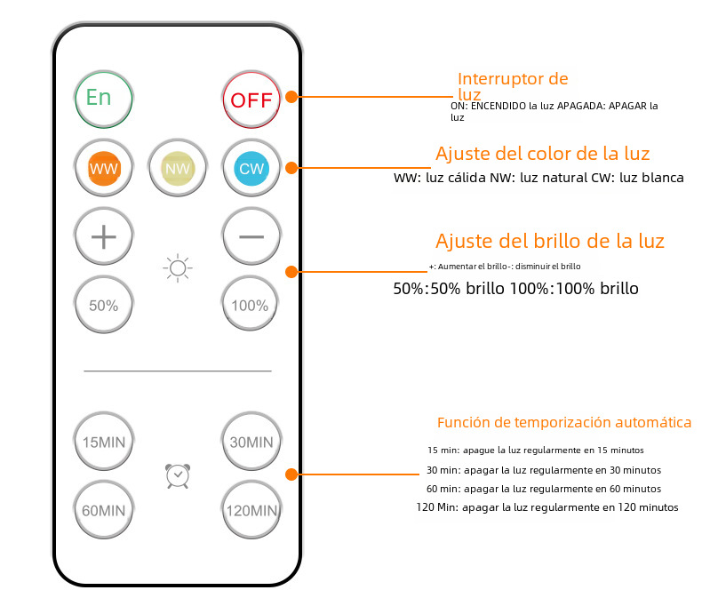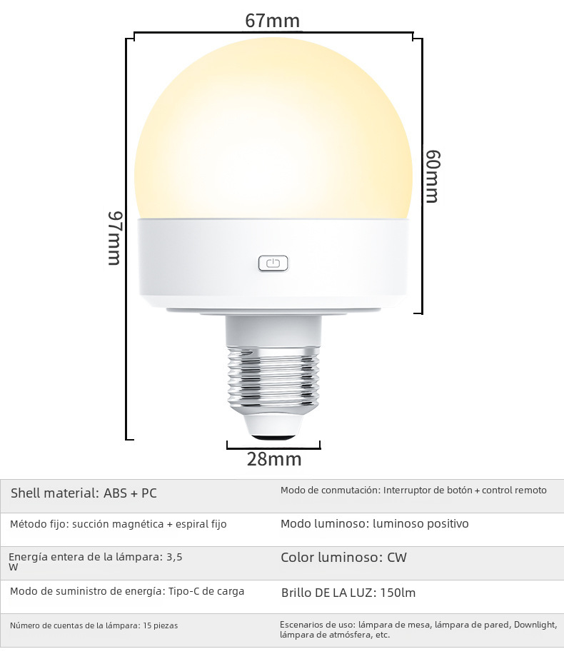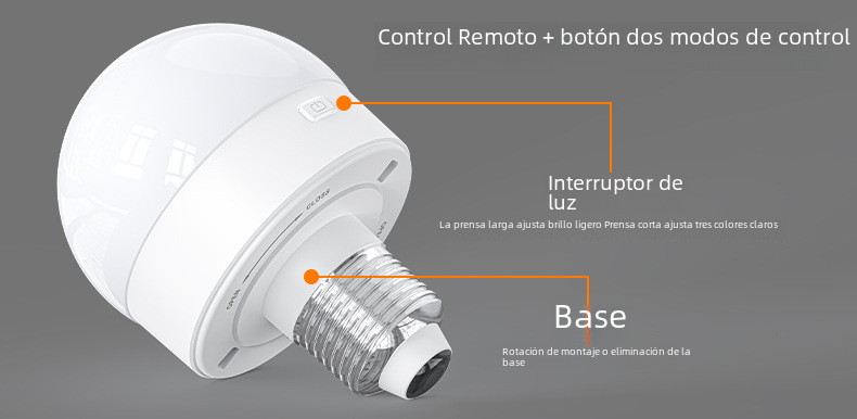 | Color de luz | 1 lámpara + 1 control remoto,2 luces + 1 control remoto,1 lámpara + 1 control remoto [E26/E 27 lámpara],2 luces + 1 control remoto [E26/E 27 portalámparas] |