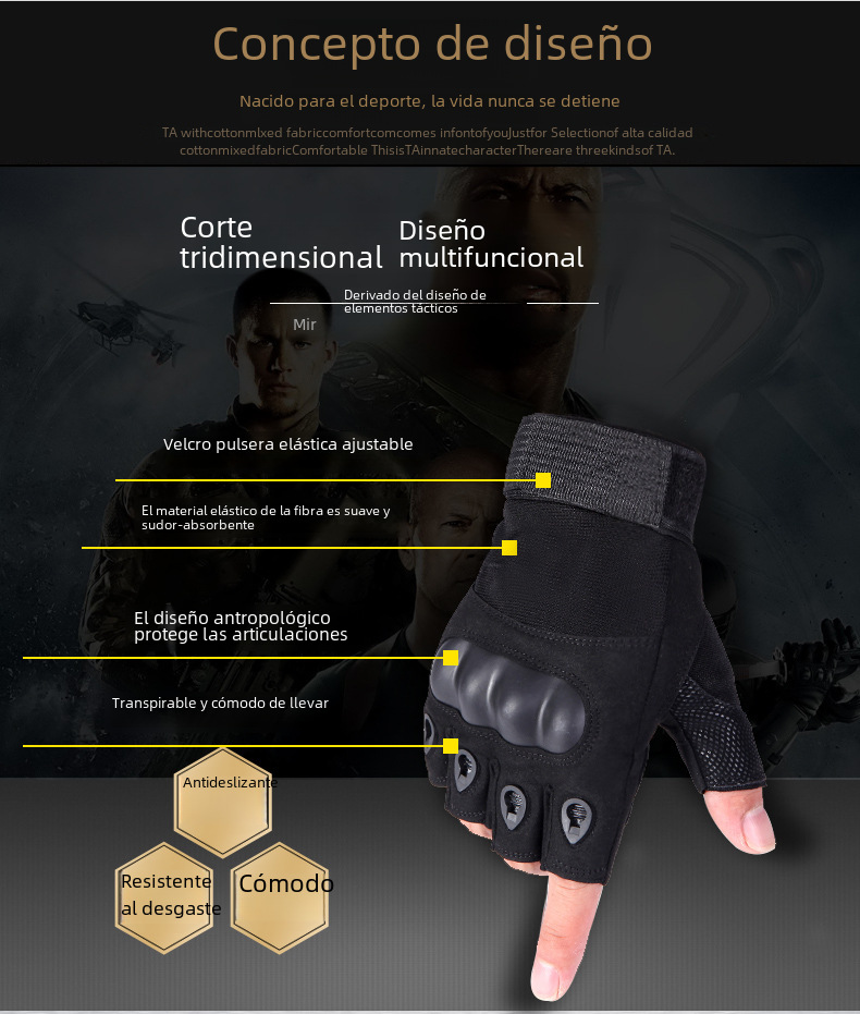 | Color | Negro,Verde Ejército,Caqui,Dedo largo negro,Dedo largo verde del ejército,Dedo largo caqui |