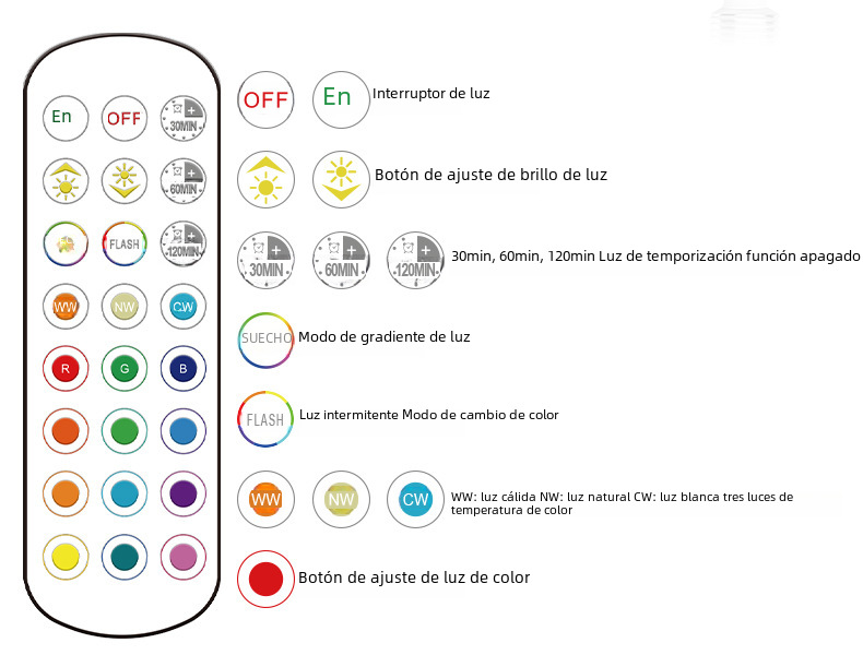 | Colores de luz | 1 lámpara 1 control remoto,2 luces 1 control remoto,1 luz 1 control remoto [portalámparas E26/E27],2 luces 1 control remoto [portalámparas E26/E27],B3 control remoto |