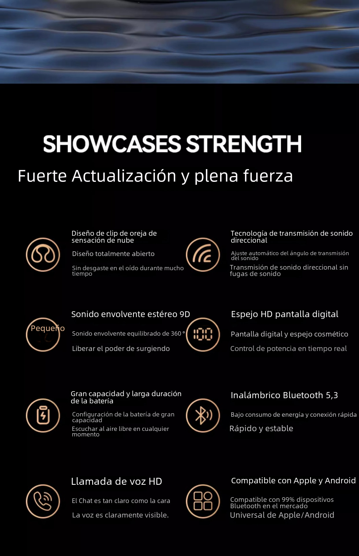 | Función | Impermeable,Reducción de ruido,Conducción ósea,Super larga duración de la batería,Función de llamada,Control de voz,Música de apoyo,Pantalla digital,E-sports de baja latencia,Otros |