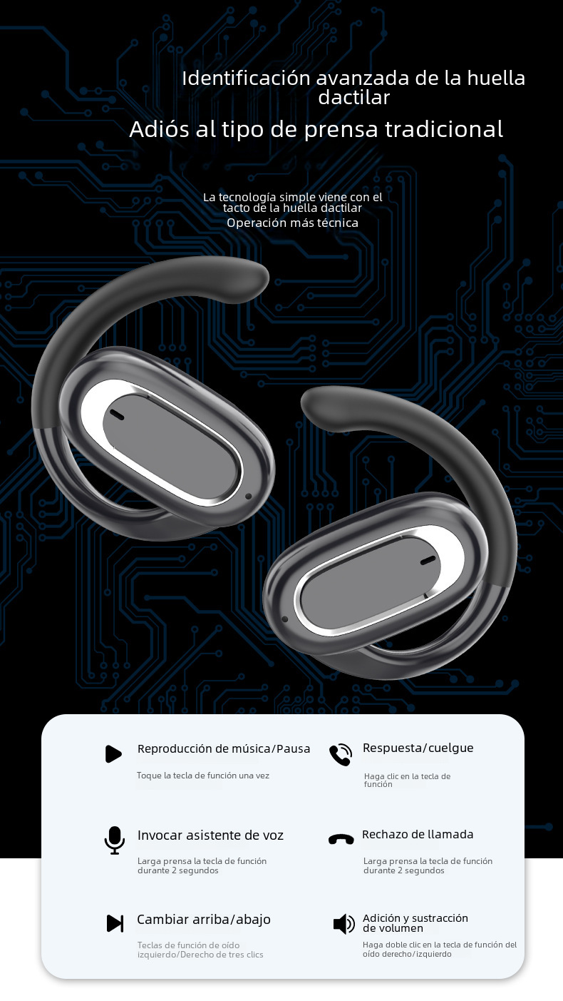 | Función | Impermeable,Carga inalámbrica,Reducción de ruido,Conducción ósea,Luz de respiración,Duración de la batería,Función de llamada,Función NFC,Control de voz,Música de apoyo,Patrones de sueño,Pantalla digital,Esports de baja latencia |