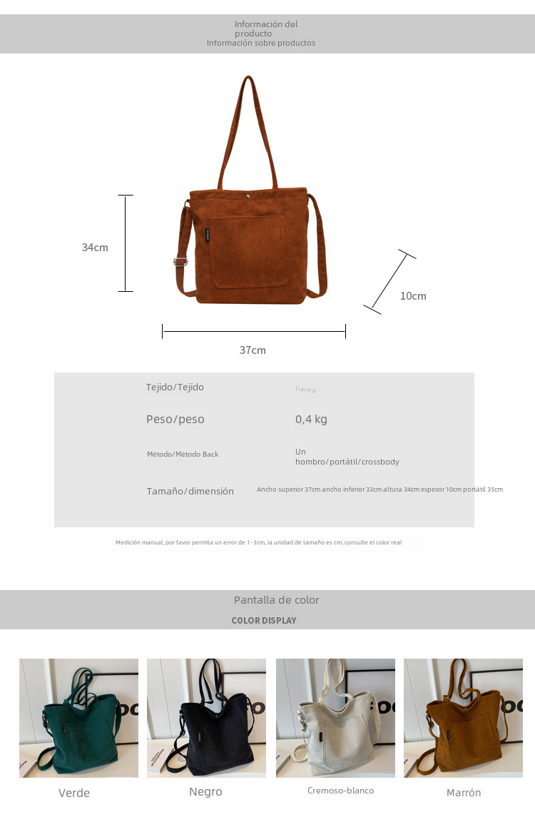 | Color | Negro,Verde,Cremoso-blanco,Marrón |