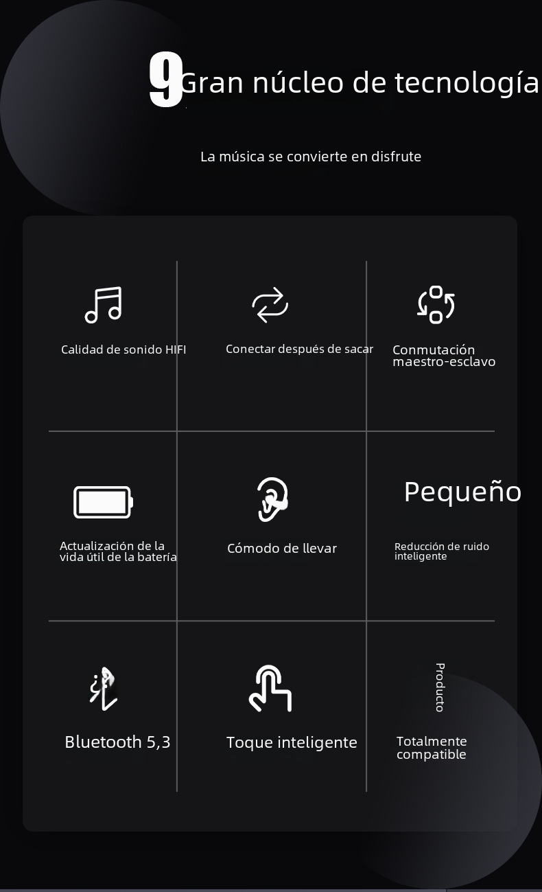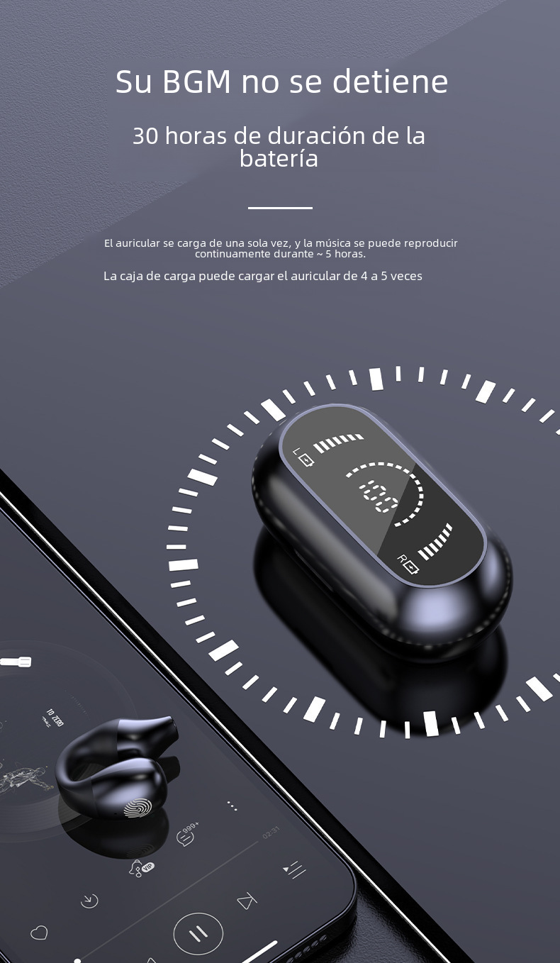 | Función | Carga inalámbrica,Reducción de ruido,Conducción ósea,Duración de la batería,Función de llamada,Música de apoyo,Pantalla digital,Otros |