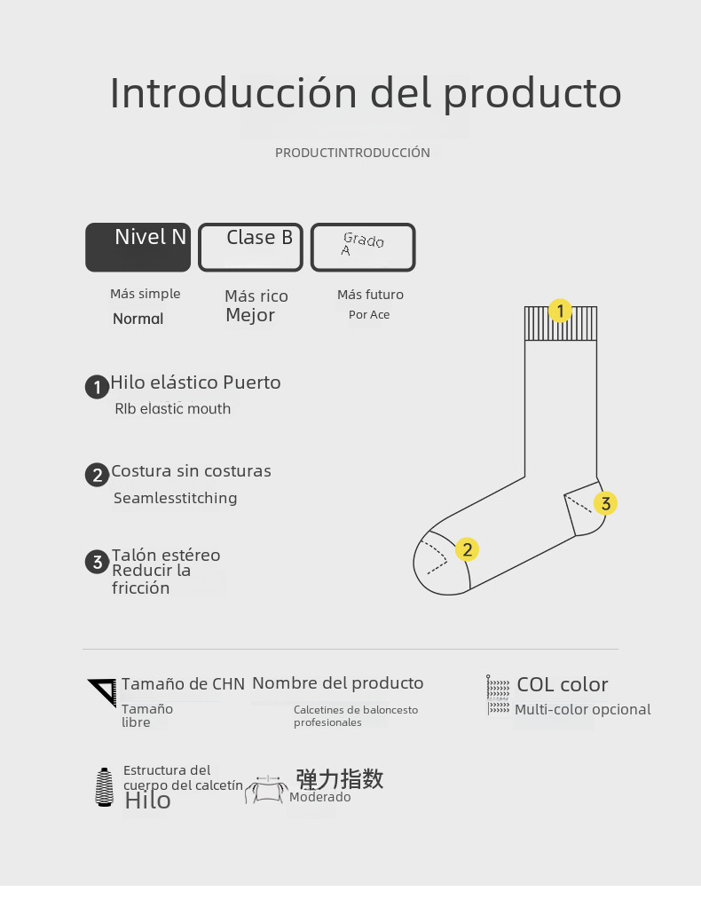 | Función | Secado rápido,Antideslizante,Absorción del sudor,Desodorante,Anti-fricción |
