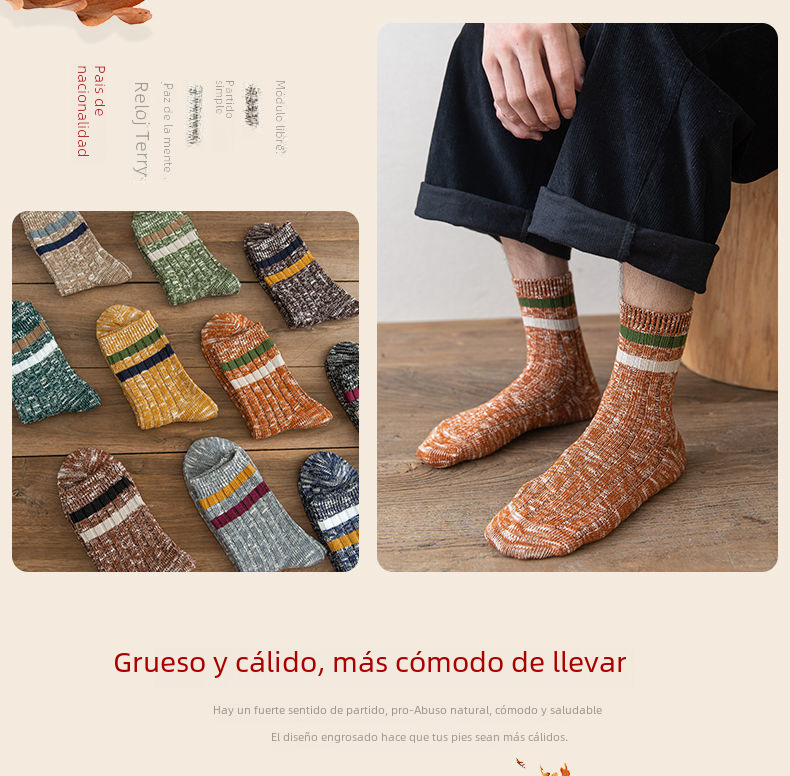 Calidez superior:Fabricados con materiales de alta calidad, estos calcetines ofrecen una calidez superior durante los meses de otoño e invierno.